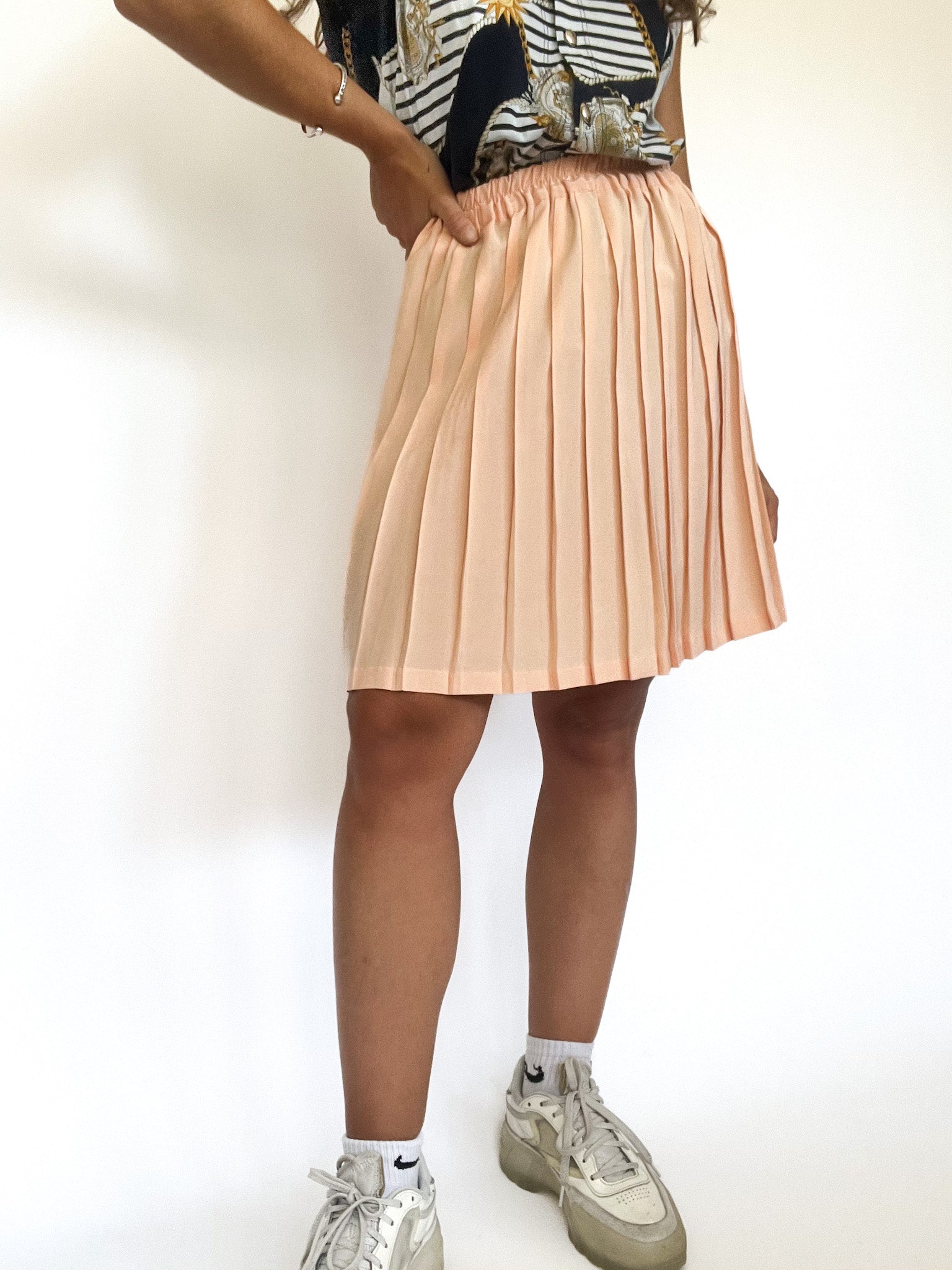 Sweet and effortless, this vintage 90’s pleated skirt in a soft blush tone is the kind of piece that lights up a look with subtle charm. Shorter in length than her coral sister, she brings a playful energy while staying gracefully feminine. The lightweight fabric dances with every step, and the elasticated waist ensures ease and comfort. It’s the kind of skirt that feels like summer — light, easy, and endlessly pairable.