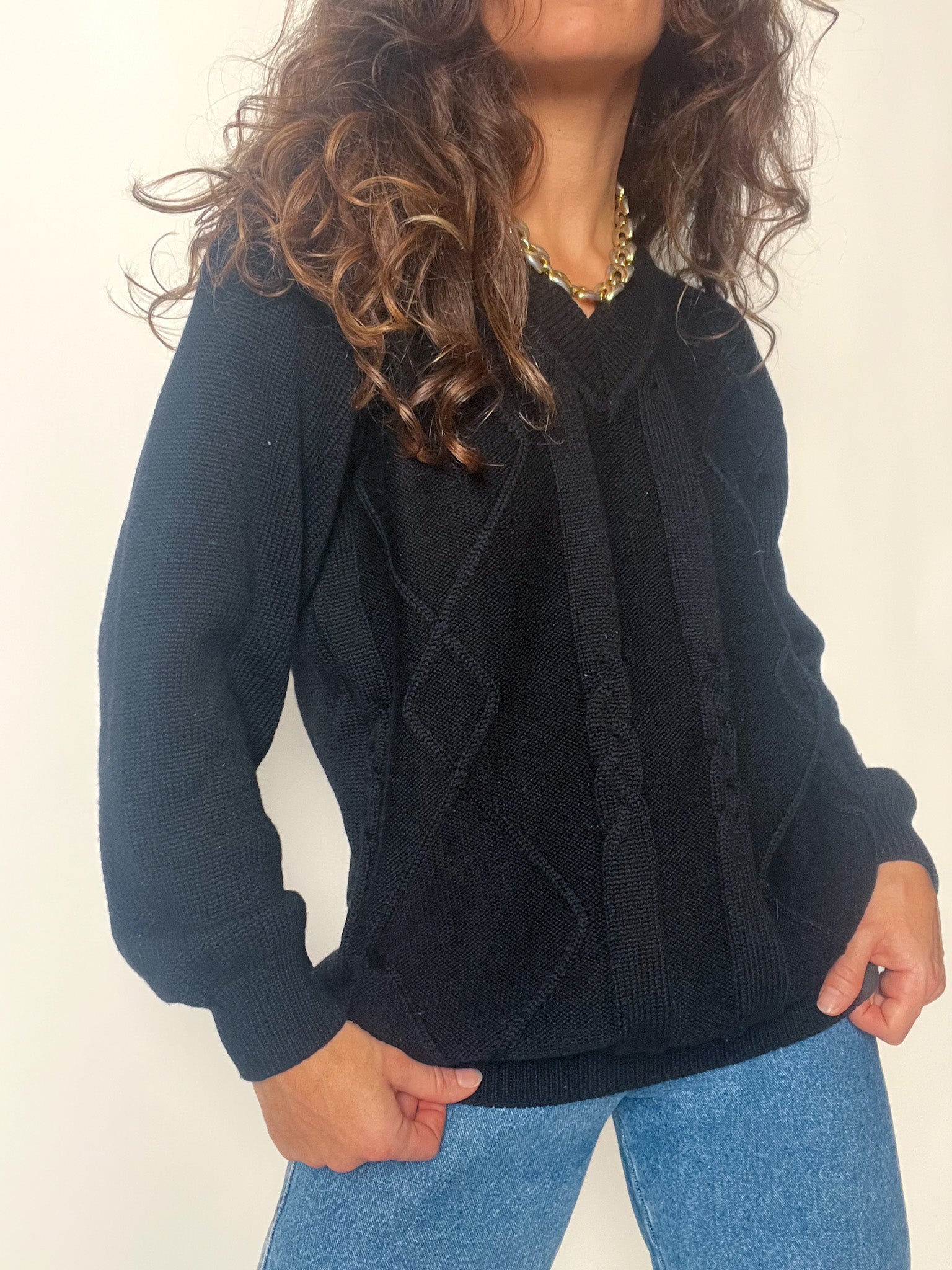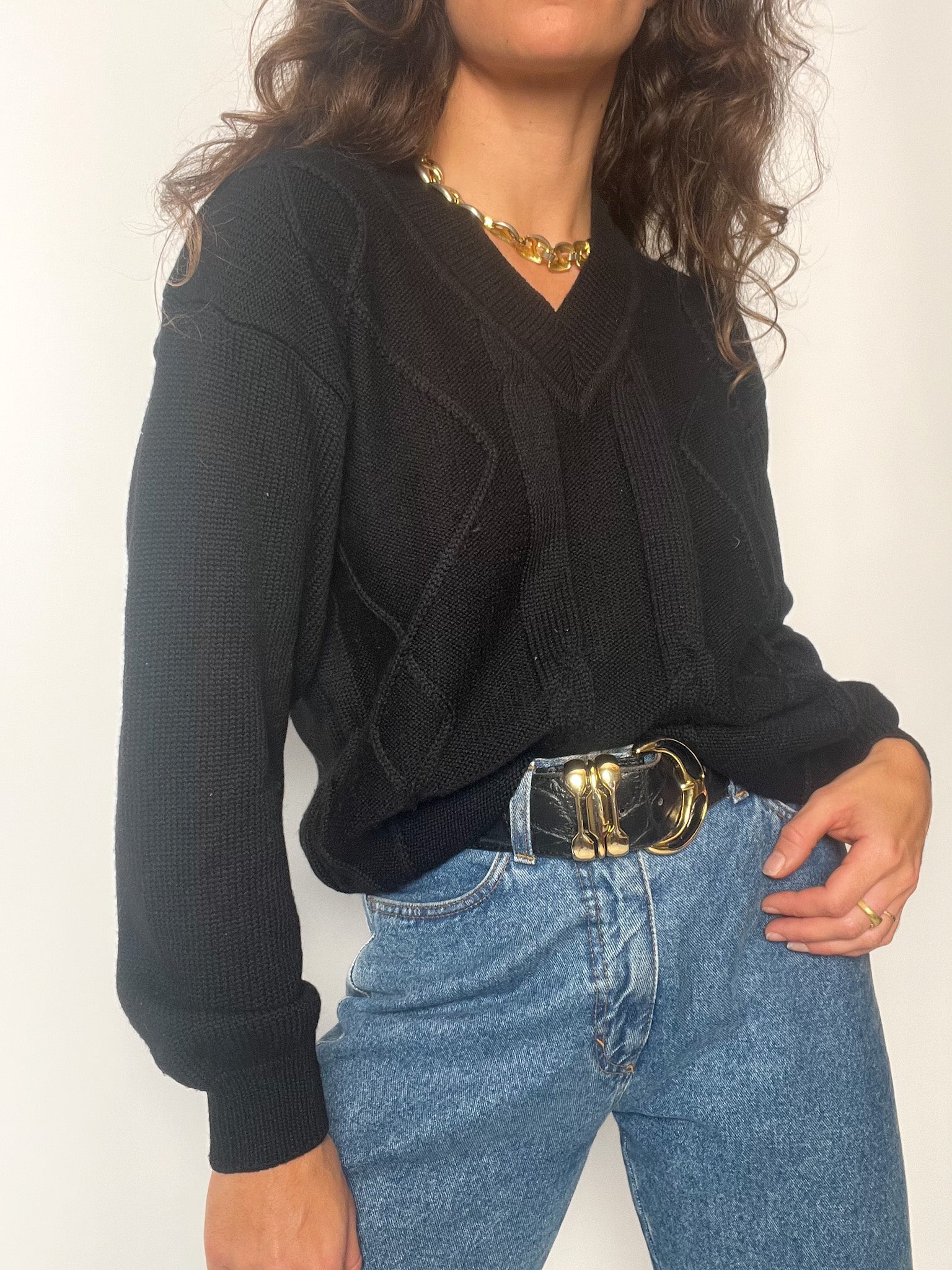 A minimalist essential with quiet power — this soft grey V-neck sweater captures the effortless elegance of 90’s fashion. Its fluid cut and lightweight wool blend make it perfect for layering or wearing on its own, embodying timeless sophistication. The neutral hue and simple lines reflect the refined aesthetic at the heart of Skorpiones Vintage — where subtlety and confidence go hand in hand.