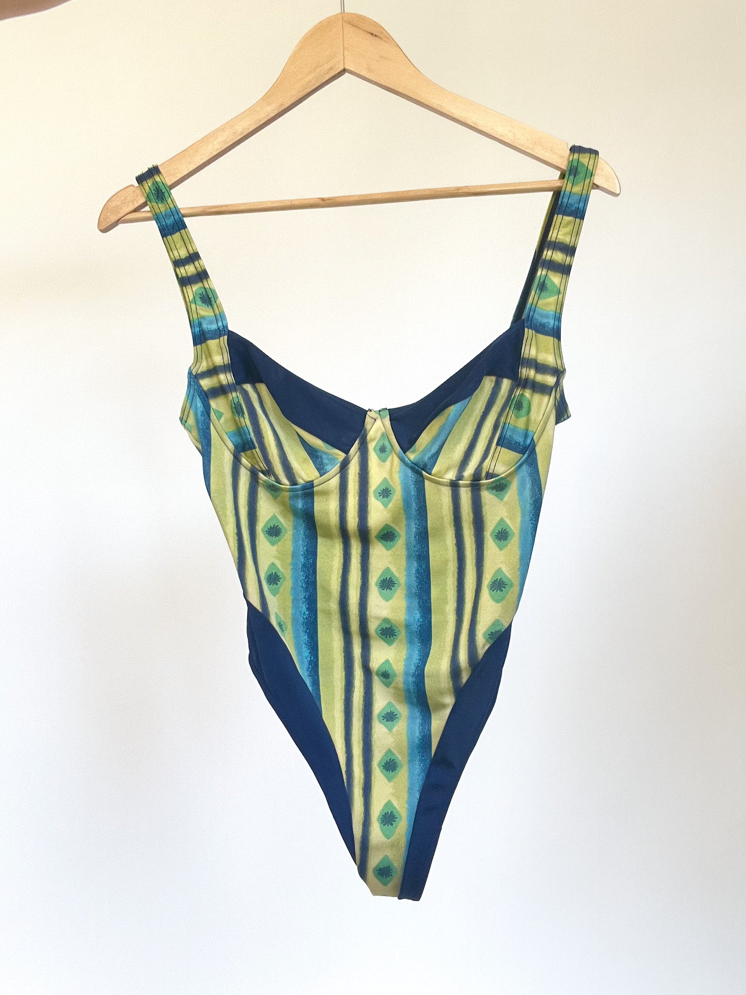 Vintage 90’s Blue & Lime Underwire Swimsuit