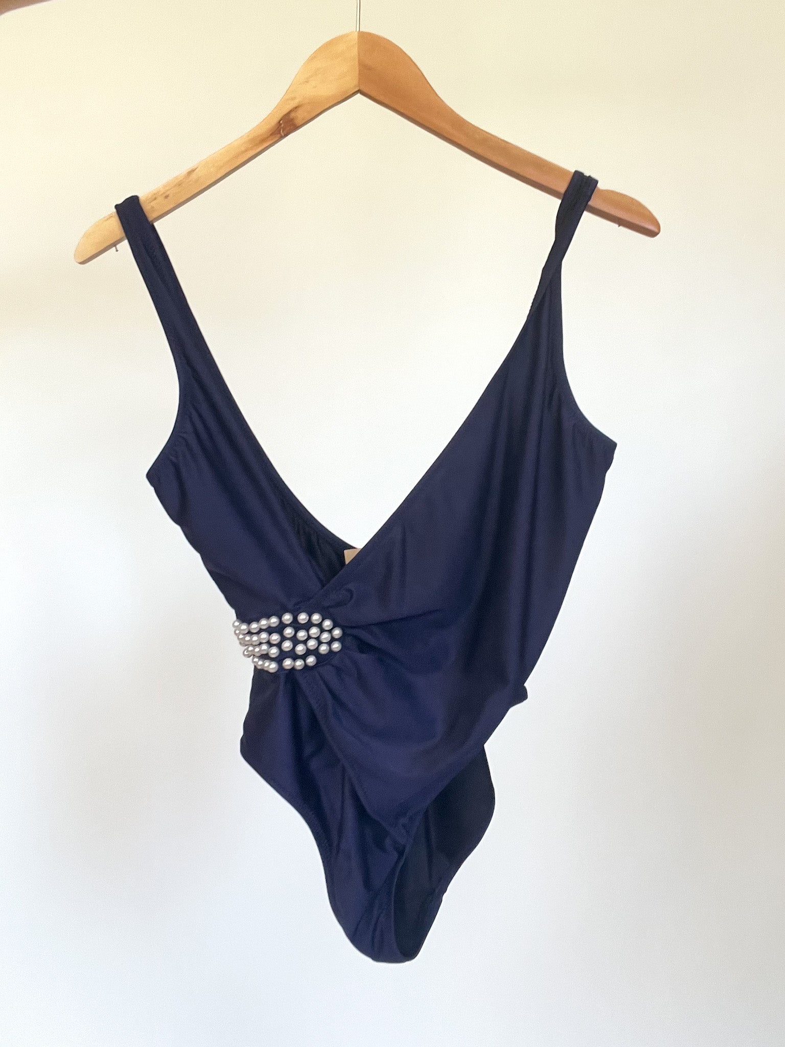 Vintage 90’s Midnight Blue Pearl-Embellished Swimsuit