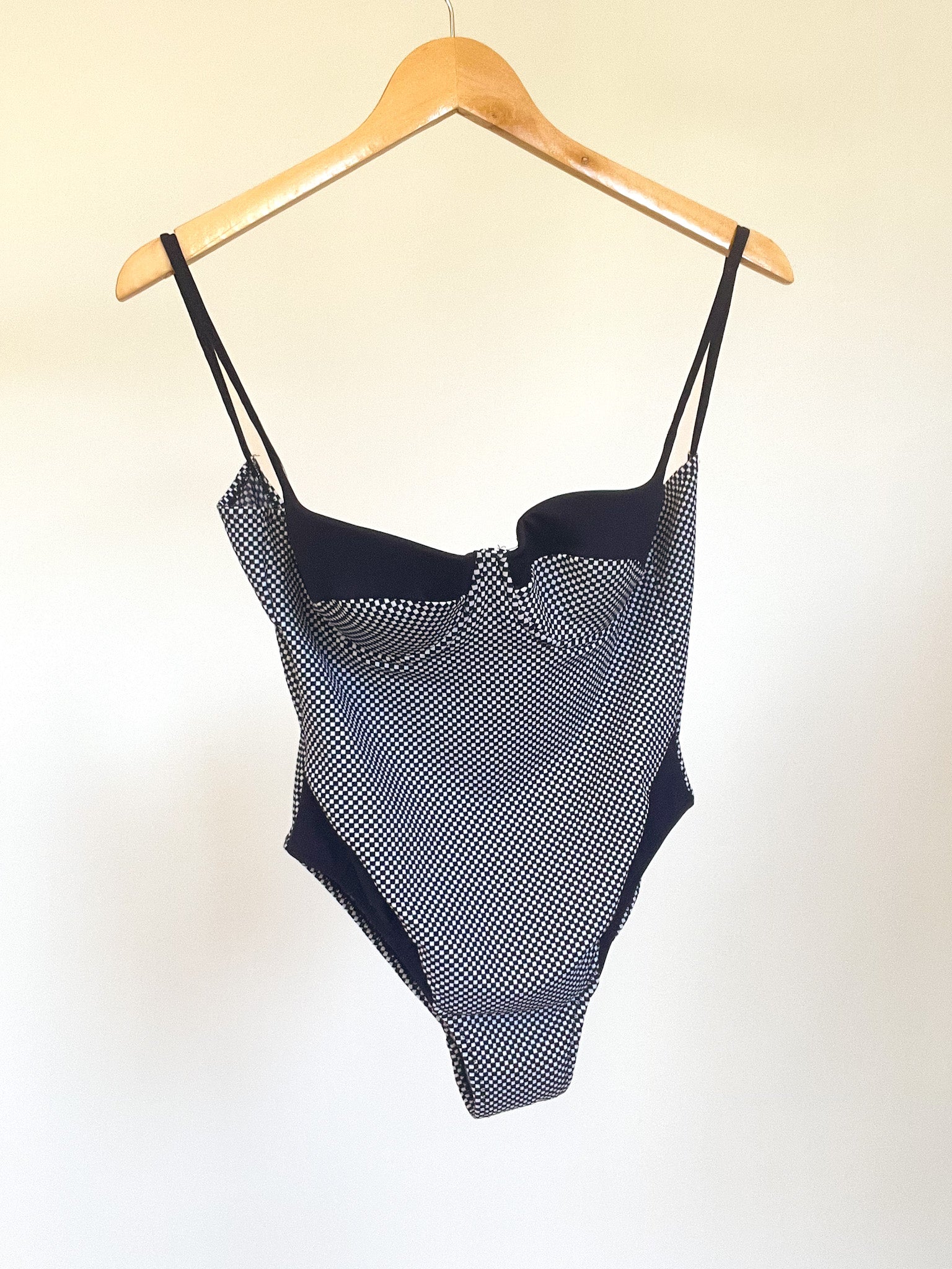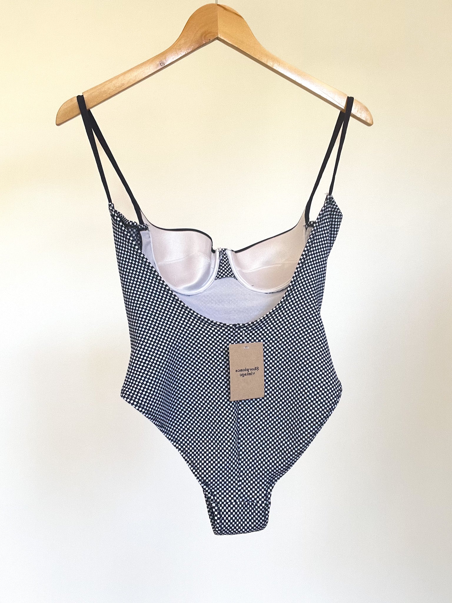 Vintage 90’s Navy & White Checked Bustier Swimsuit