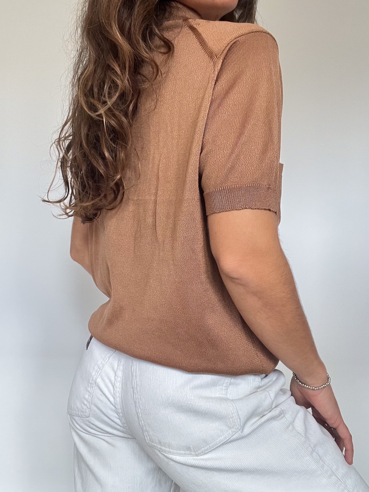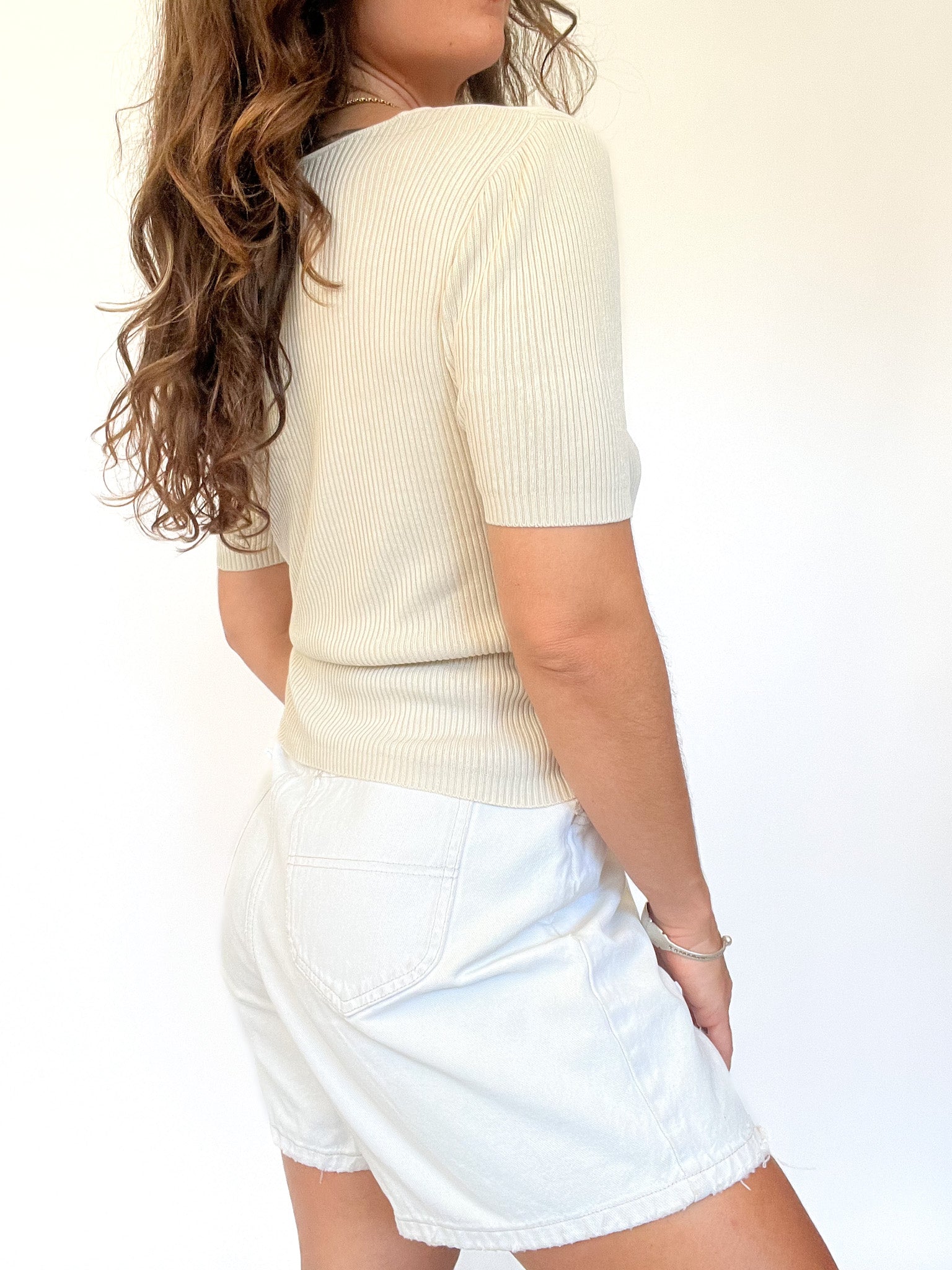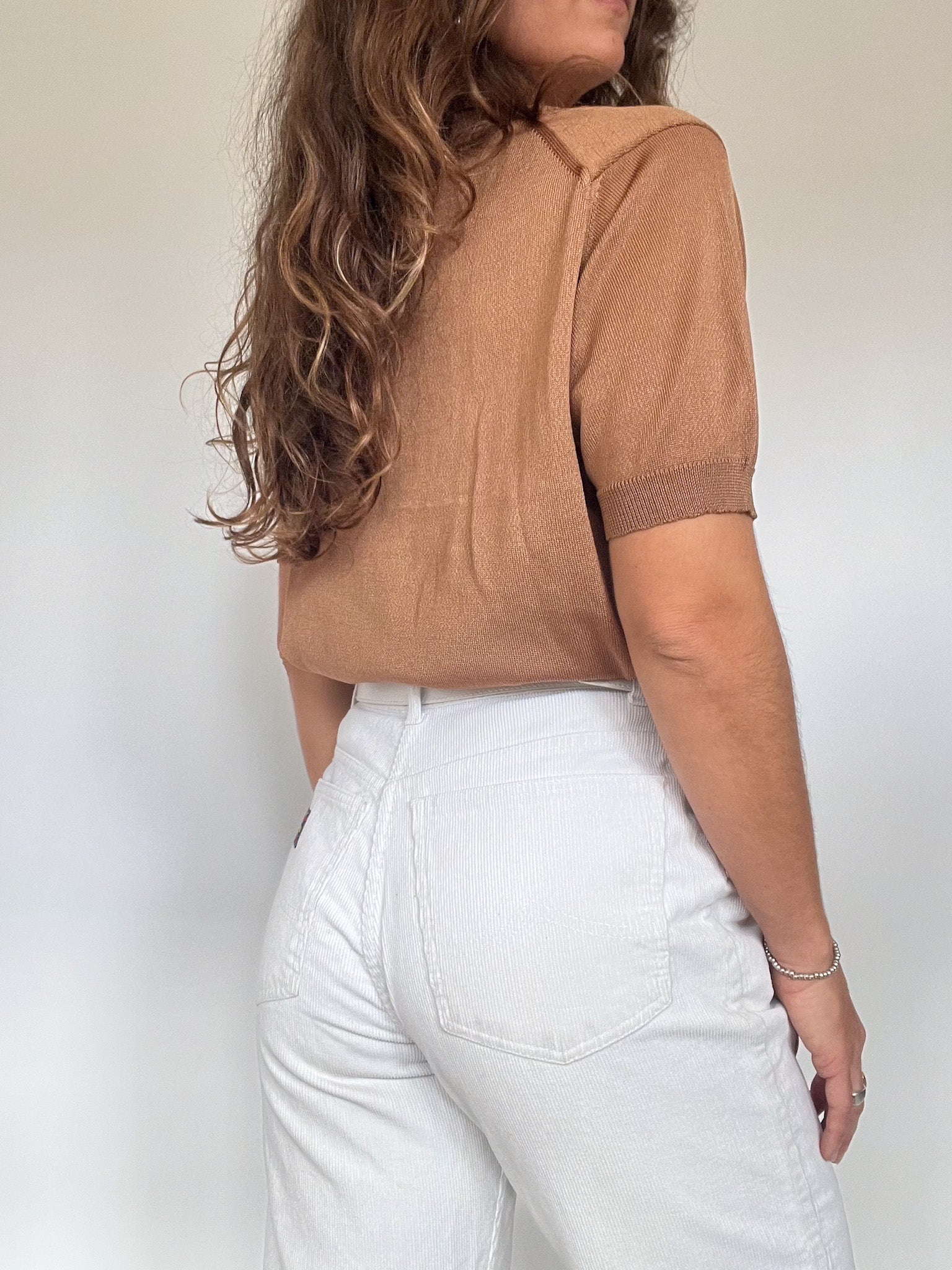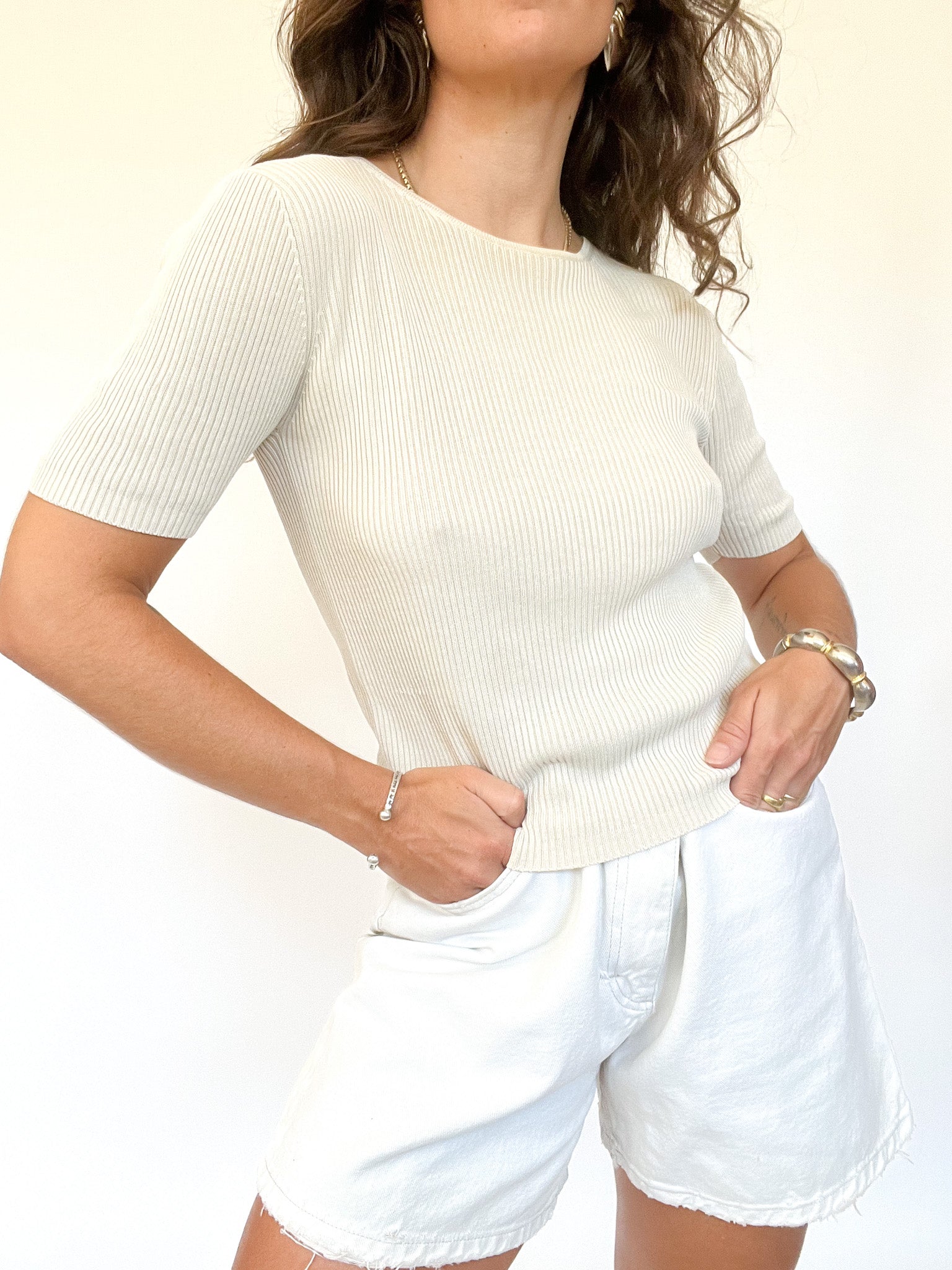 Vintage 90’s Cream Ribbed Silk Knit T-shirt