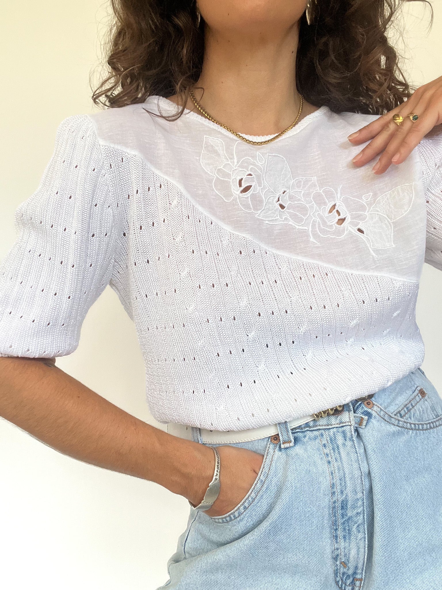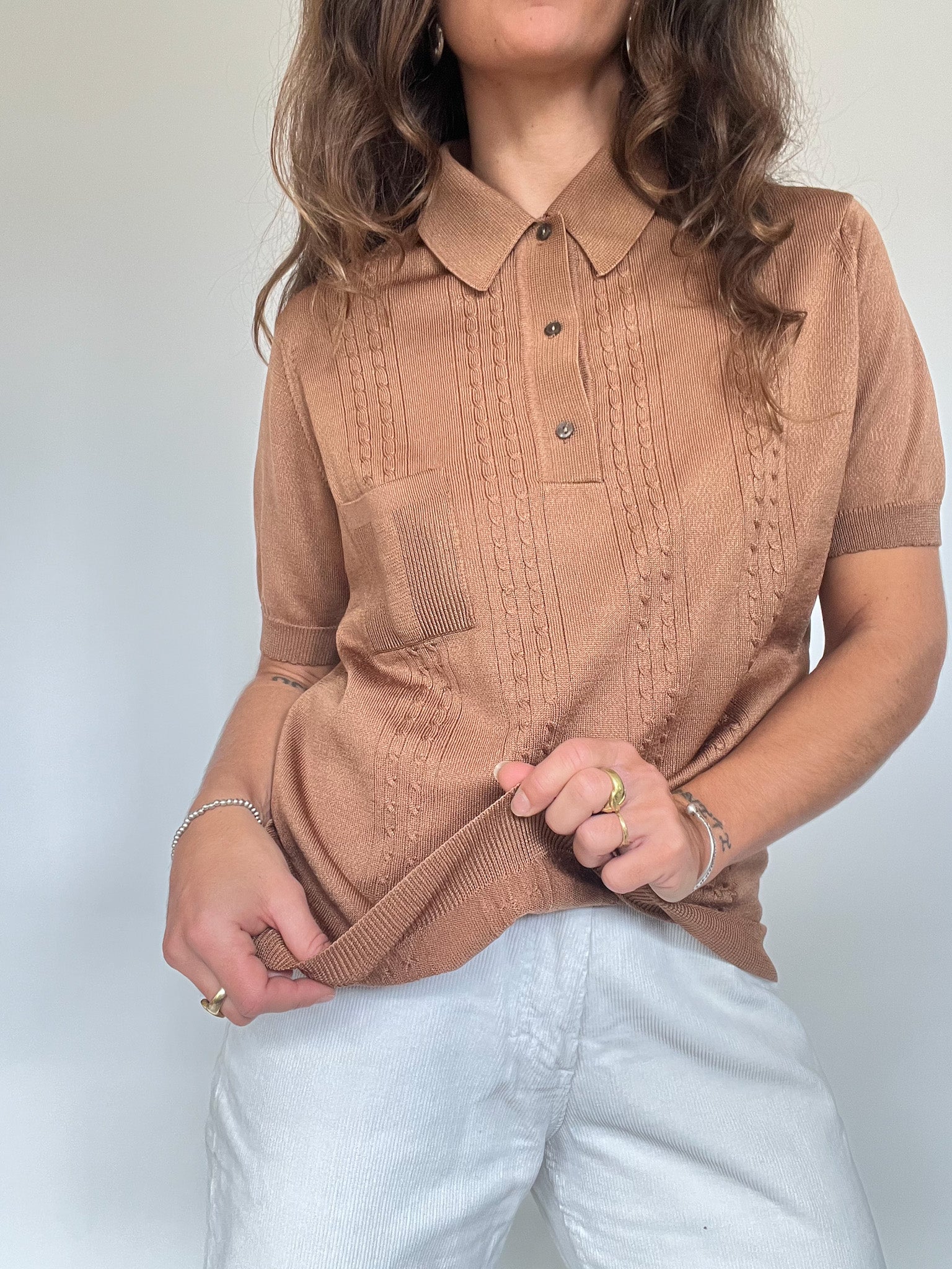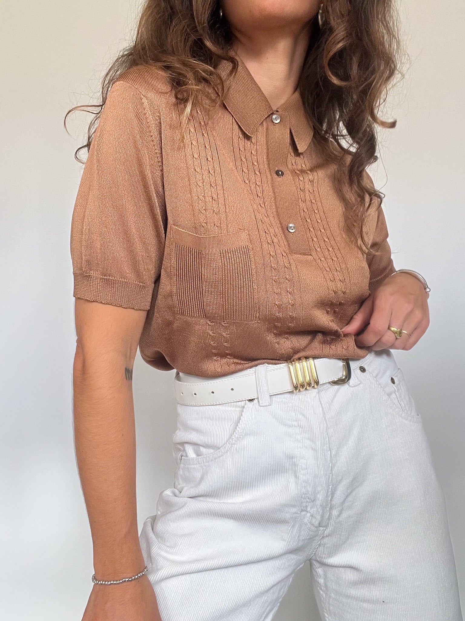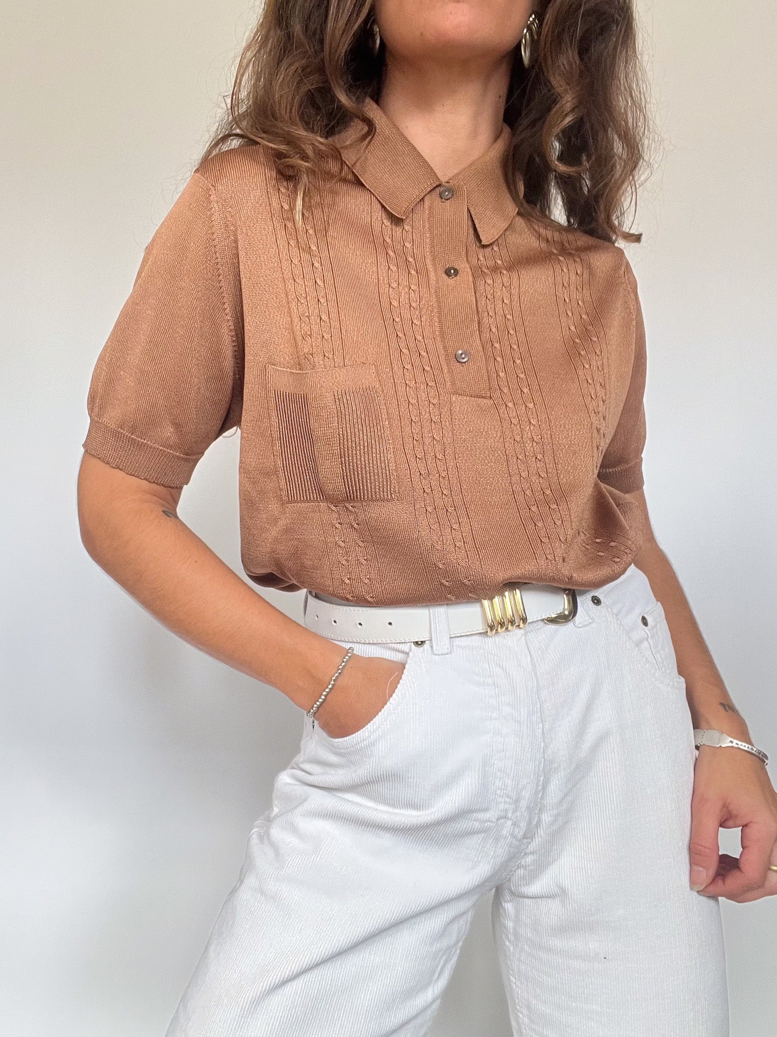 Vintage 90’s Cream Ribbed Silk Knit T-shirt