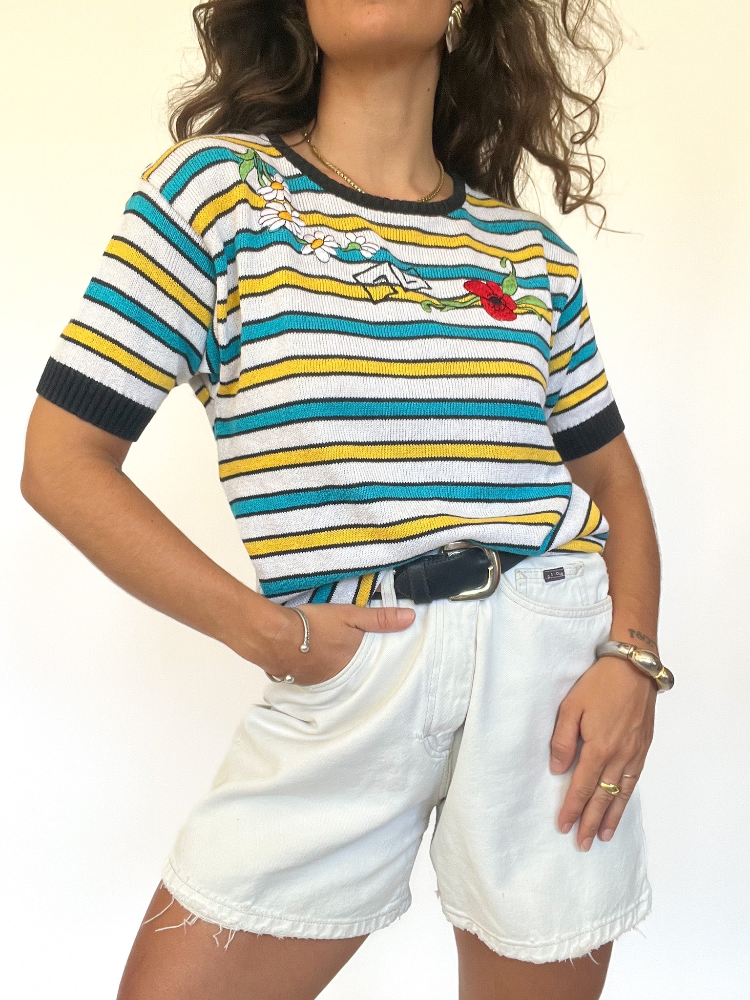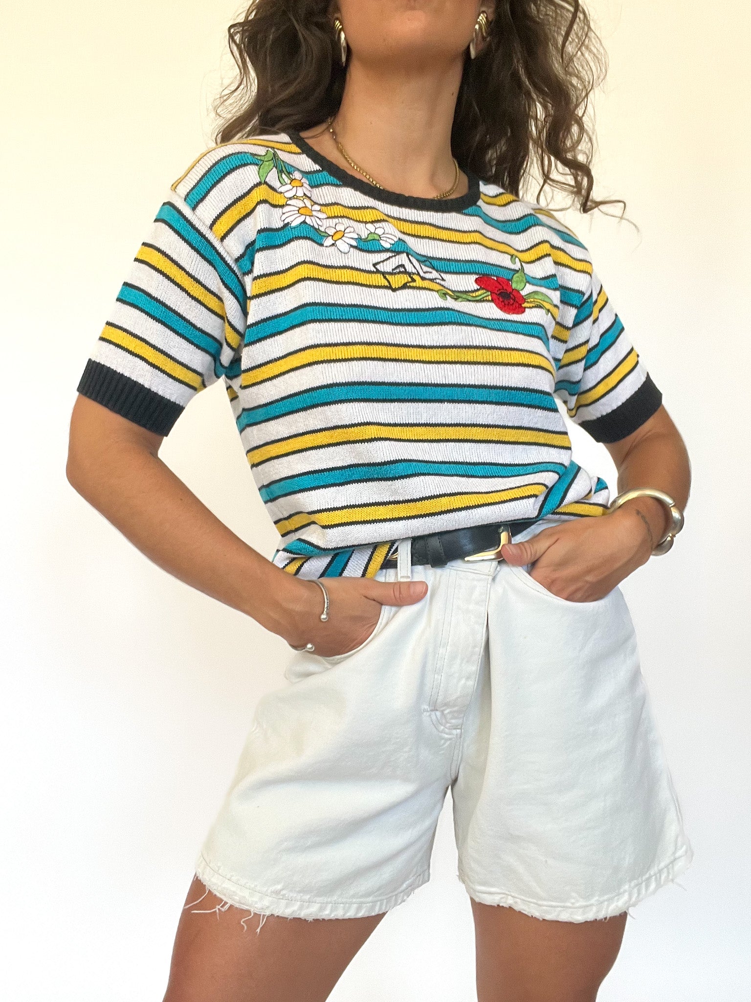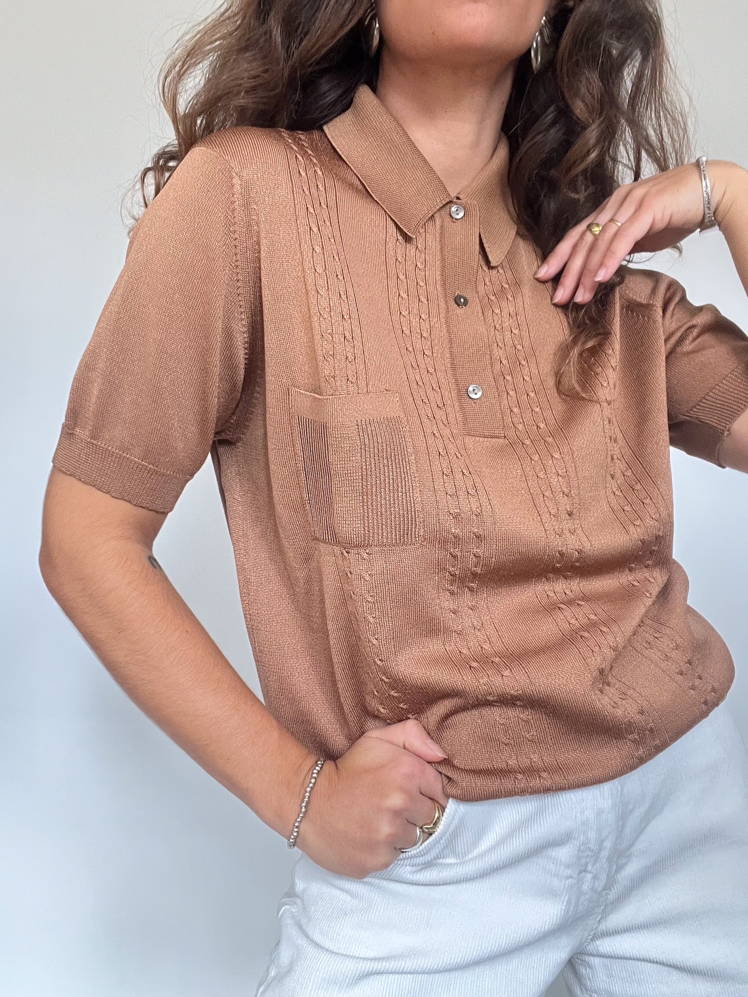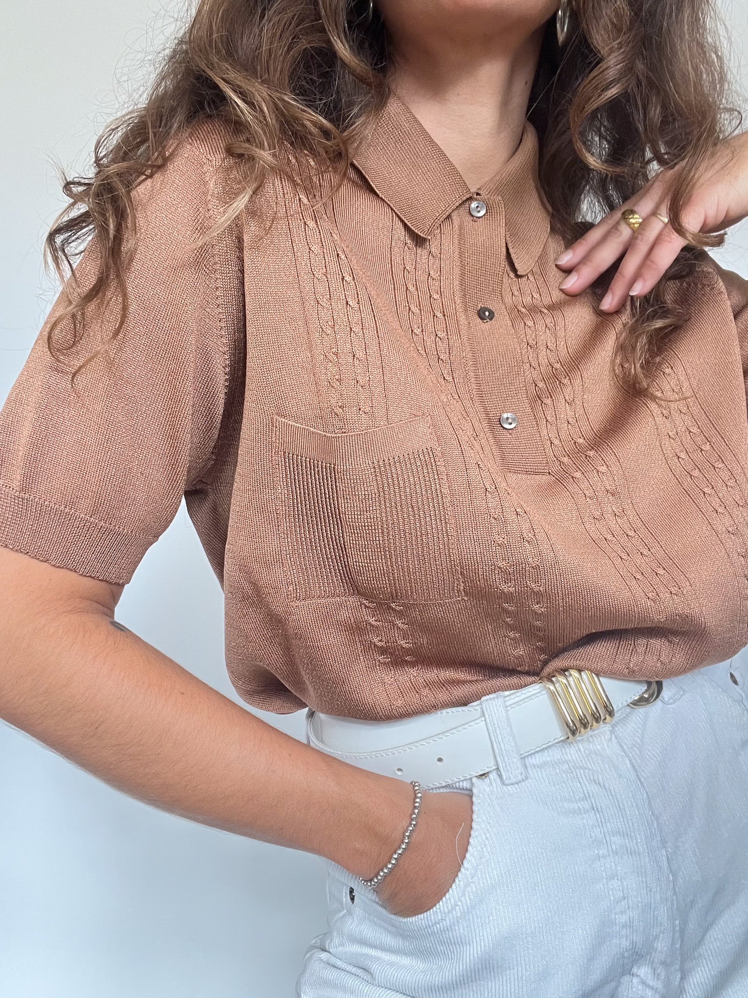 Vintage 90’s Cream Ribbed Silk Knit T-shirt