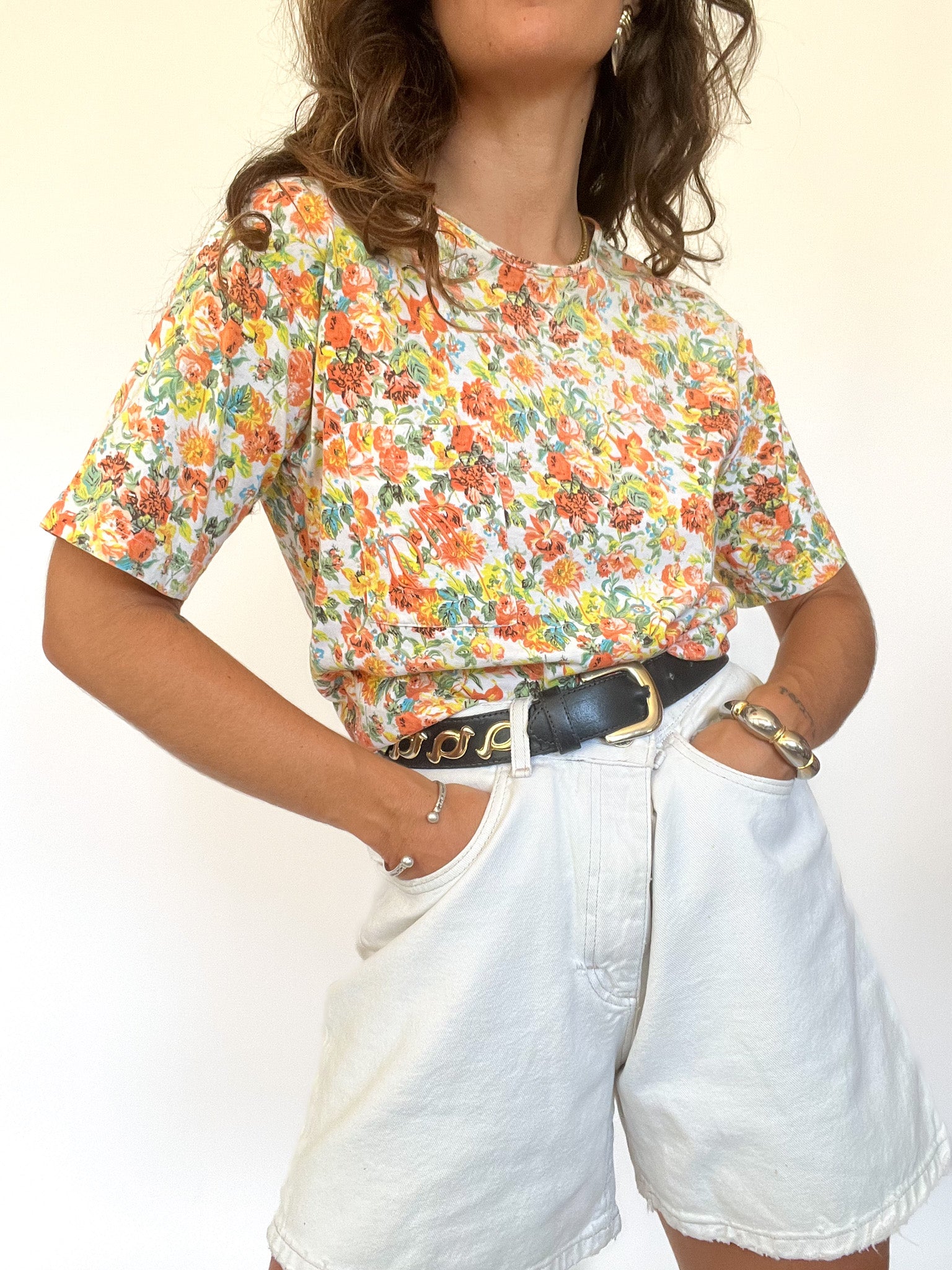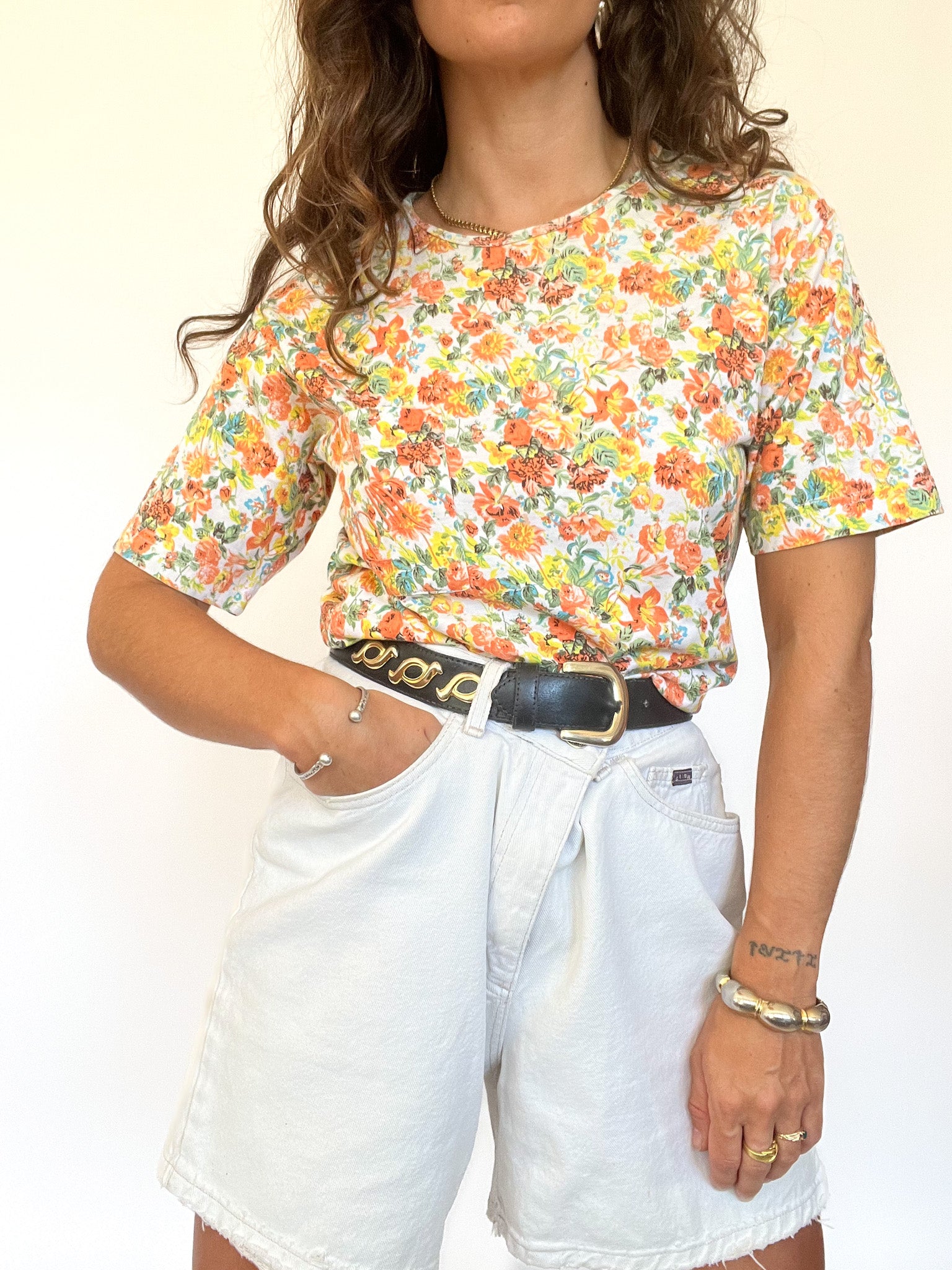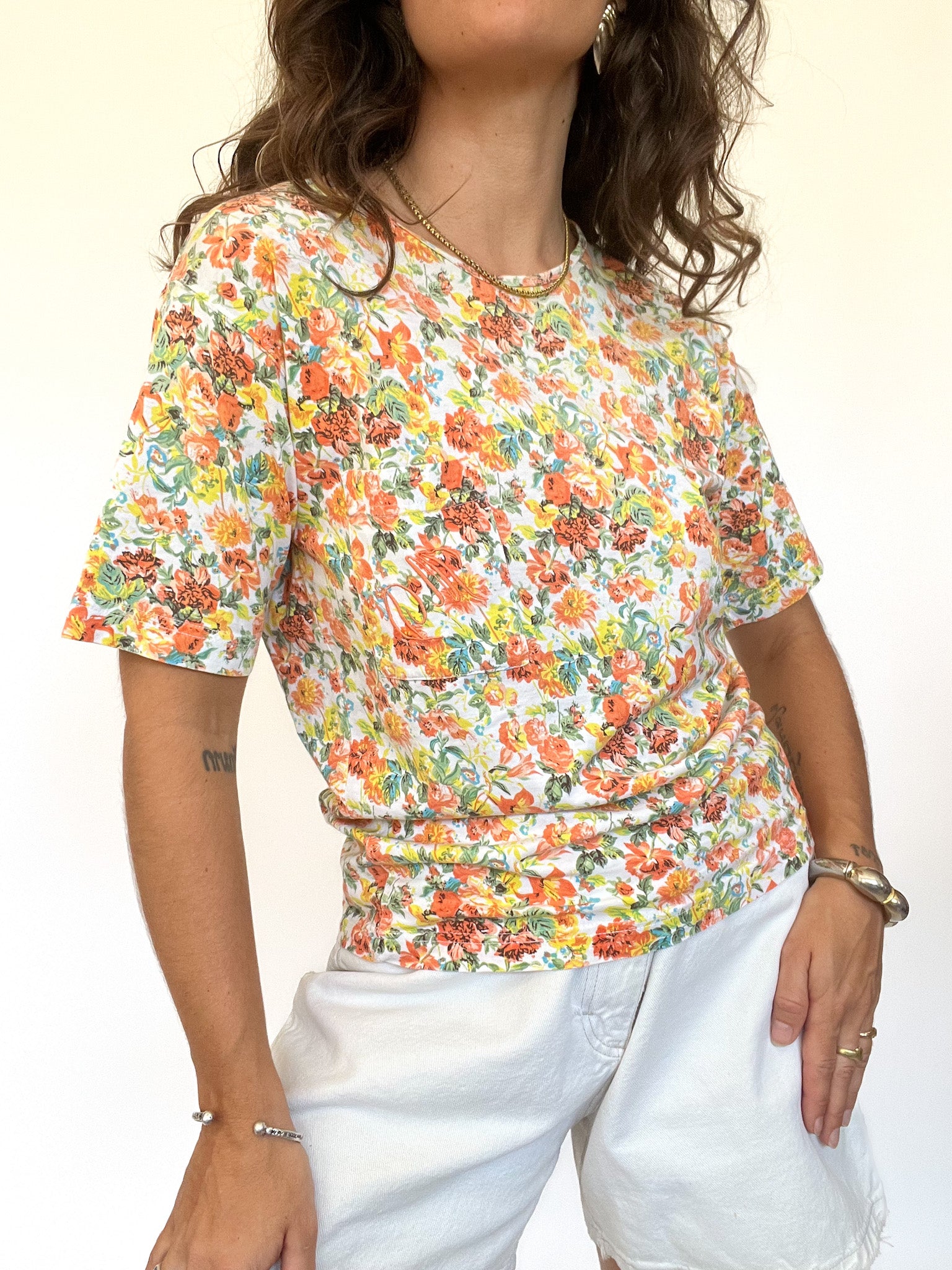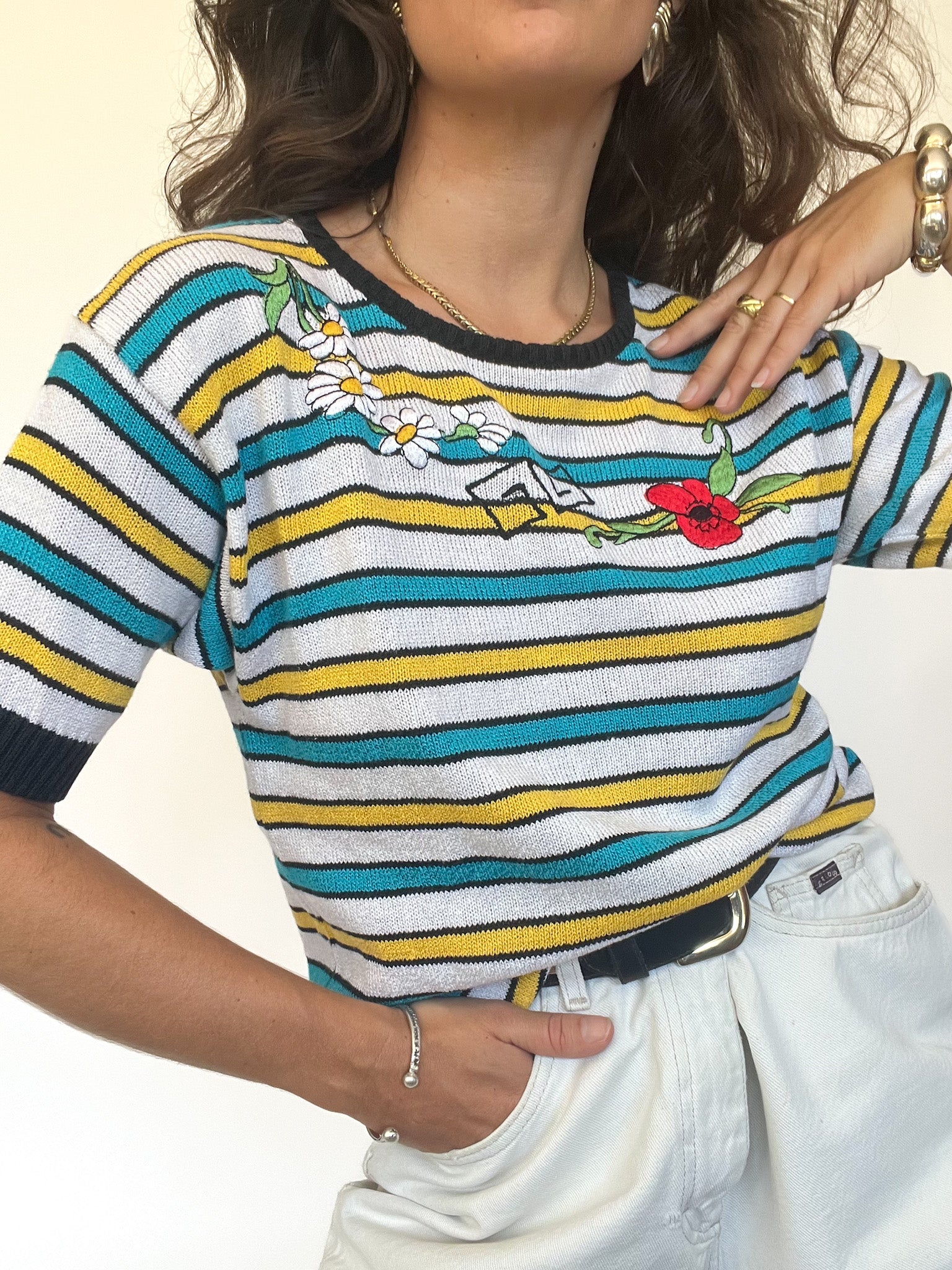 Vintage 90’s Cream Ribbed Silk Knit T-shirt