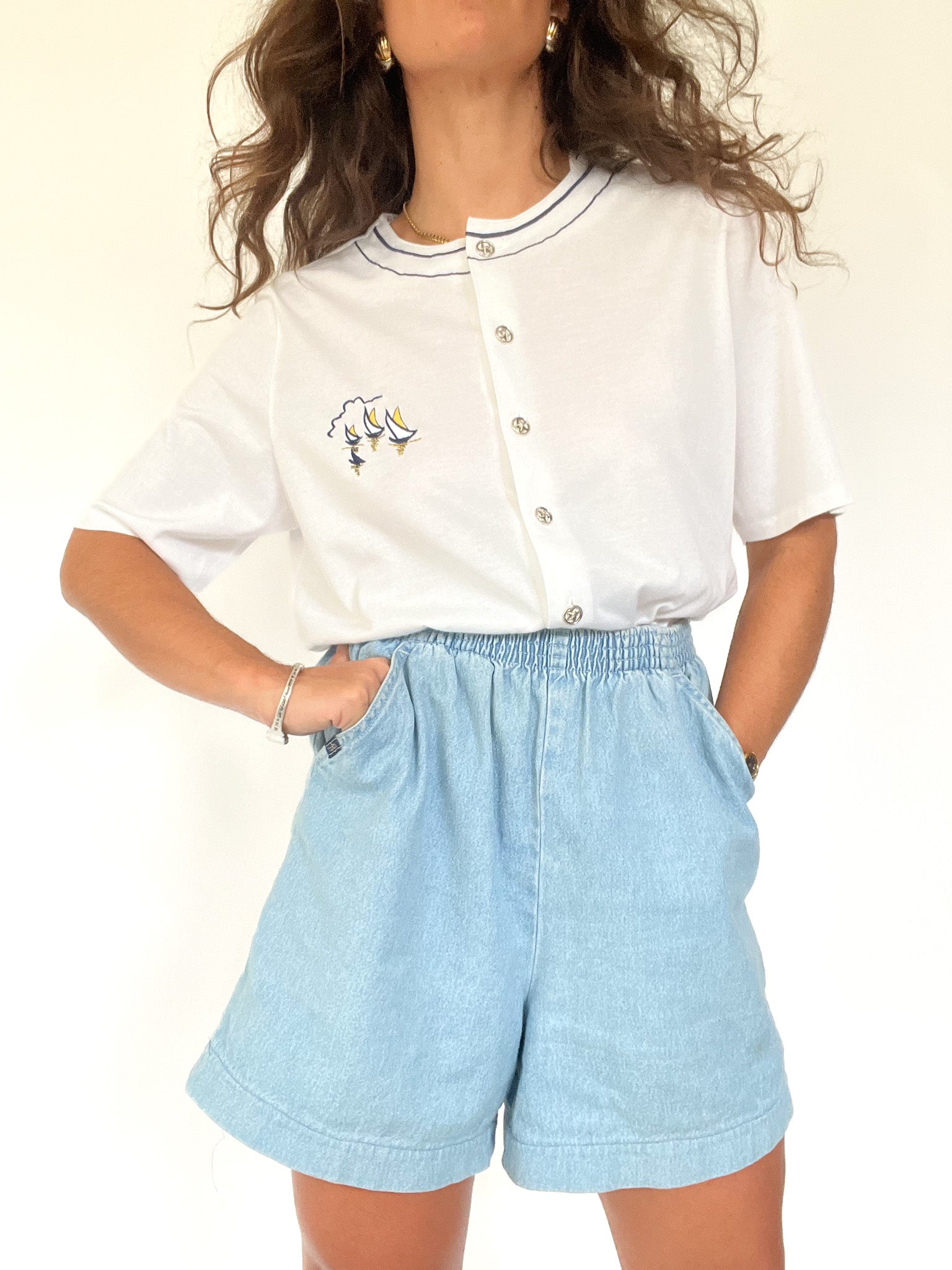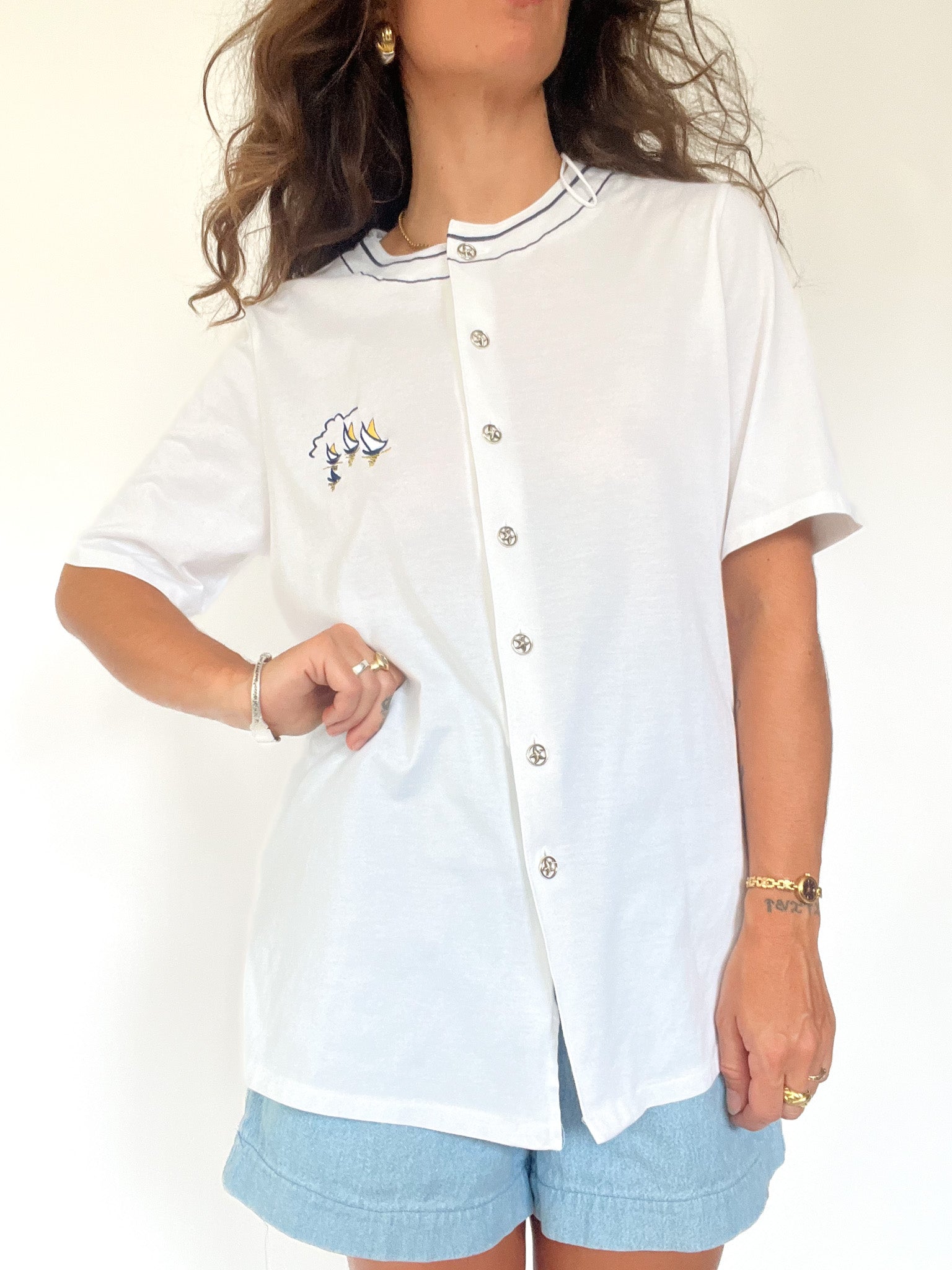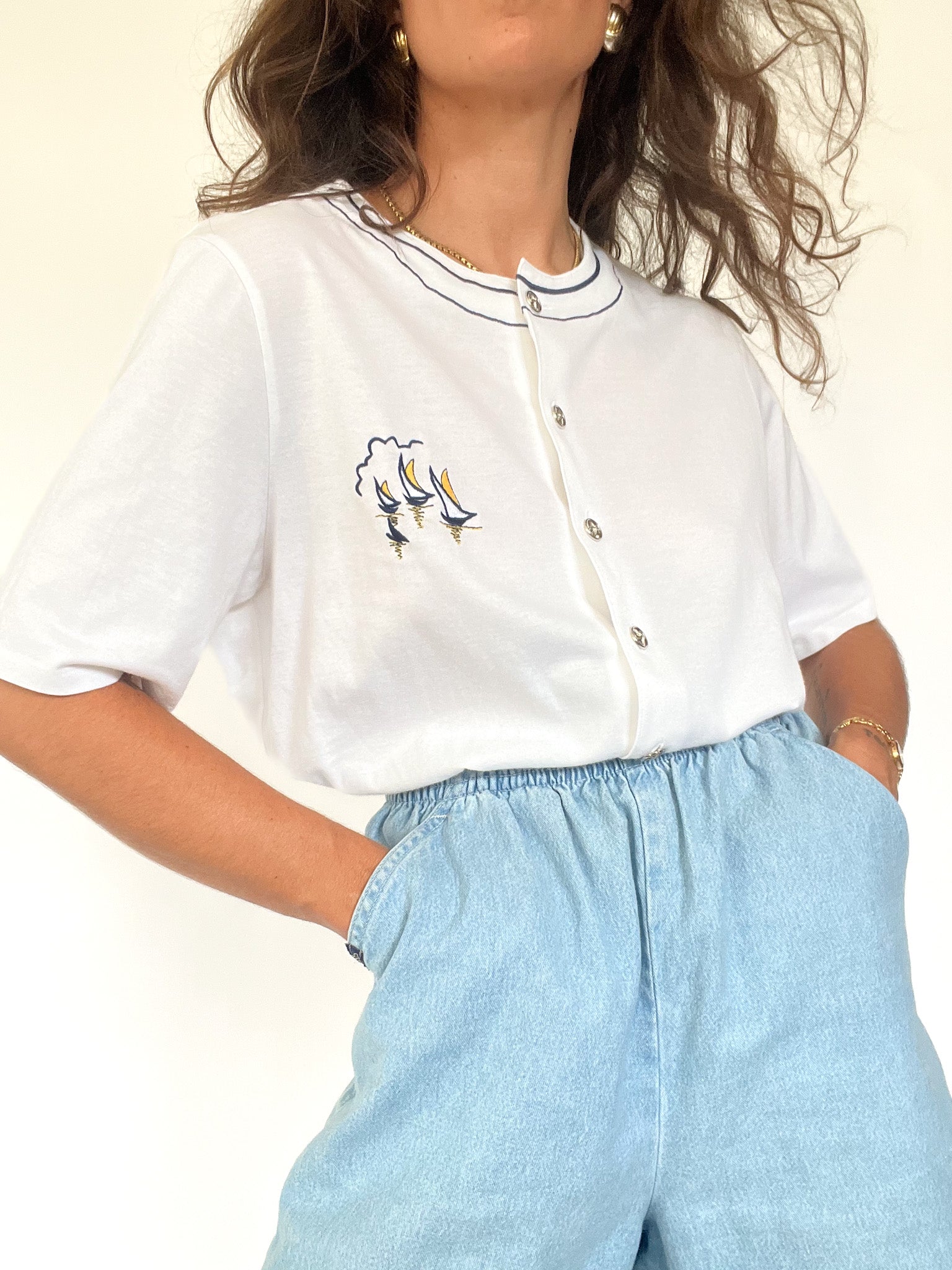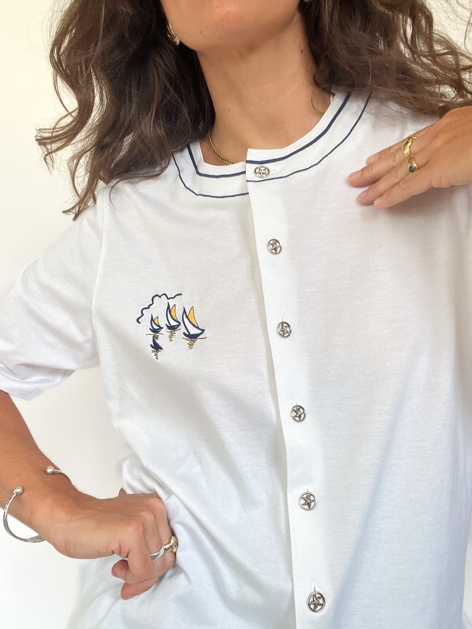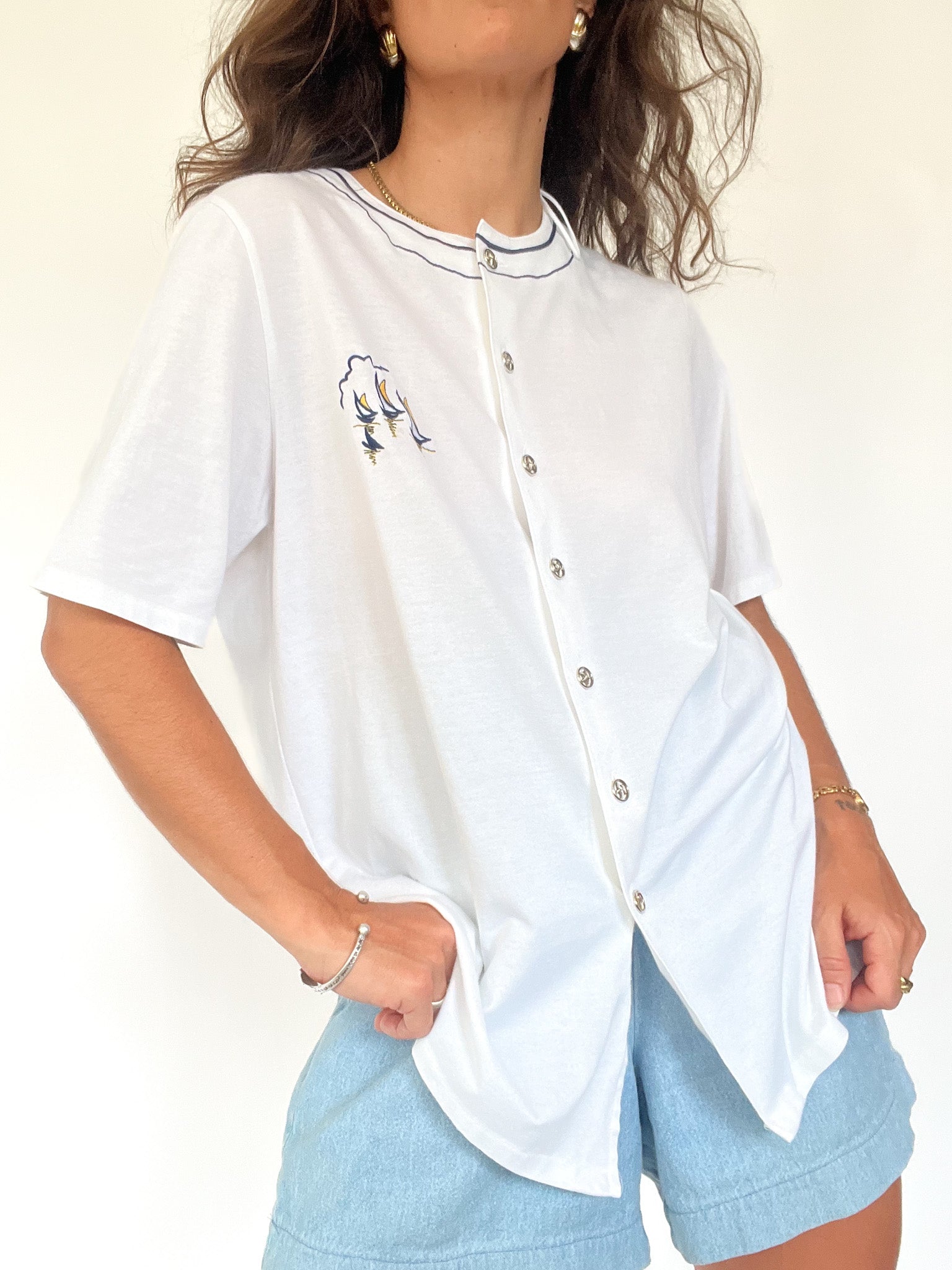 Vintage 90’s White Sailing Embroidered Button-Up Shirt