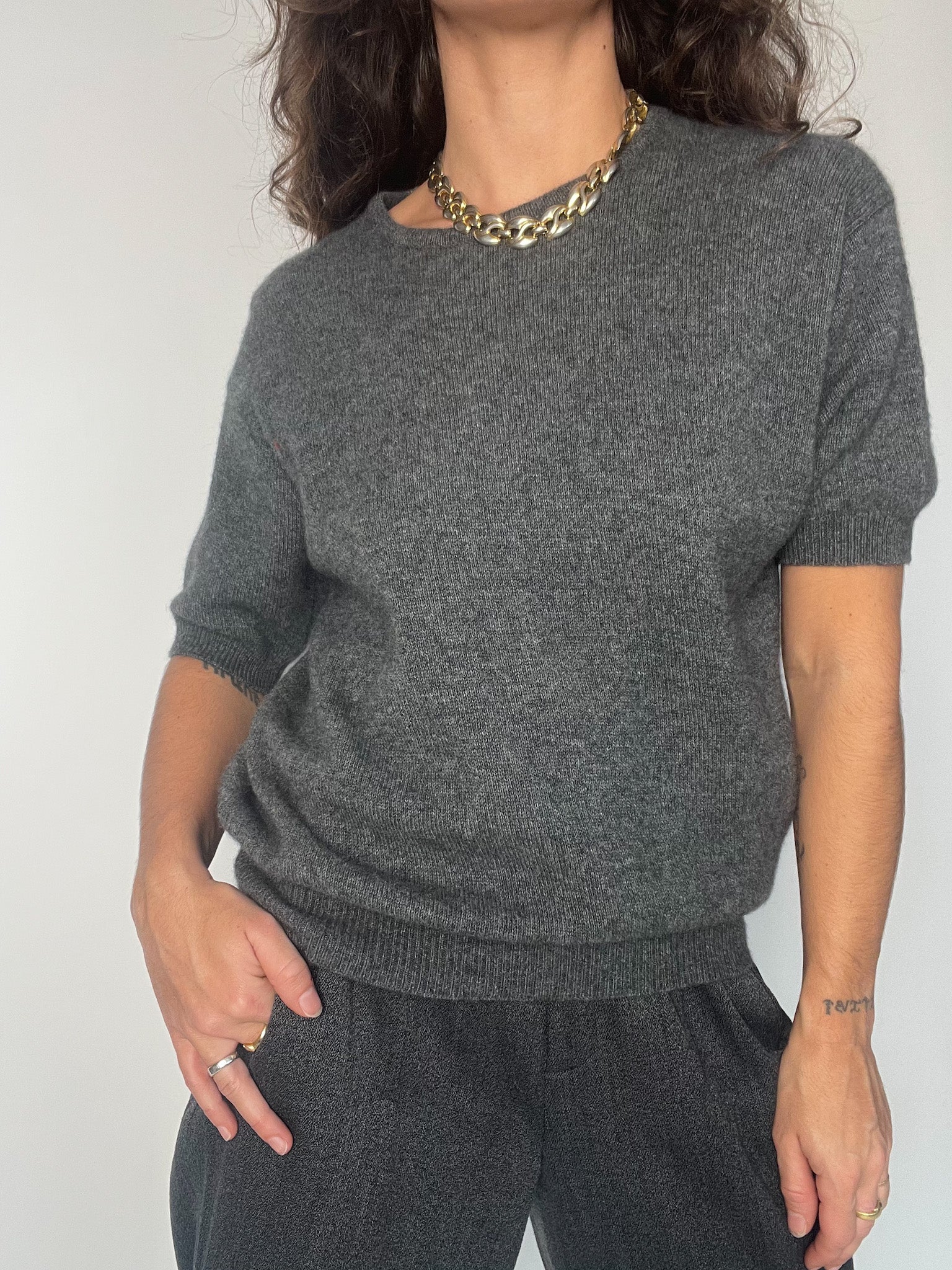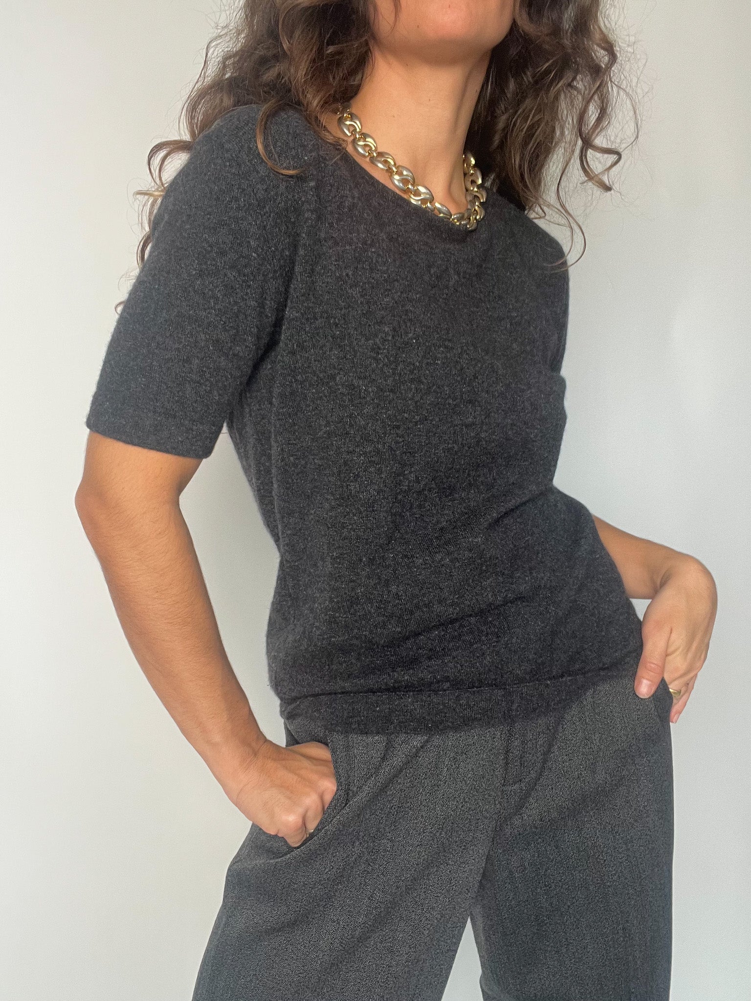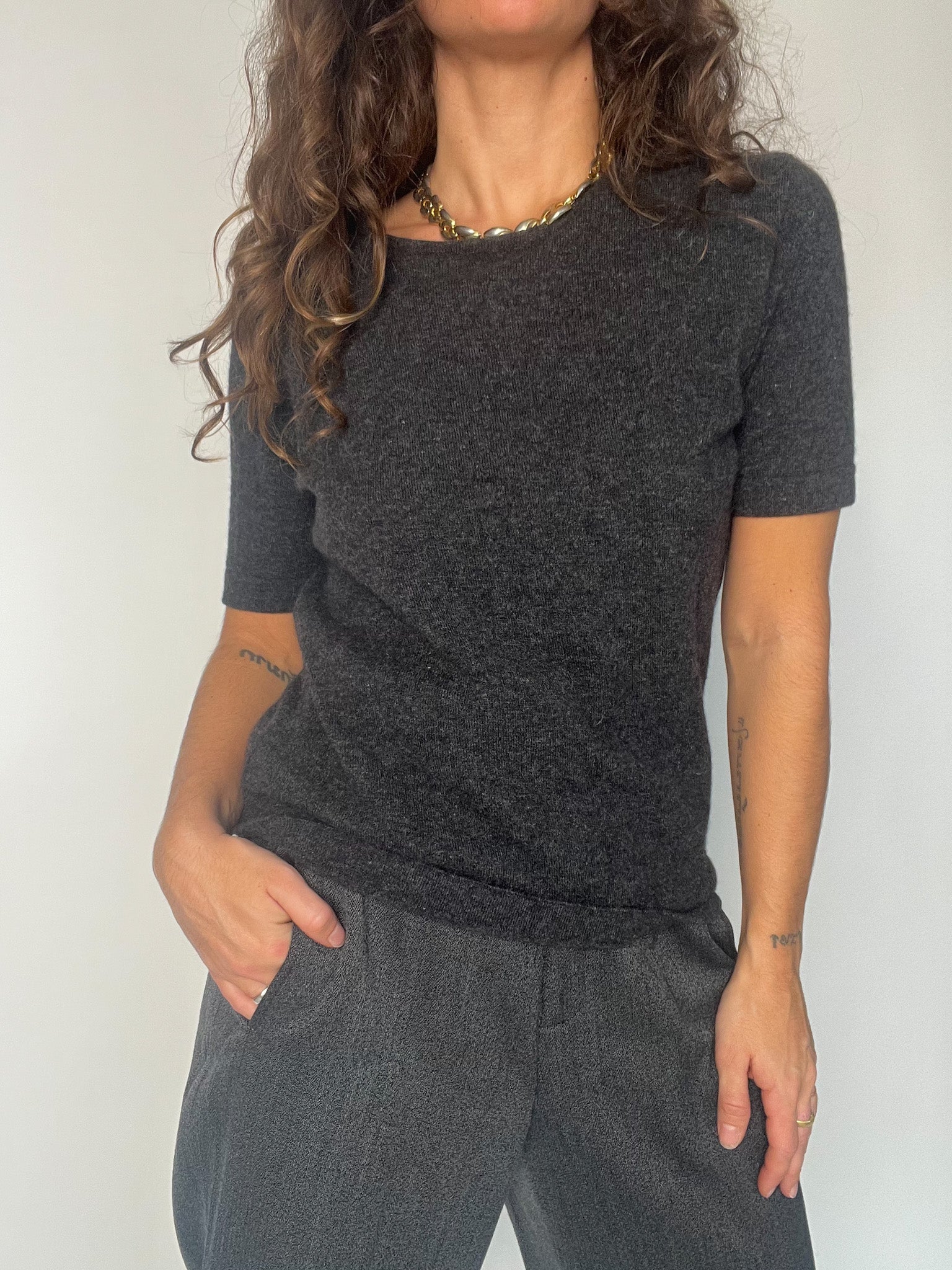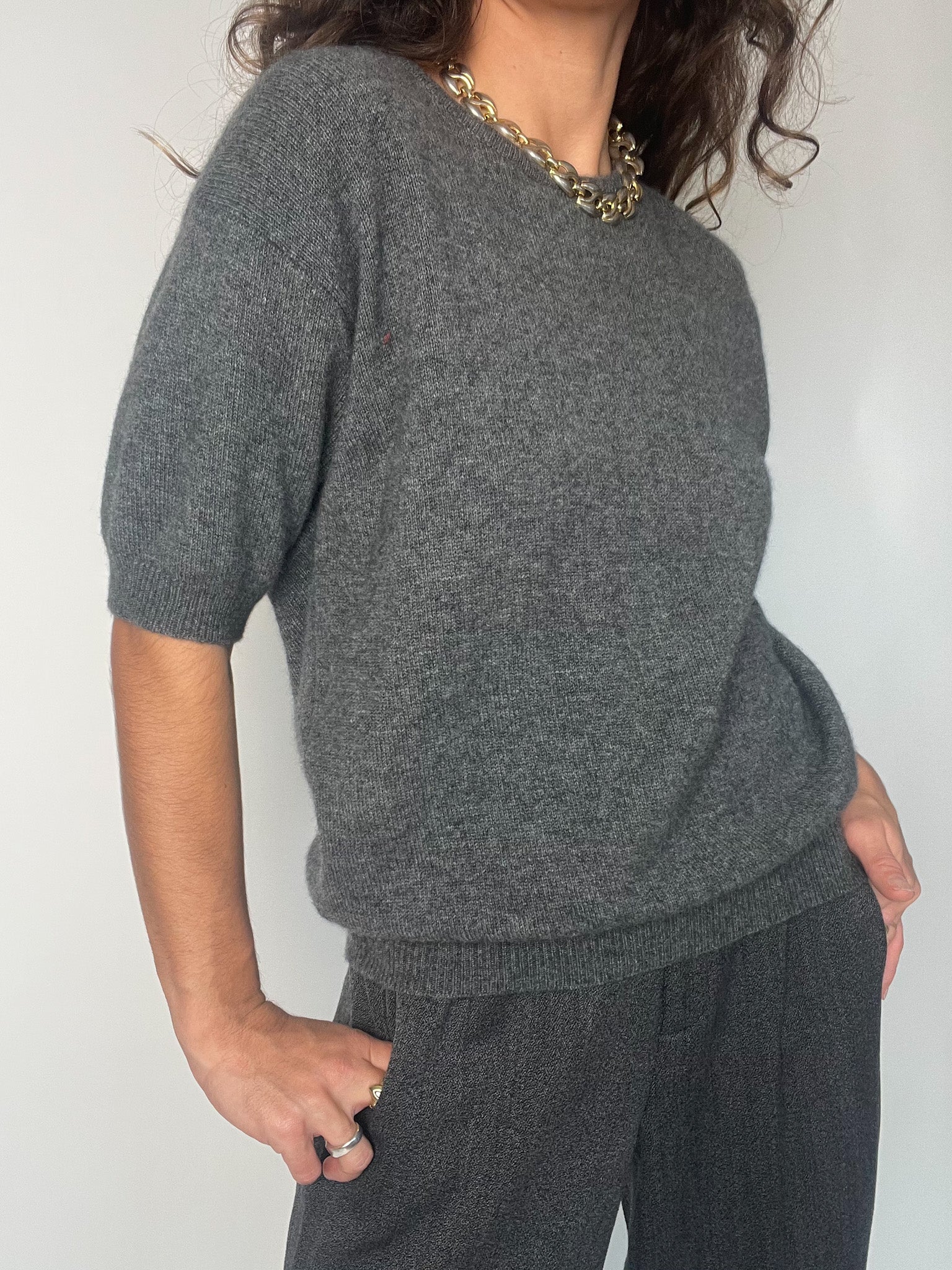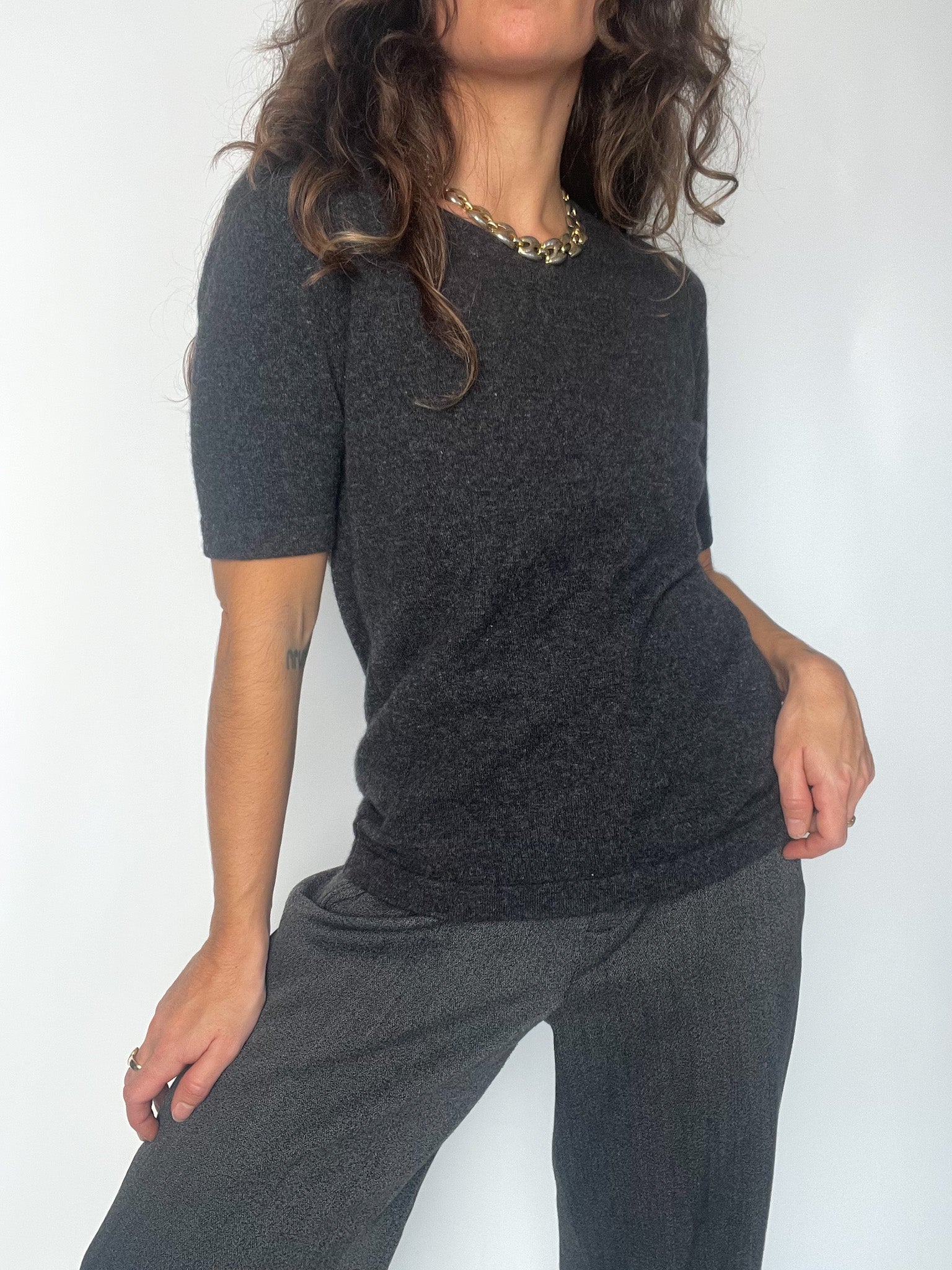 Vintage 90’s Charcoal Merino Wool & Cashmere Short Sleeve Sweater