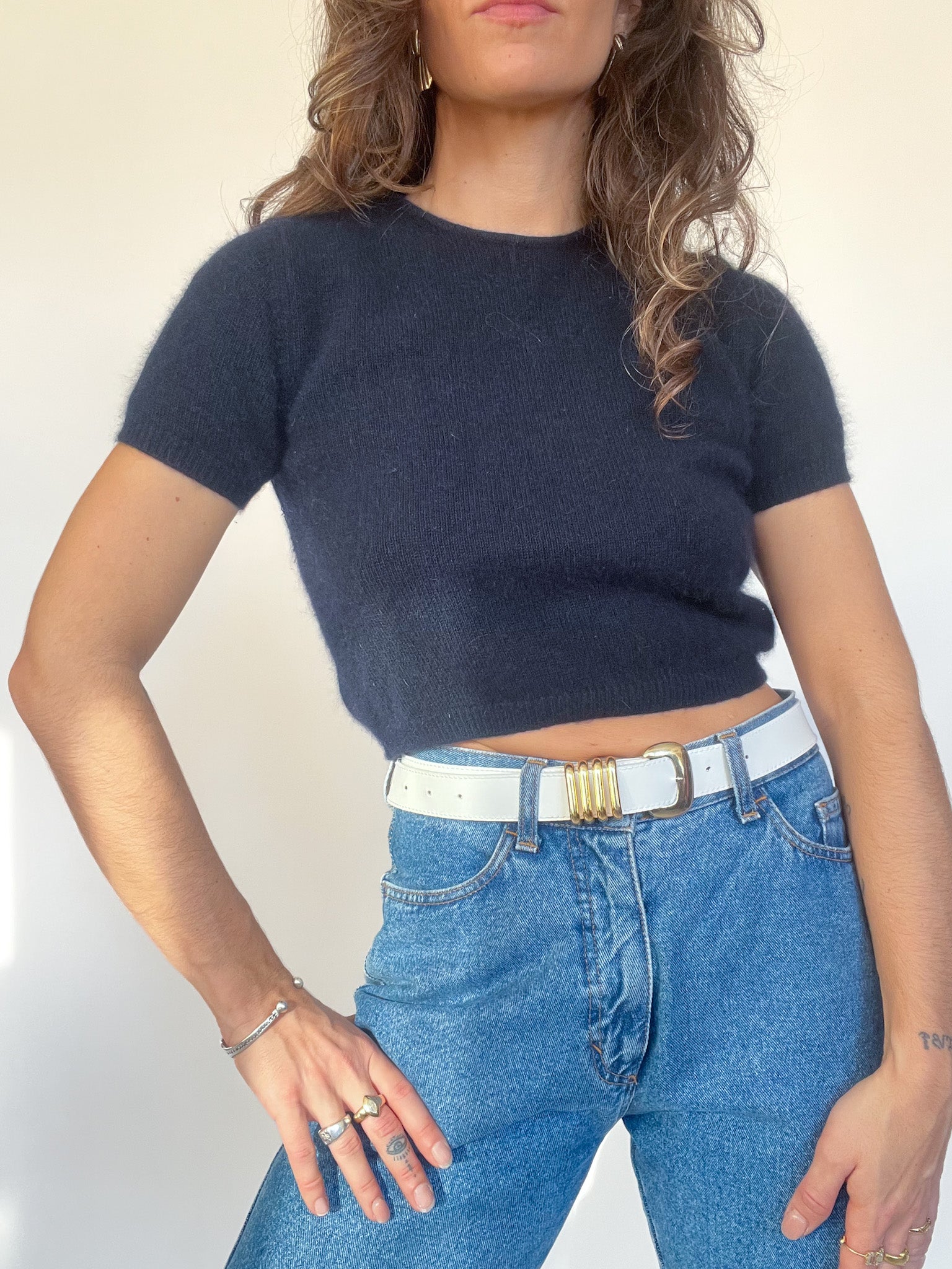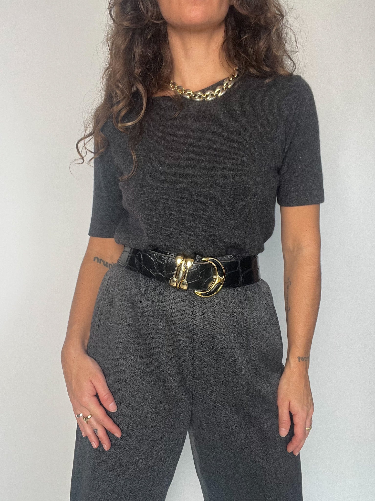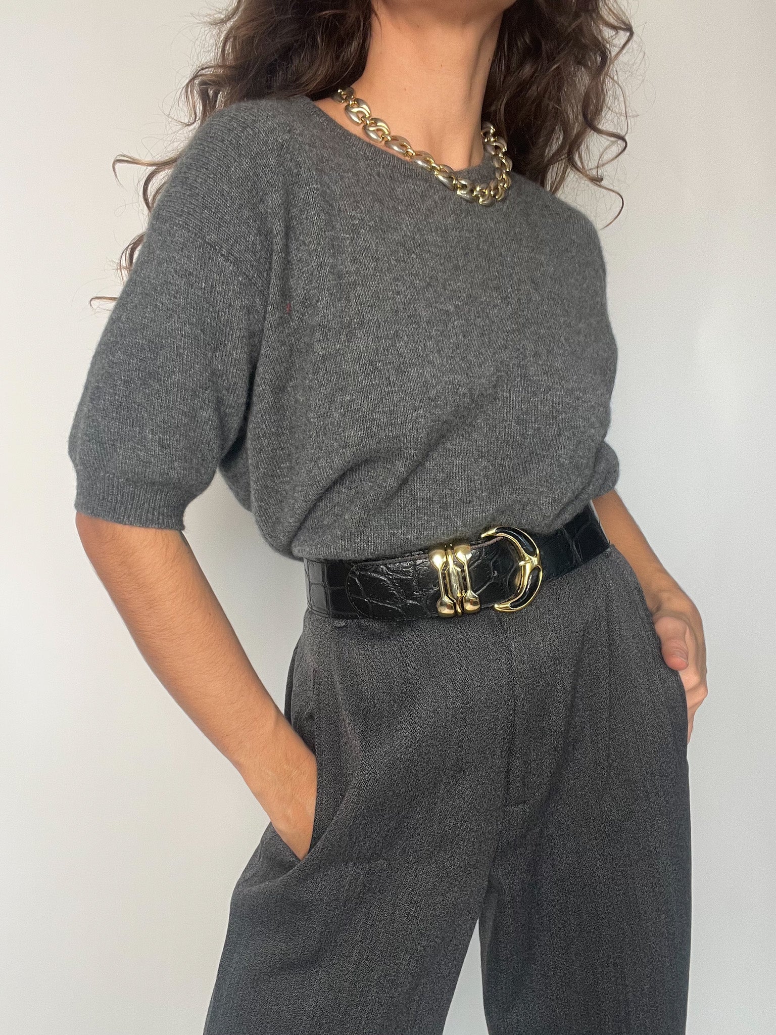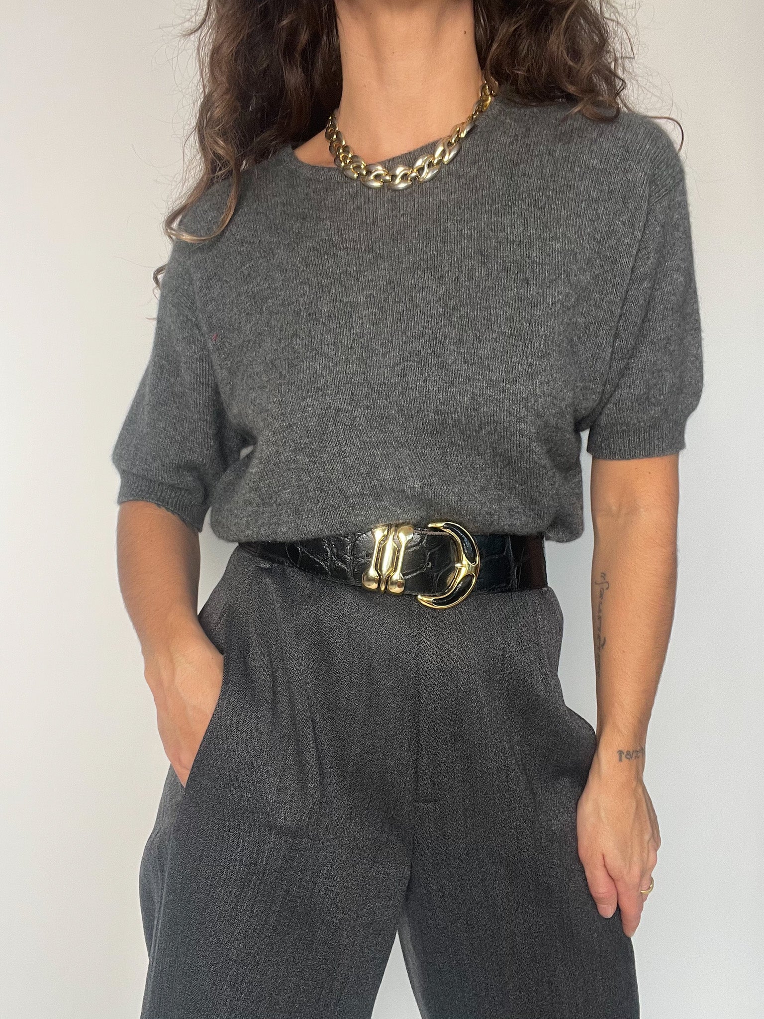 Vintage 90’s Charcoal Merino Wool & Cashmere Short Sleeve Sweater