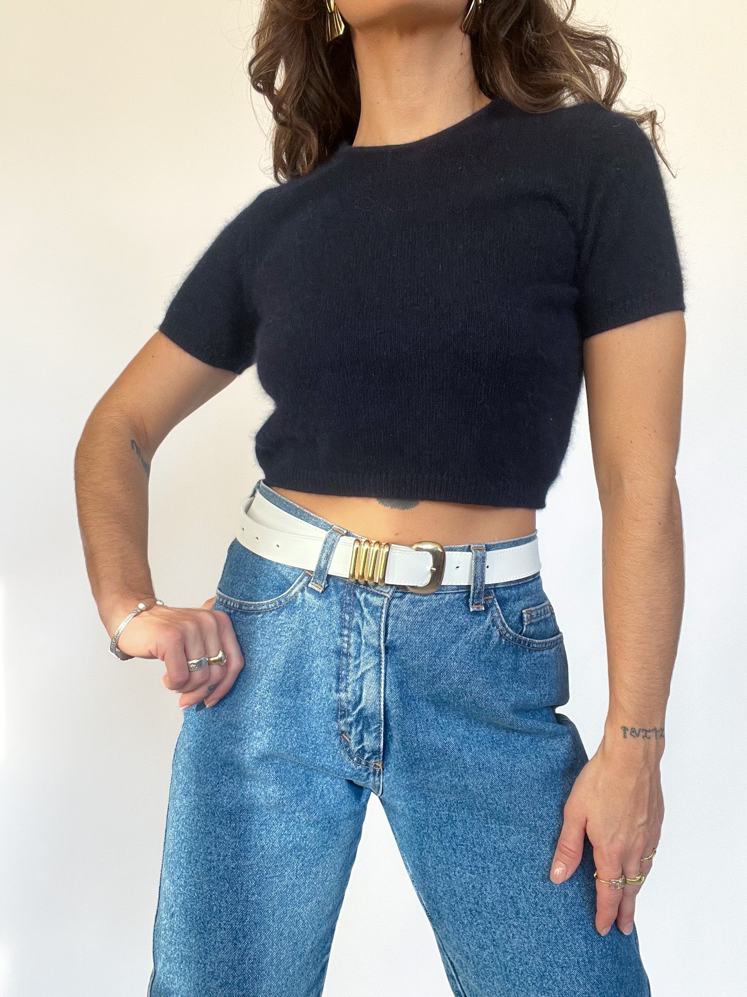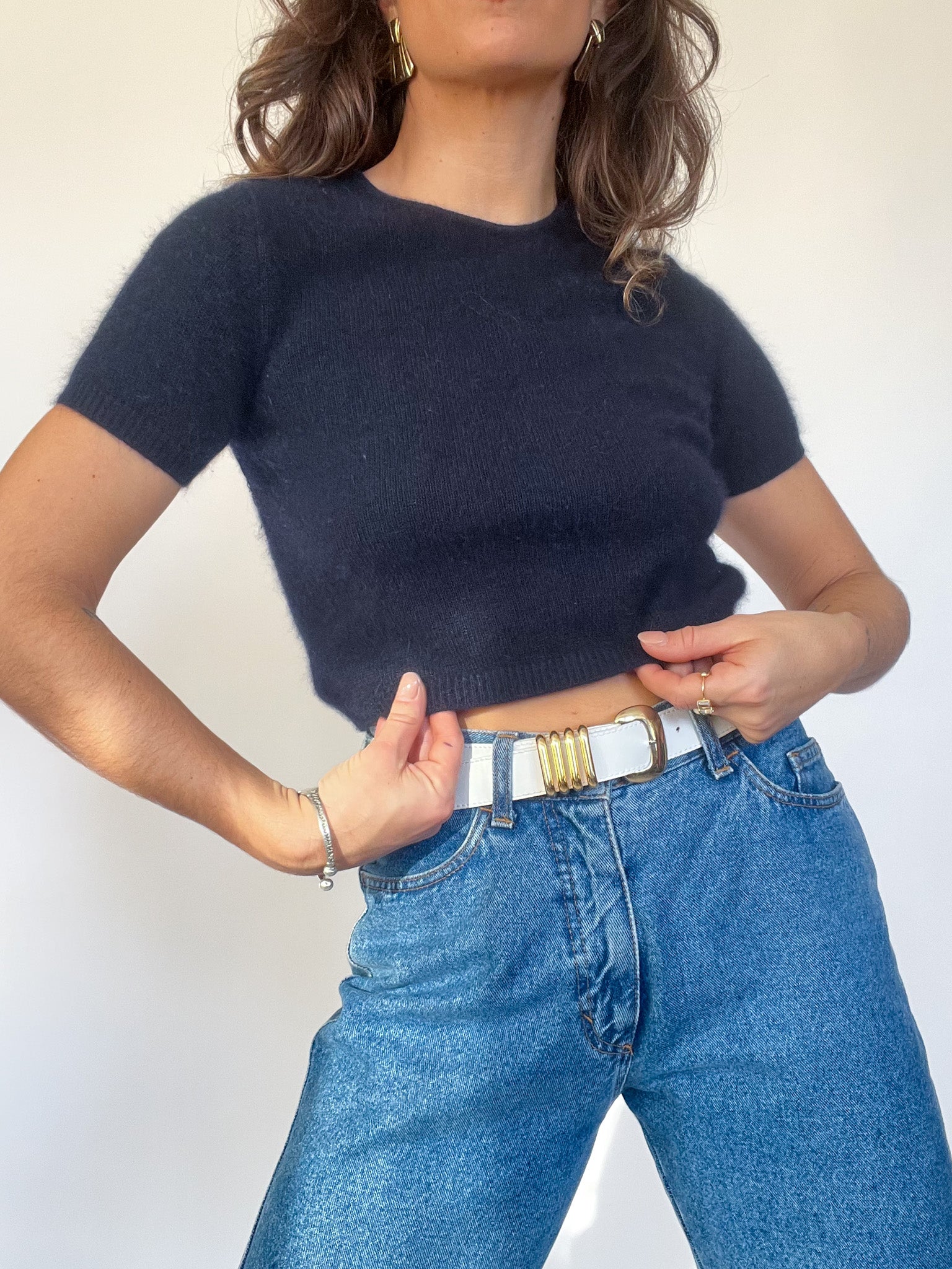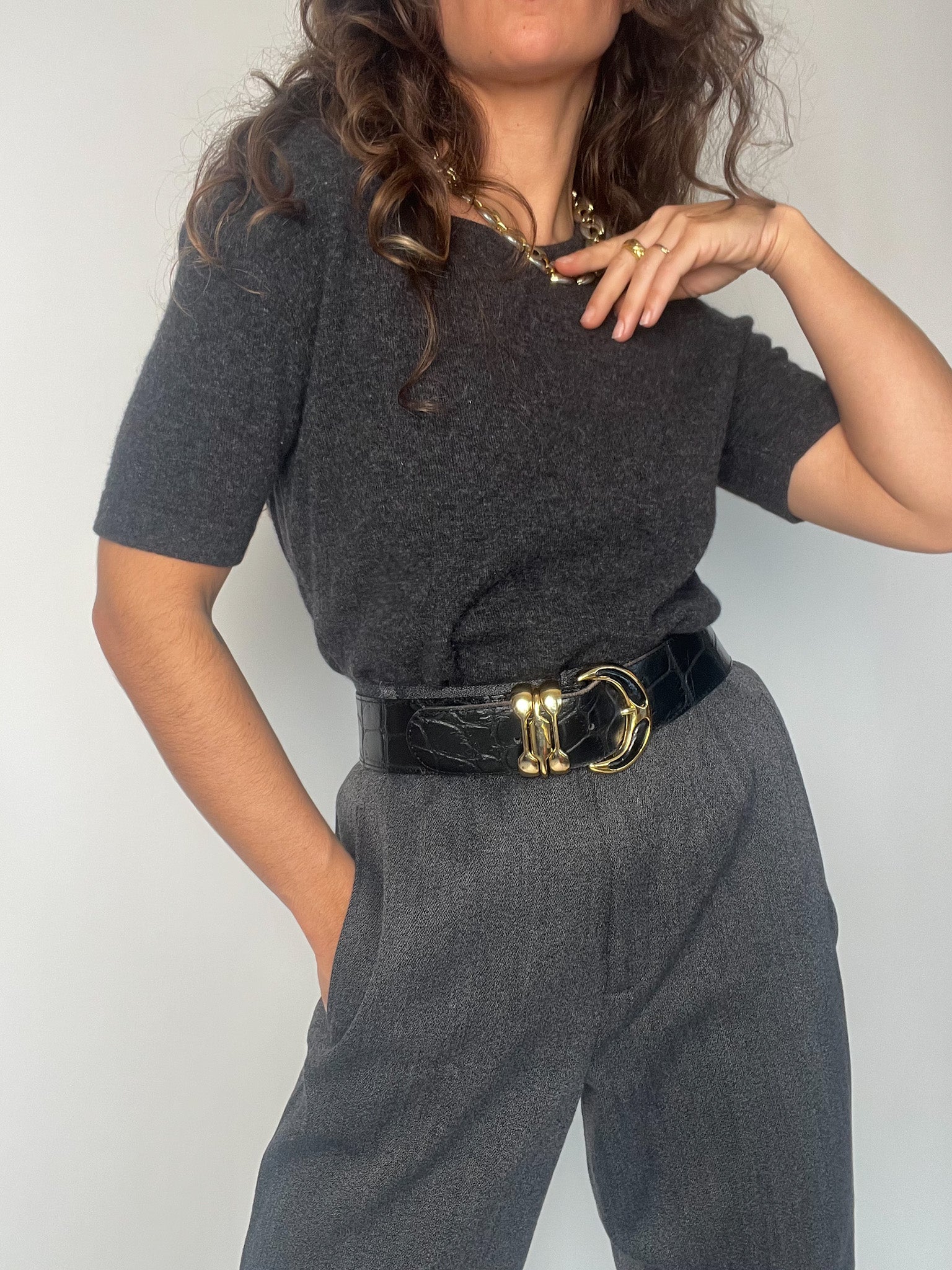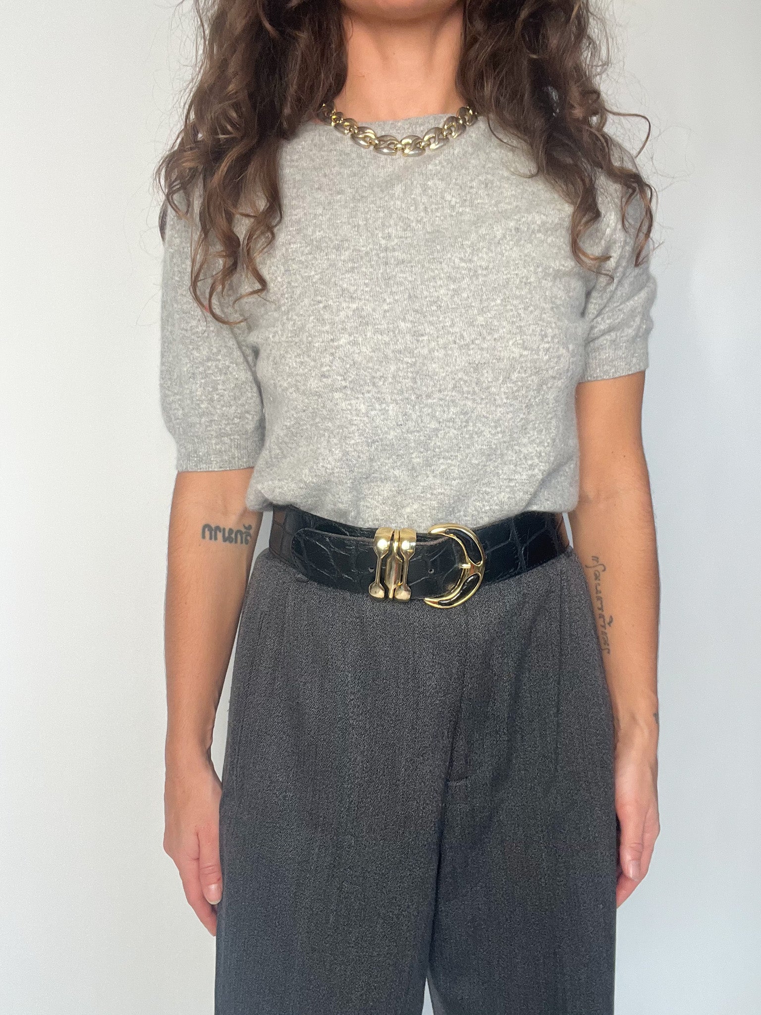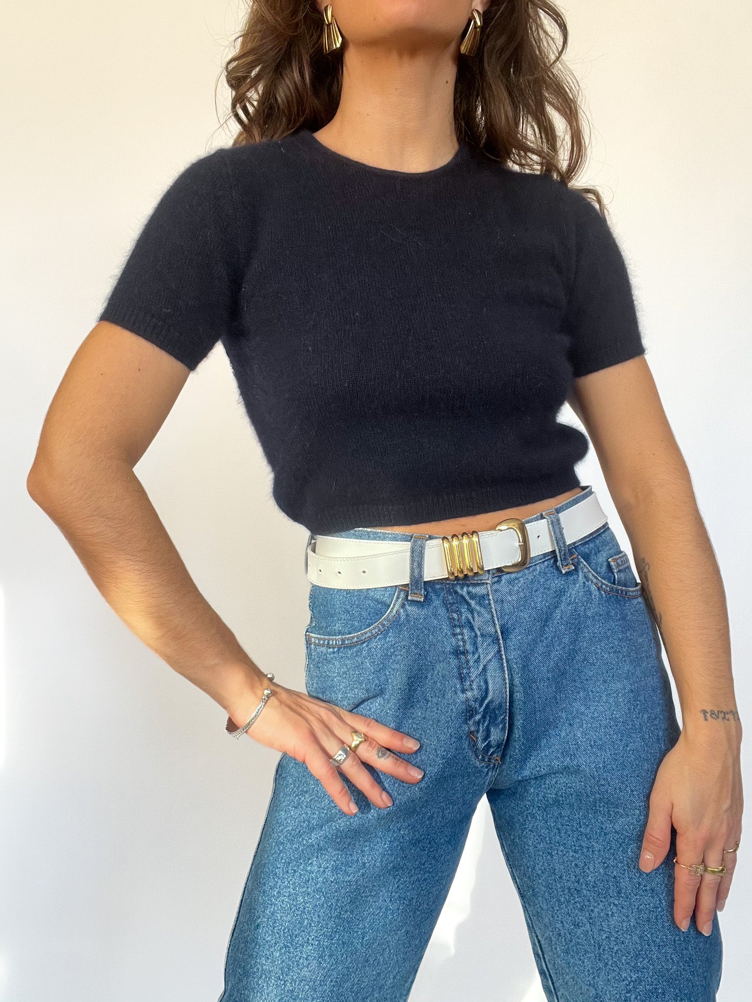 Vintage 90’s Charcoal Merino Wool & Cashmere Short Sleeve Sweater
