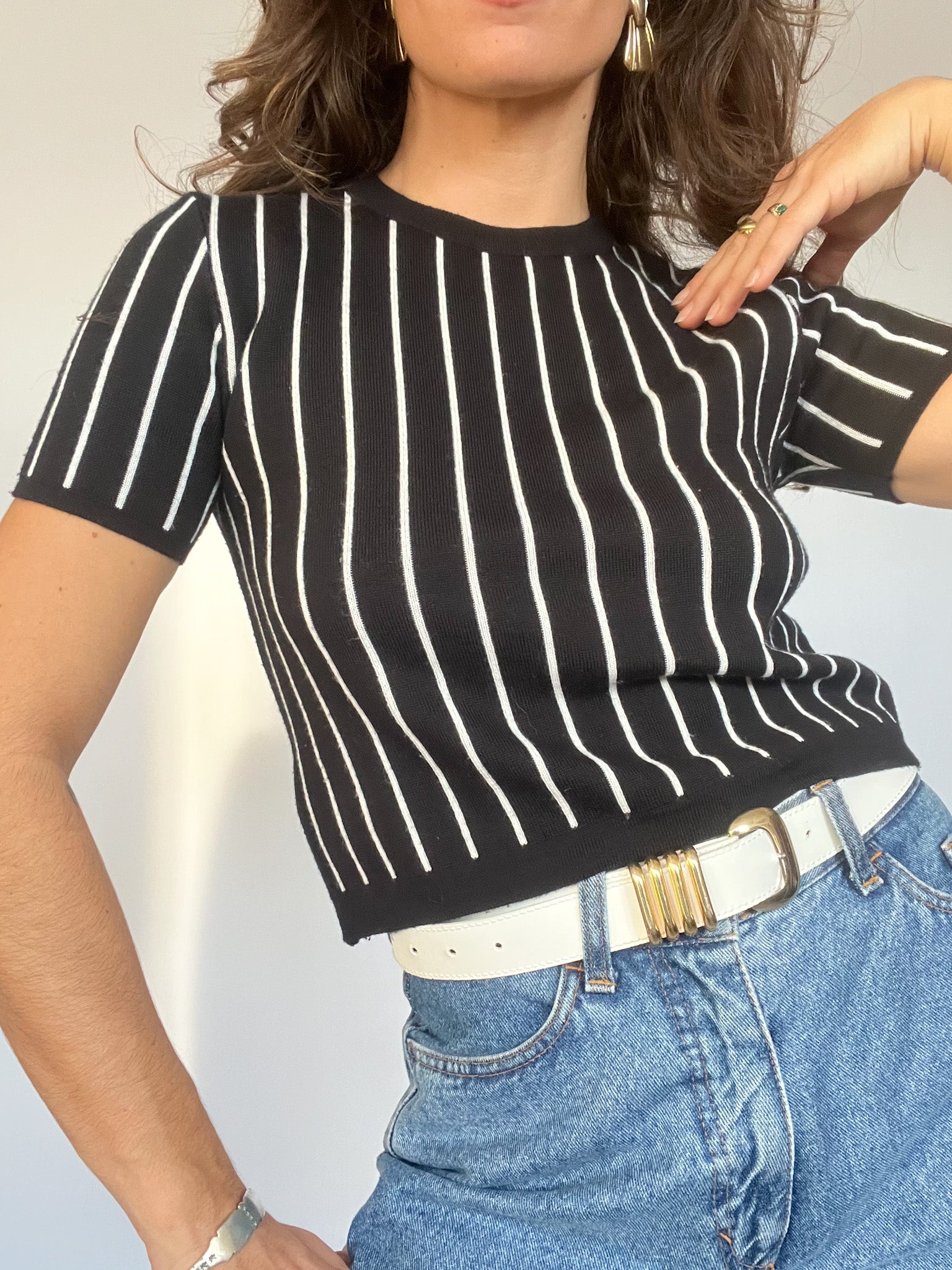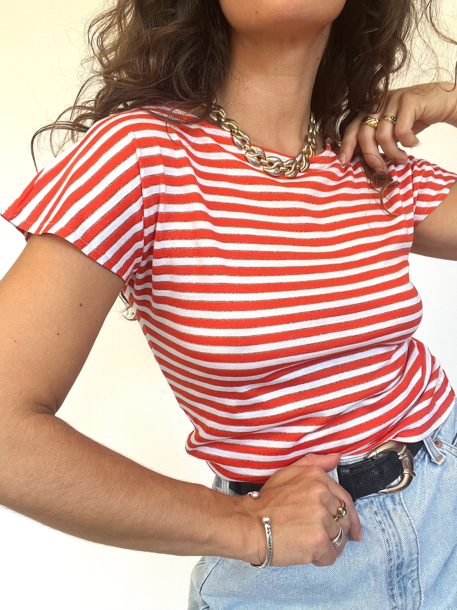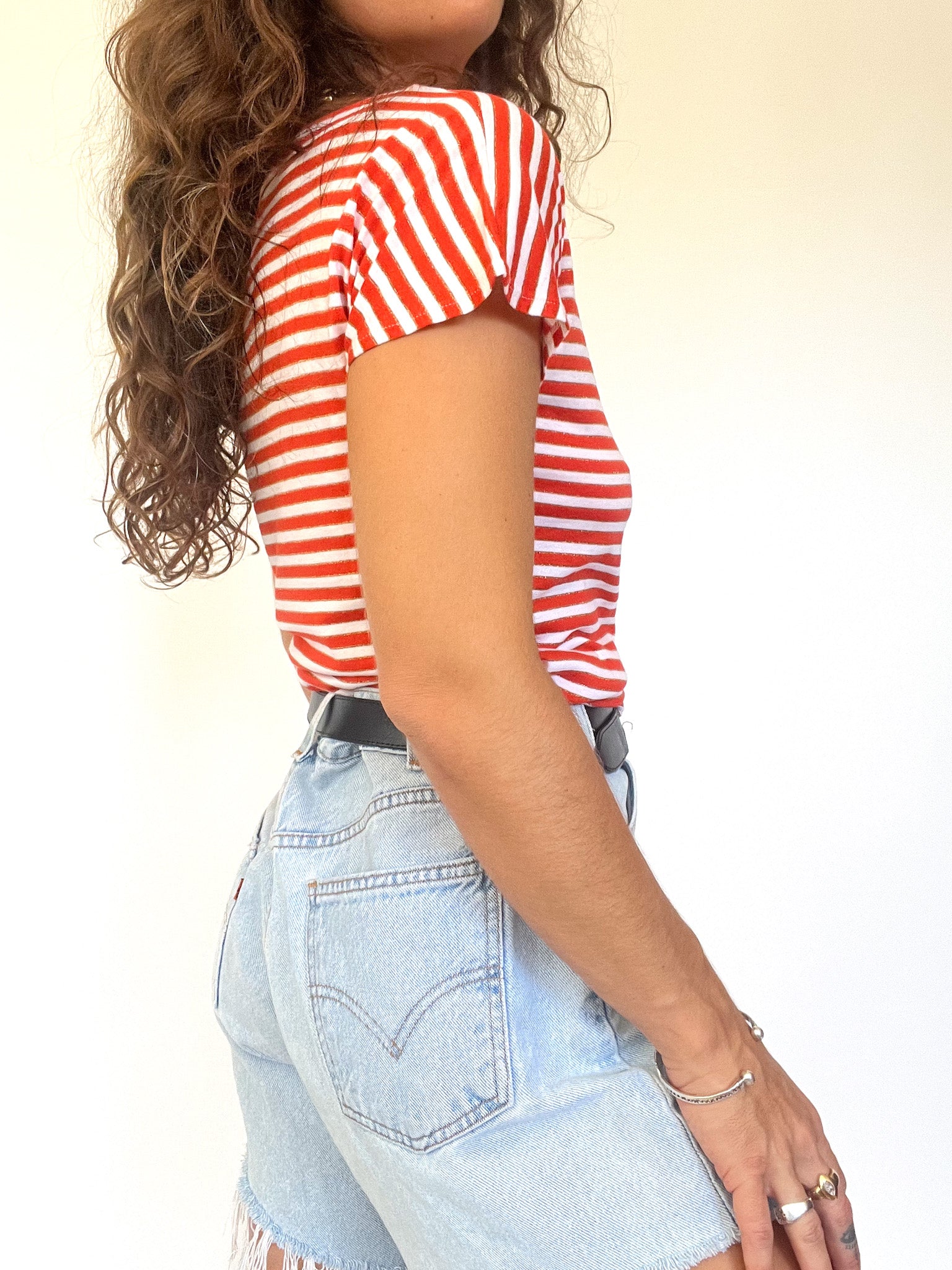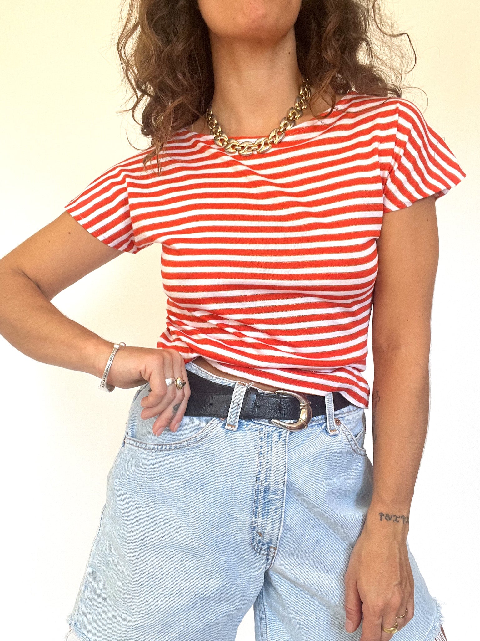 Vintage 90’s Red & White Striped Fitted T-Shirt