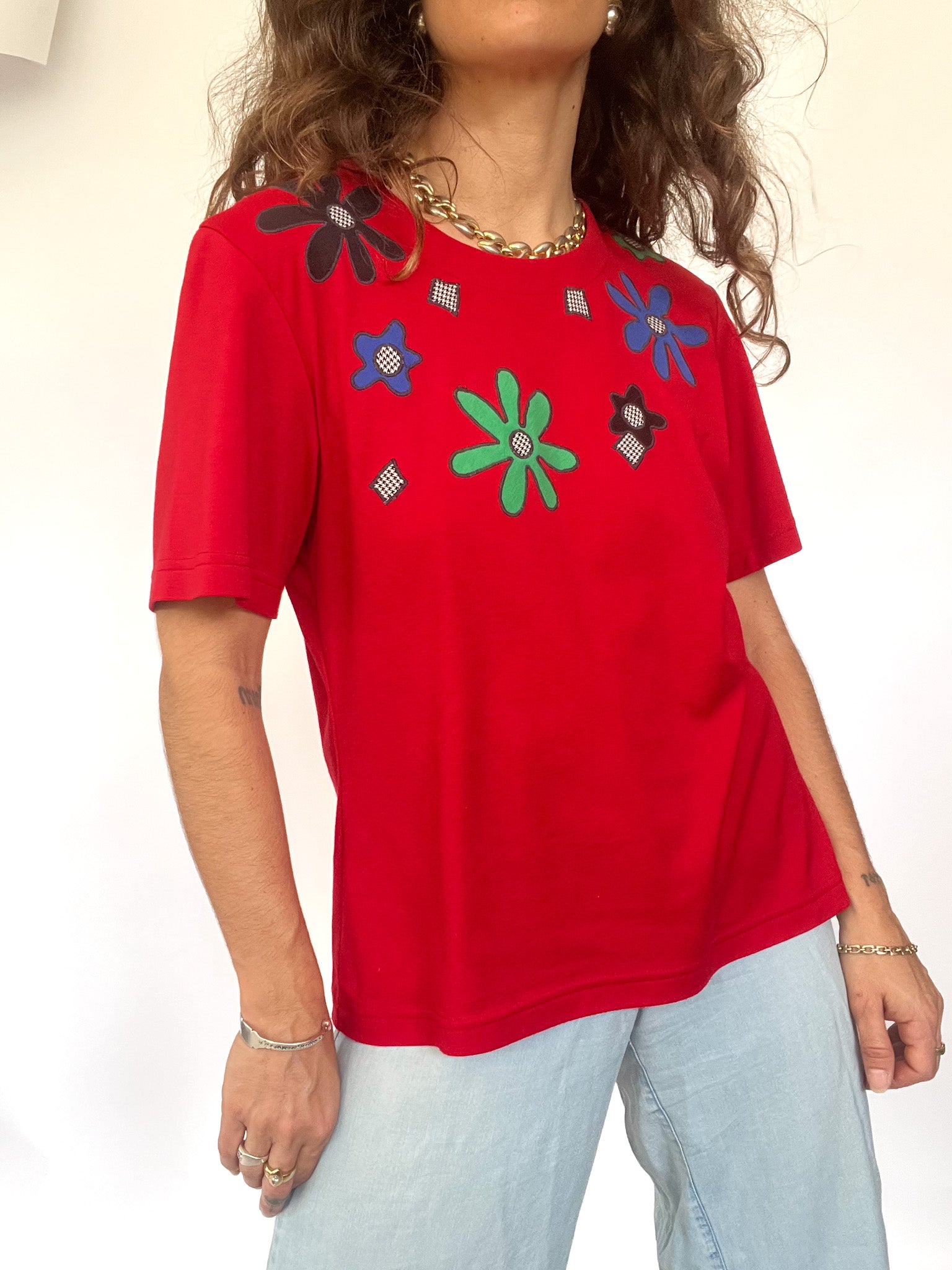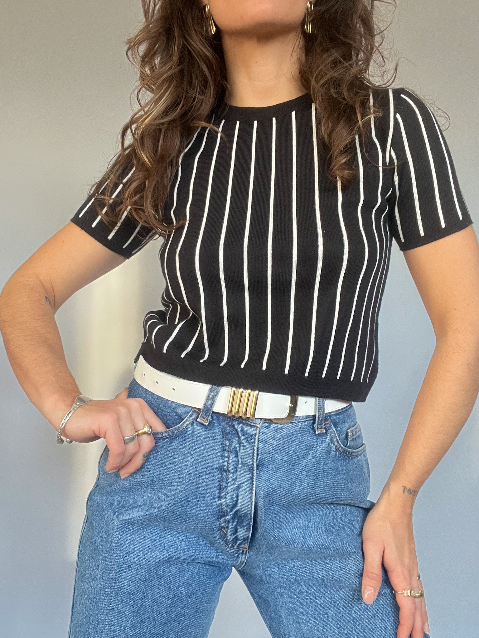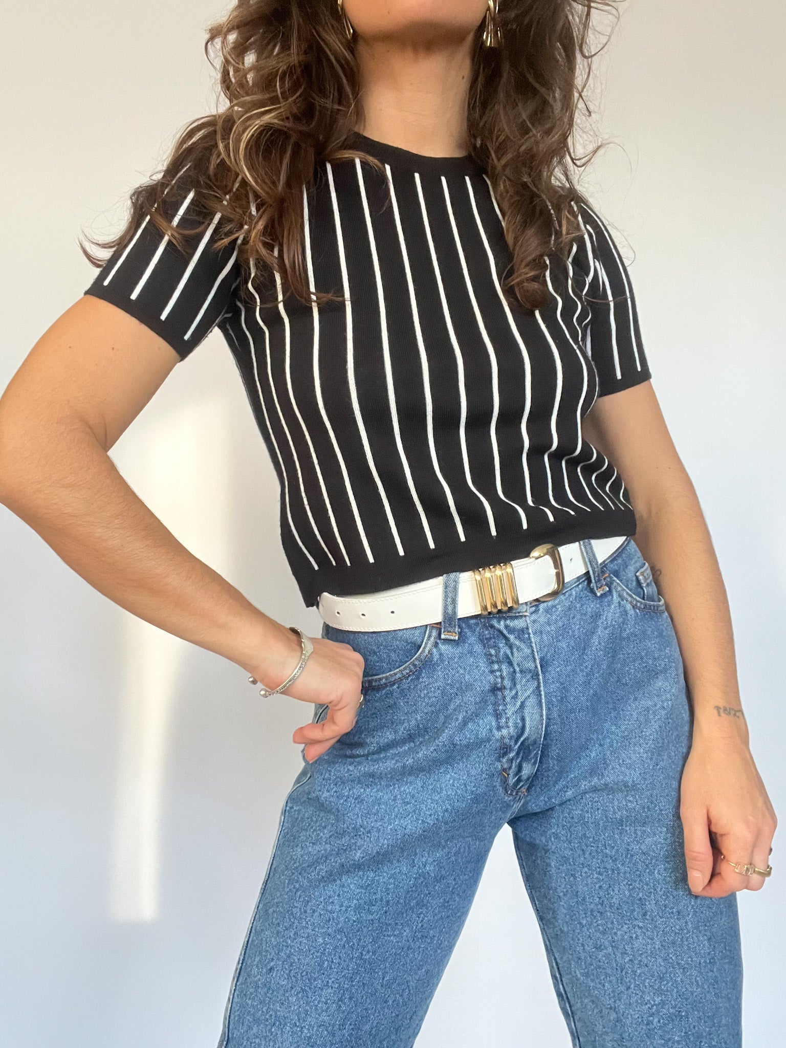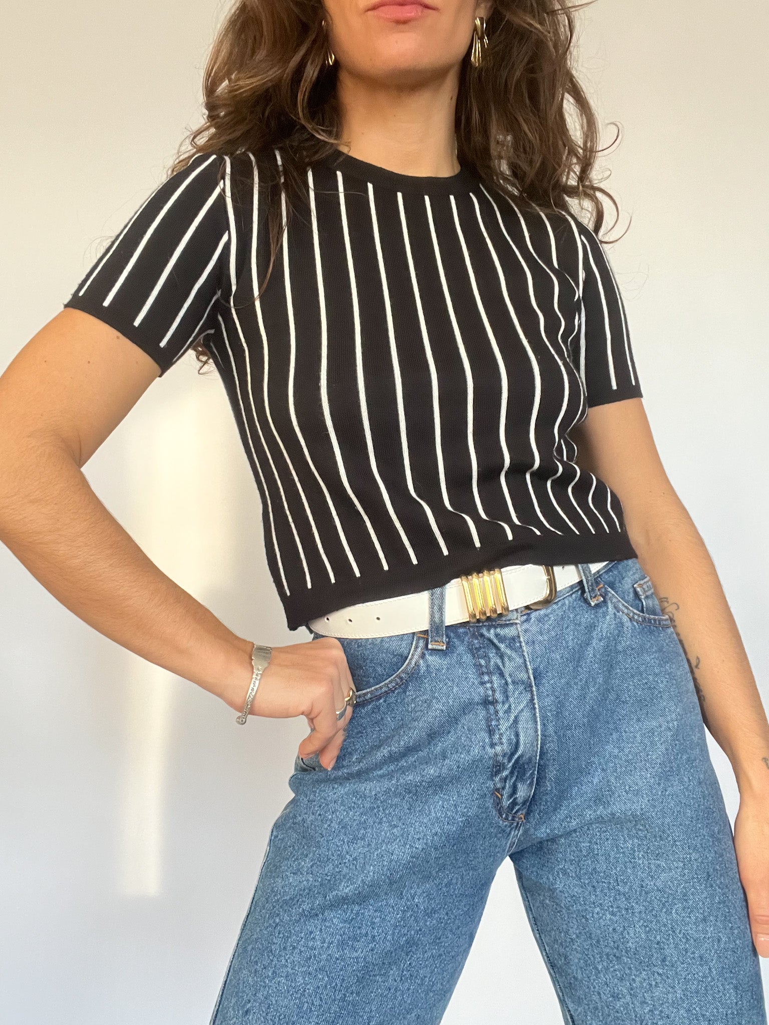 Vintage 90’s Red & White Striped Fitted T-Shirt