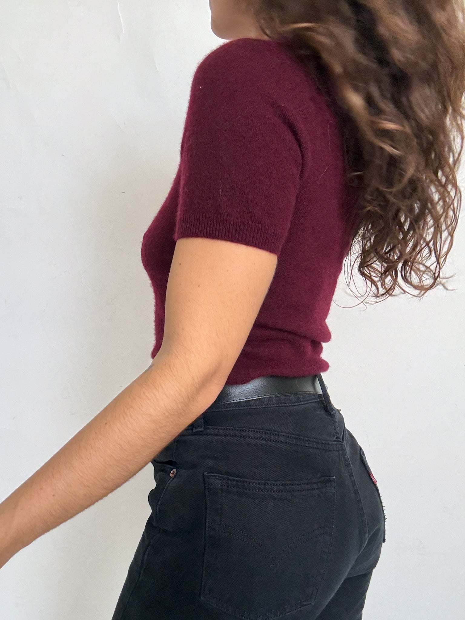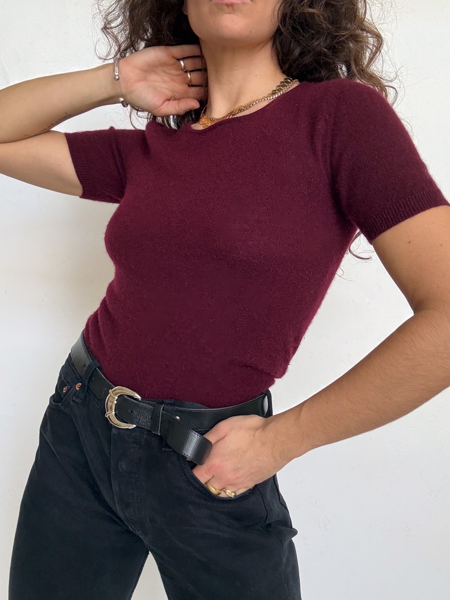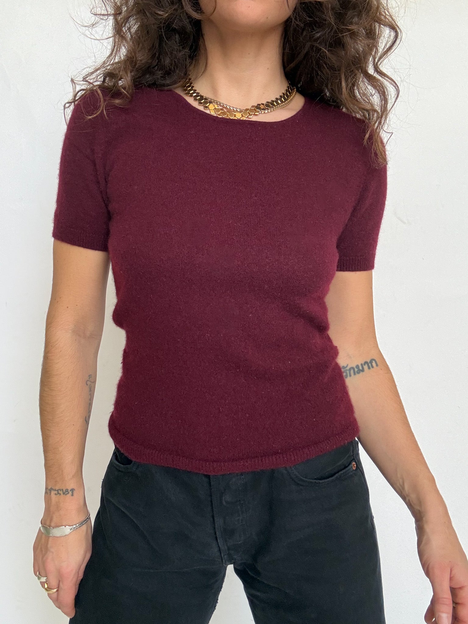 Vintage 90’s Burgundy Cashmere Short Sleeve Knit