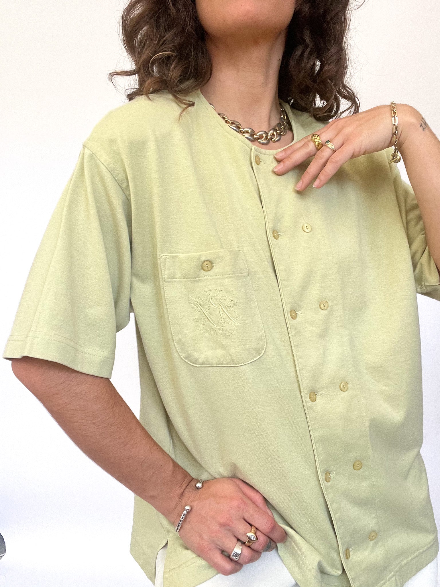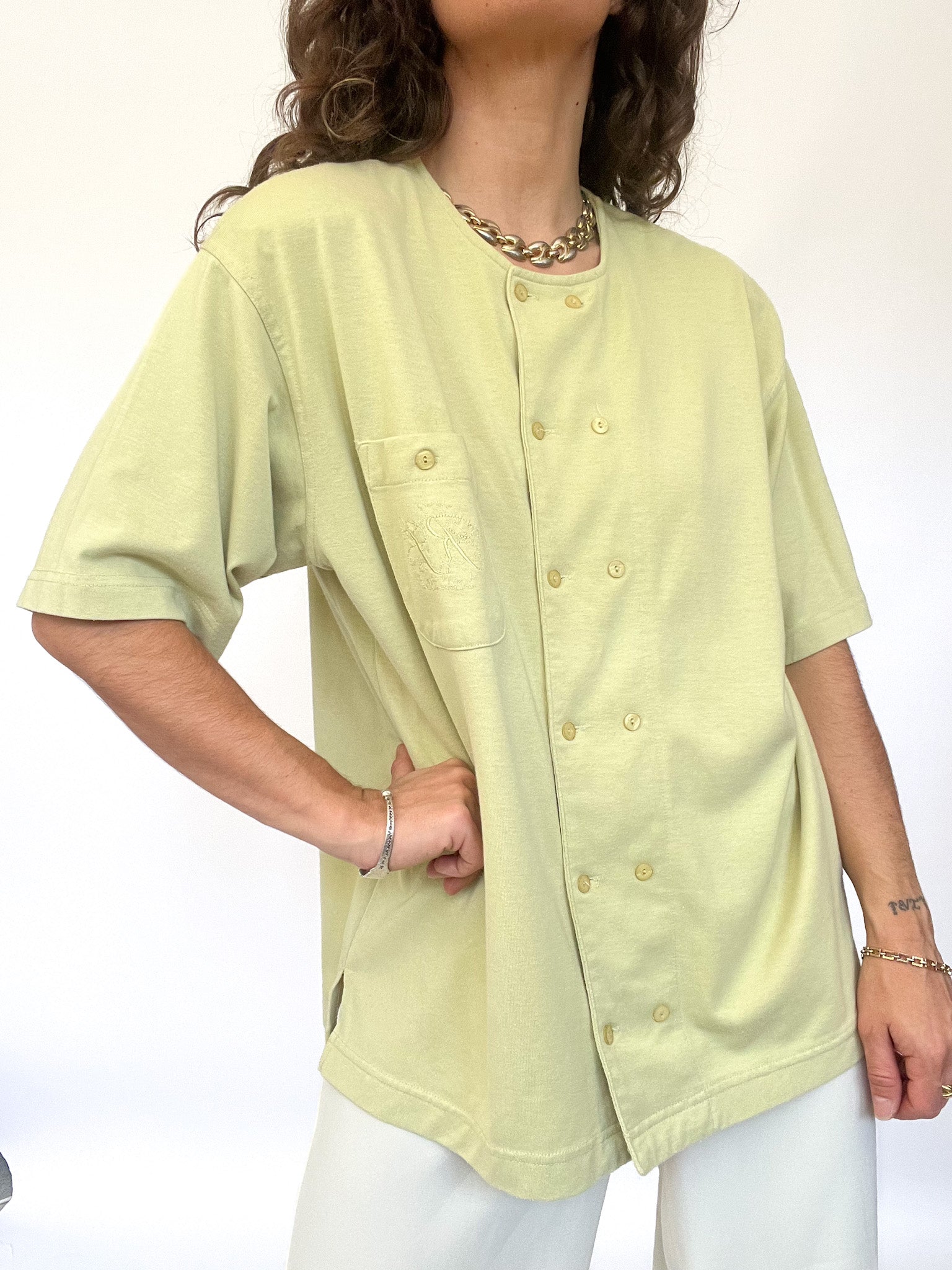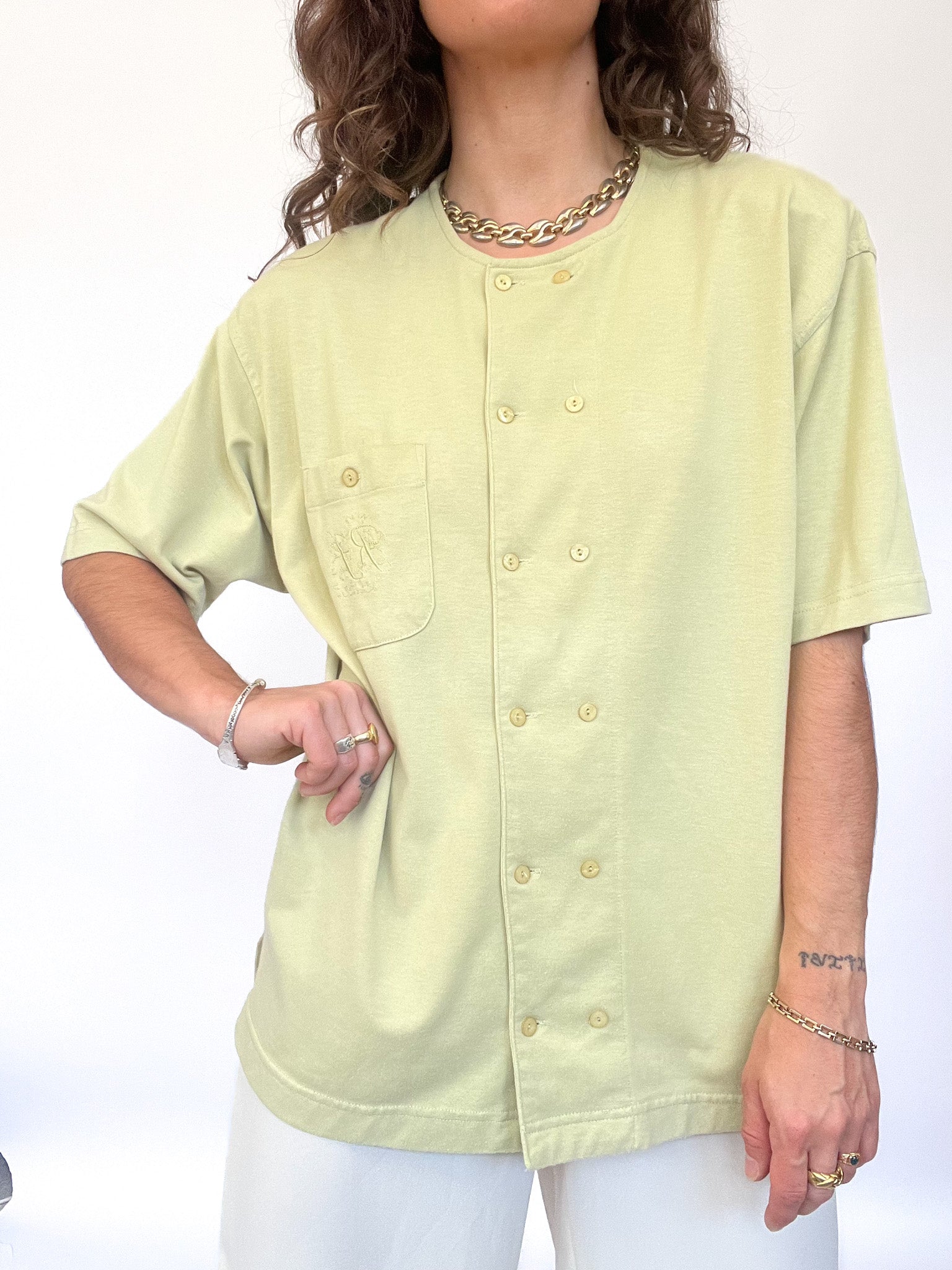 Vintage 90’s Pastel Green Cotton Double-Breasted Tee