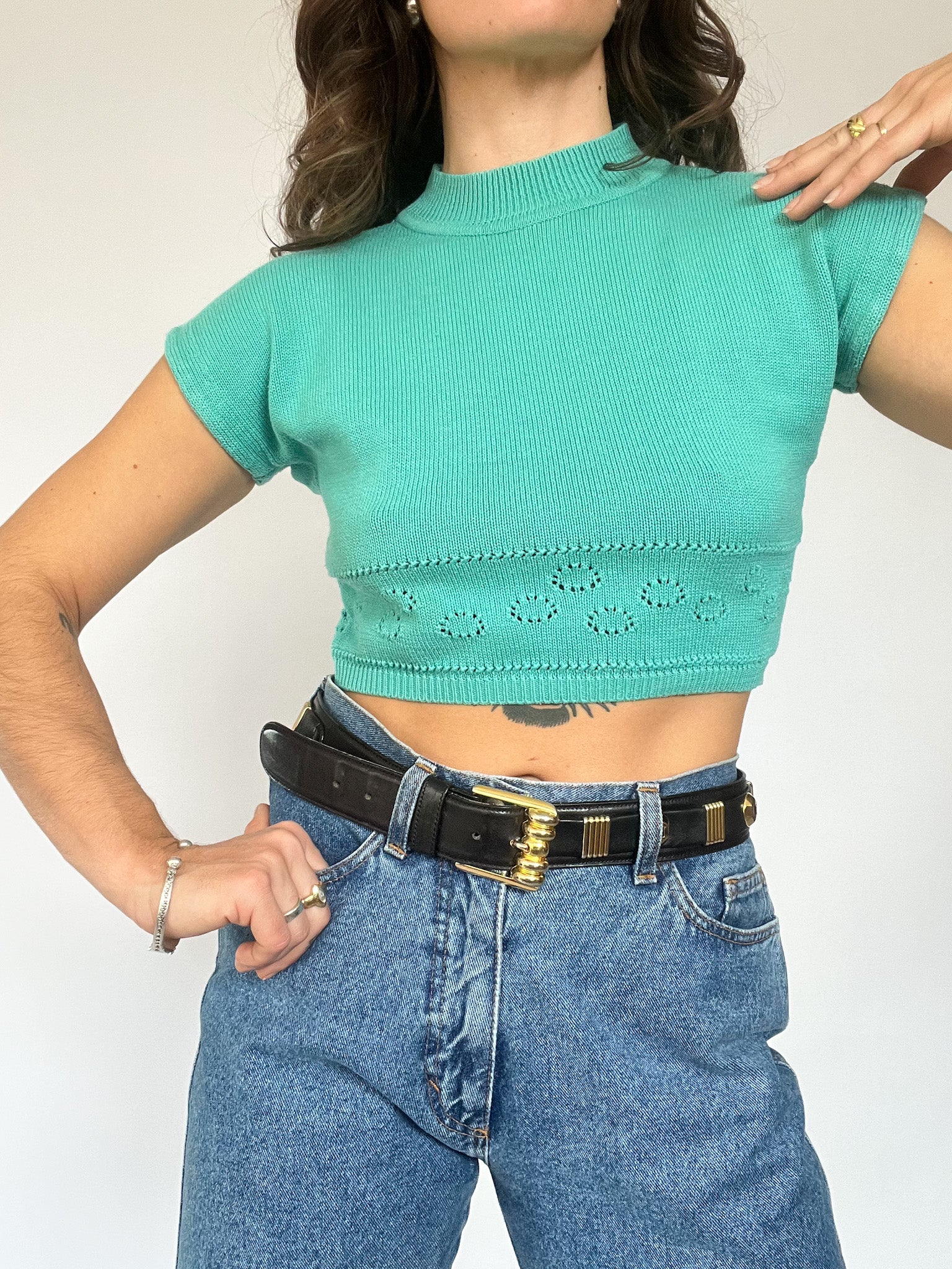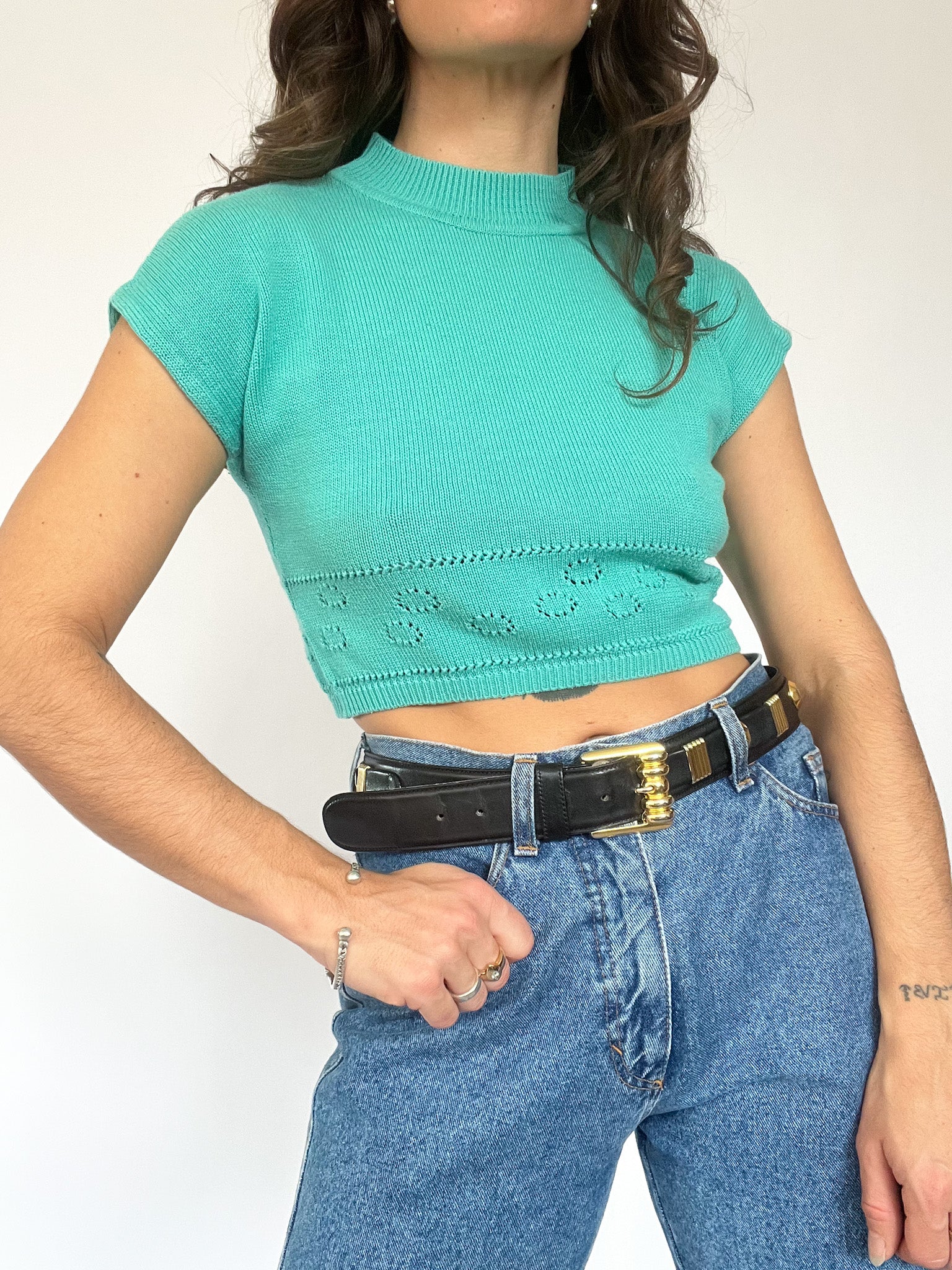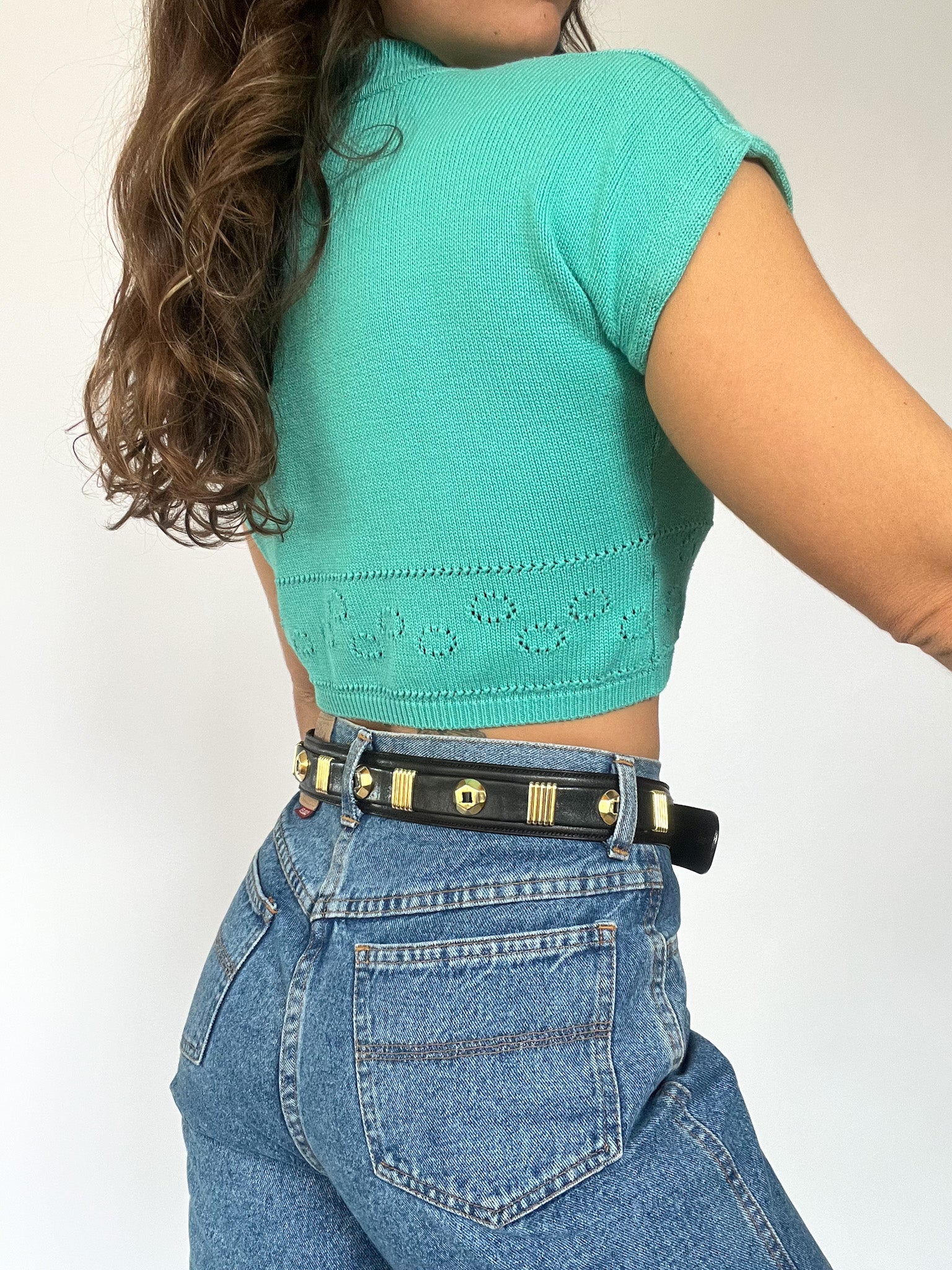 Vintage 90’s Pastel Green Cotton Double-Breasted Tee