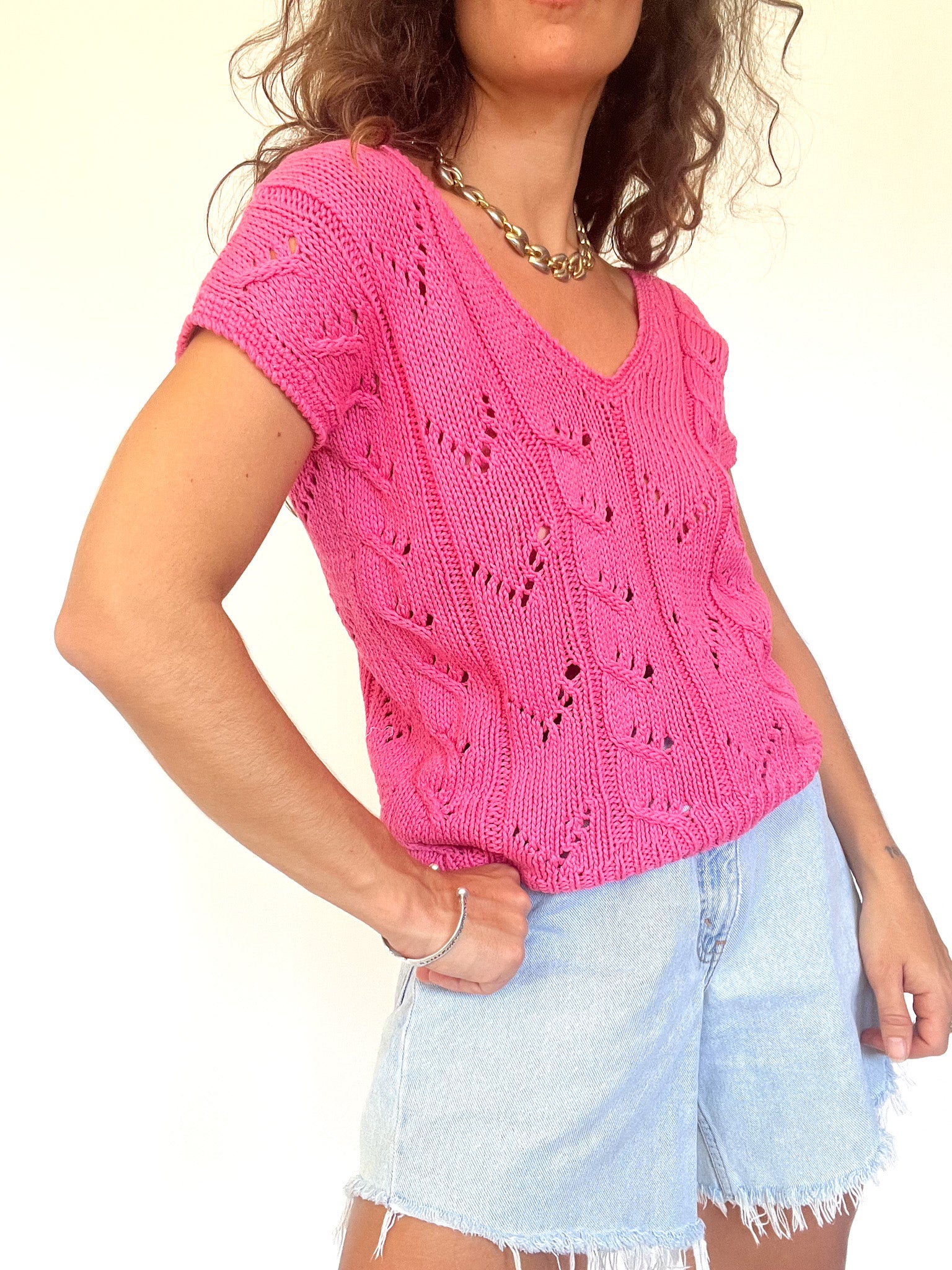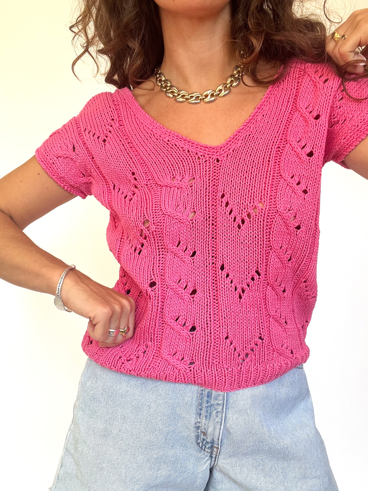 Vintage 80’s Hand-Knitted Hot Pink Openwork Top