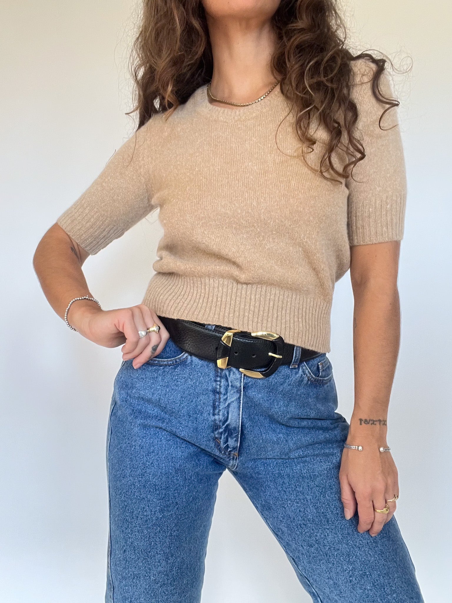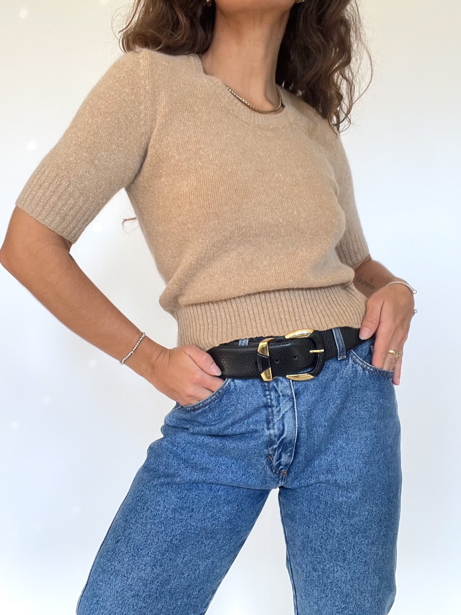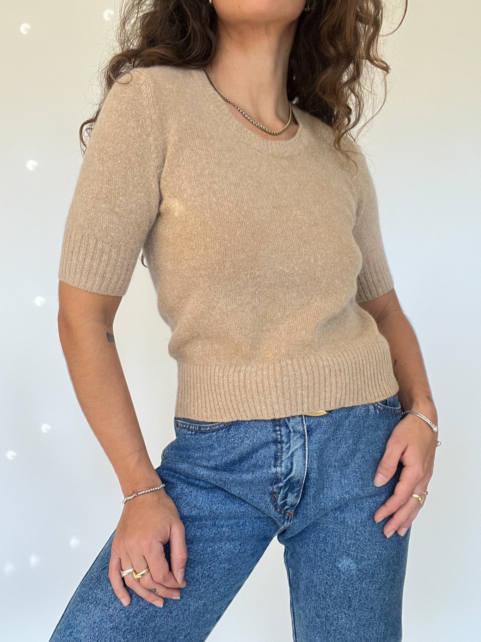 Vintage 90’s Beige Lambswool & Angora Short Sleeve Knit
