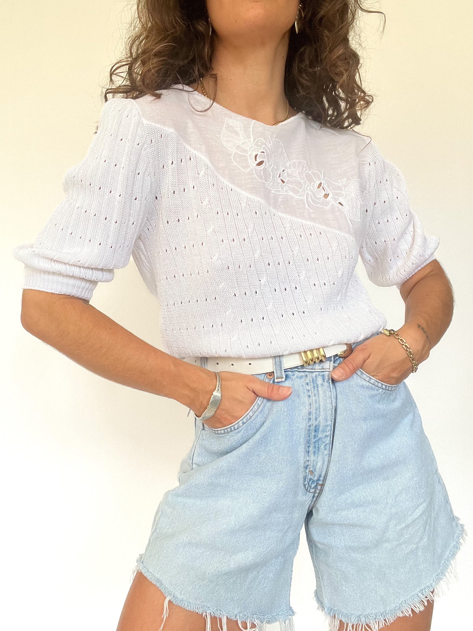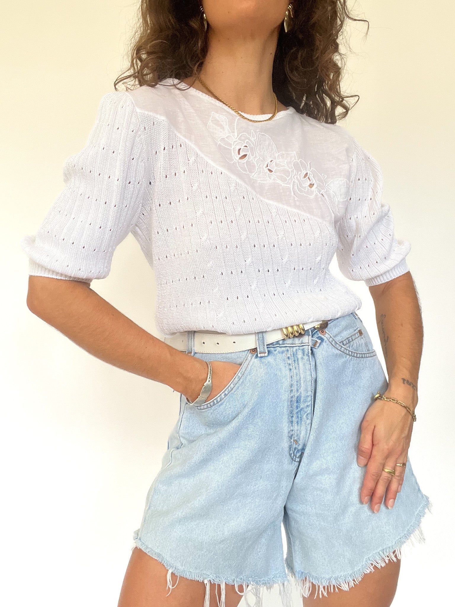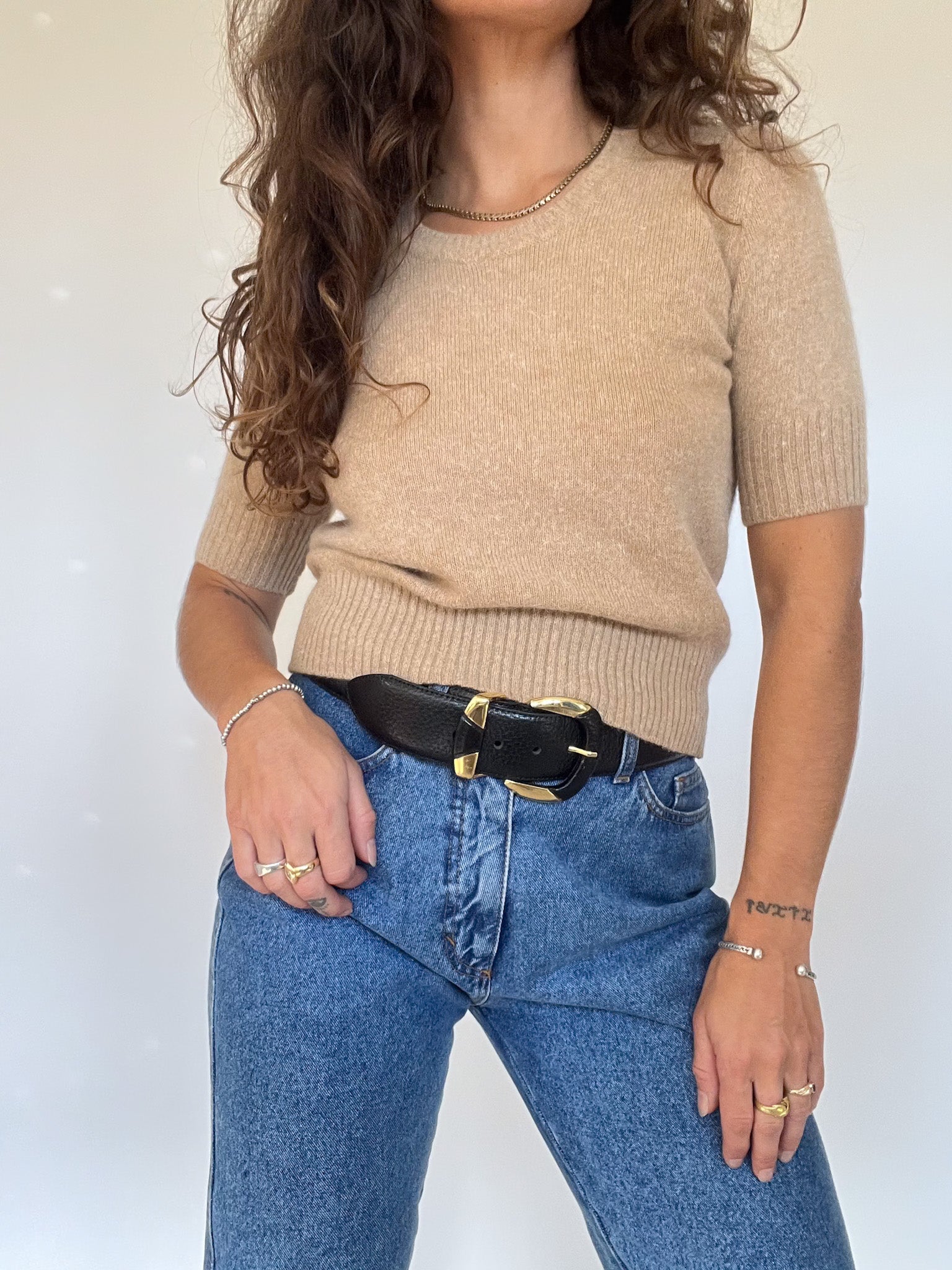 Vintage 90’s Beige Lambswool & Angora Short Sleeve Knit