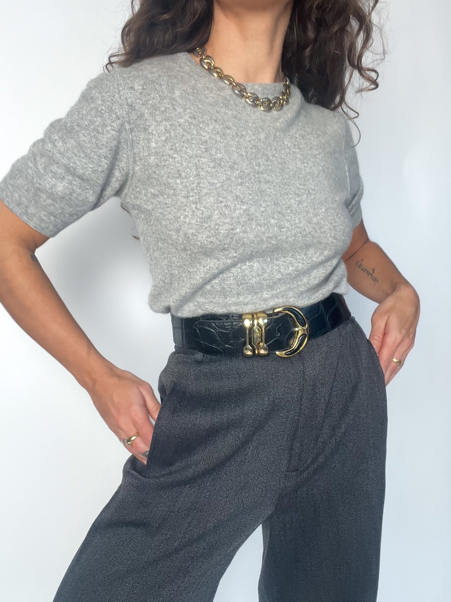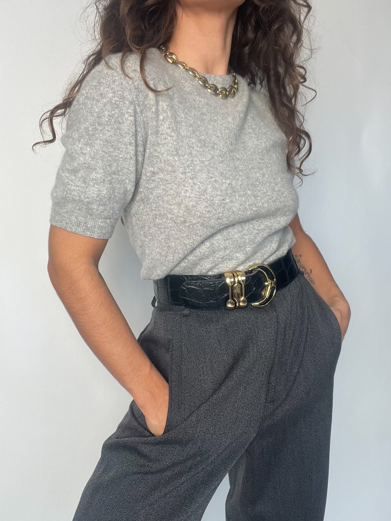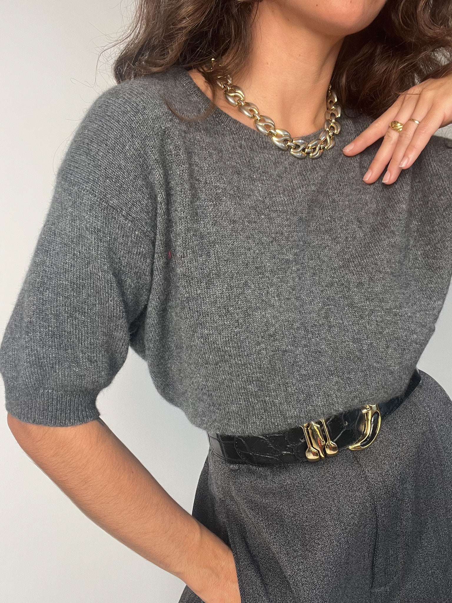 Vintage 90’s Grey Wool & Cashmere Short Sleeve Sweater