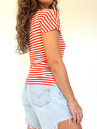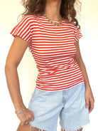 Vintage 90’s Red & White Striped Fitted T-Shirt