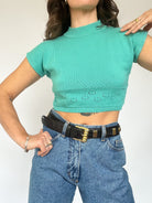 Vintage Cropped Knit Top in Aqua Blue