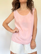 Timeless softness meets vintage minimalism. This blush pink sleeveless top is cut from pure silk, offering a refined drape and delicate sheen that flatters the skin with a subtle glow. Simple yet elevated, it slips into your summer rotation with grace — tucked into tailored shorts or floating loose over linen pants. A piece chosen for women who embrace a quiet confidence, and who know that less often means more.