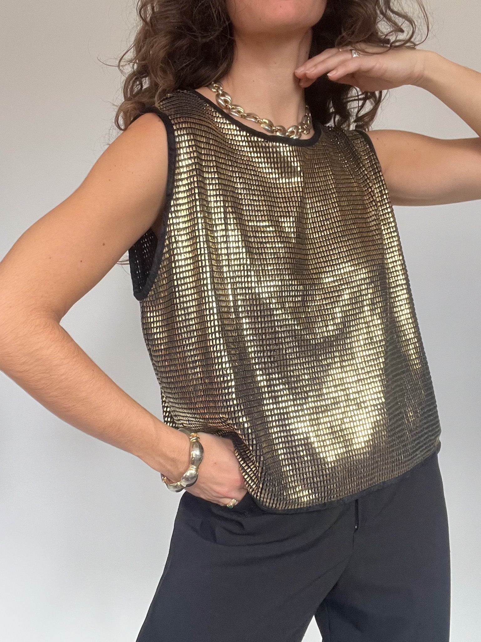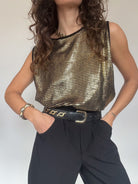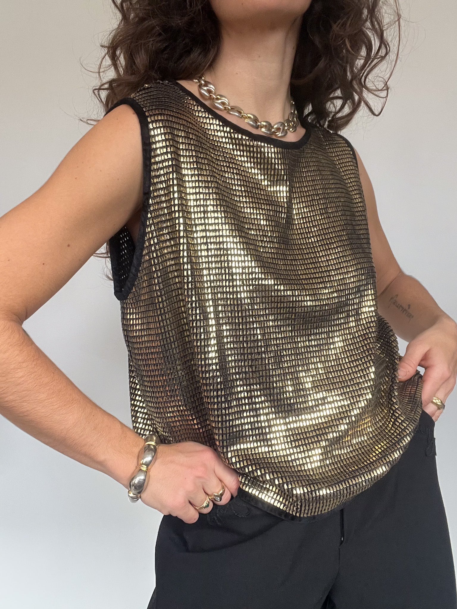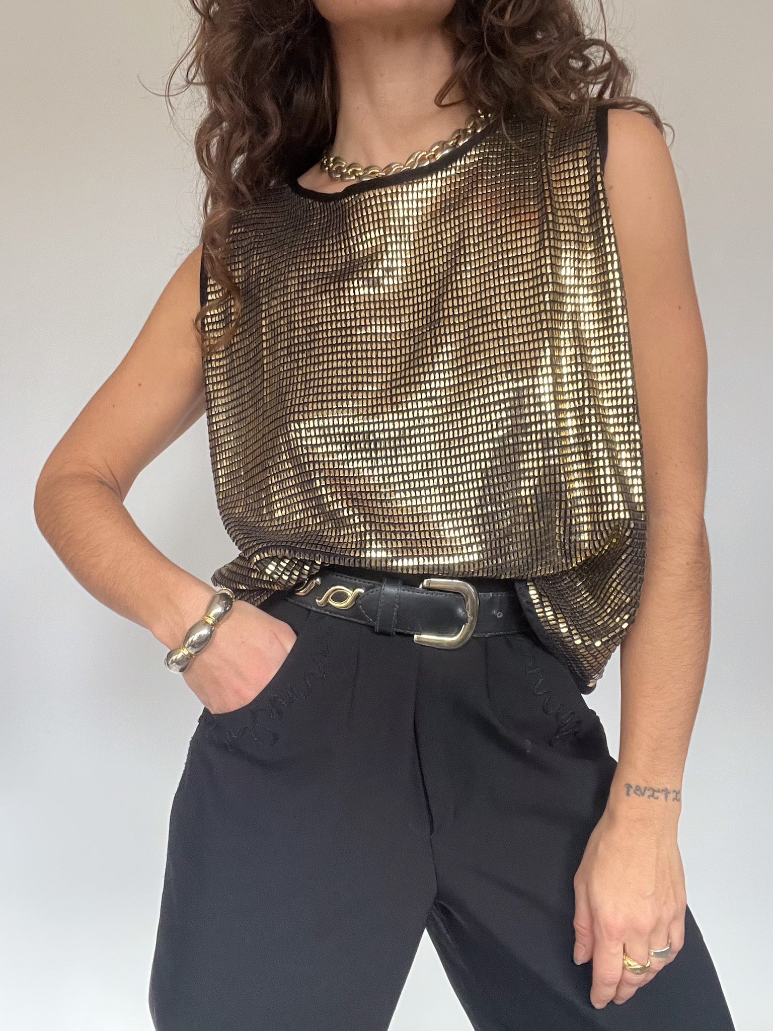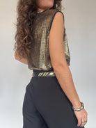A breathtaking 90’s statement camisole, selected for its extraordinary structure and its hypnotic gold pattern that feels almost sculptural. The fit is impeccable, shaping the bust beautifully while elongating the silhouette with its longline cut and perfectly placed seams. This is one of those rare vintage treasures that embody the full Skorpiones Vintage spirit: bold, artistic, fiercely feminine and undeniably iconic. Every detail — from the intricate abstract pattern to the delicate straps — makes it a wearable work of art, the kind of piece that transforms an outfit instantly.