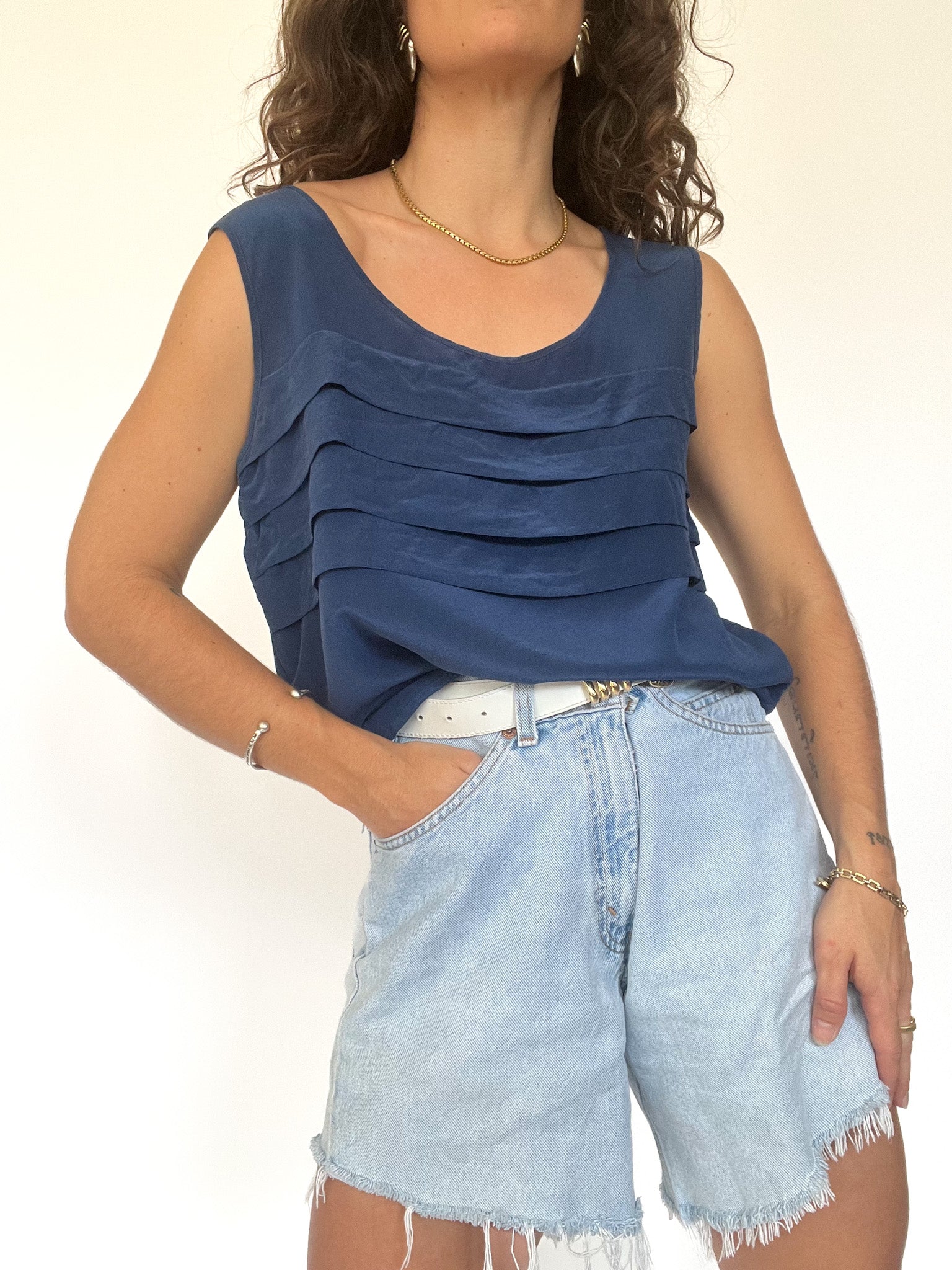Vintage 90’s Navy Silk Pleated Tank Top