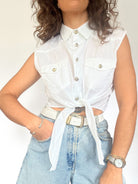 Clean lines, crisp cotton, and golden buttons with engraved detail — this cropped shirt is all about subtle structure and statement minimalism. The front tie allows you to shape the waist to your mood. It’s the kind of piece you throw on without thinking and still look undeniably sharp — especially styled with denim or layered with bold accessories.