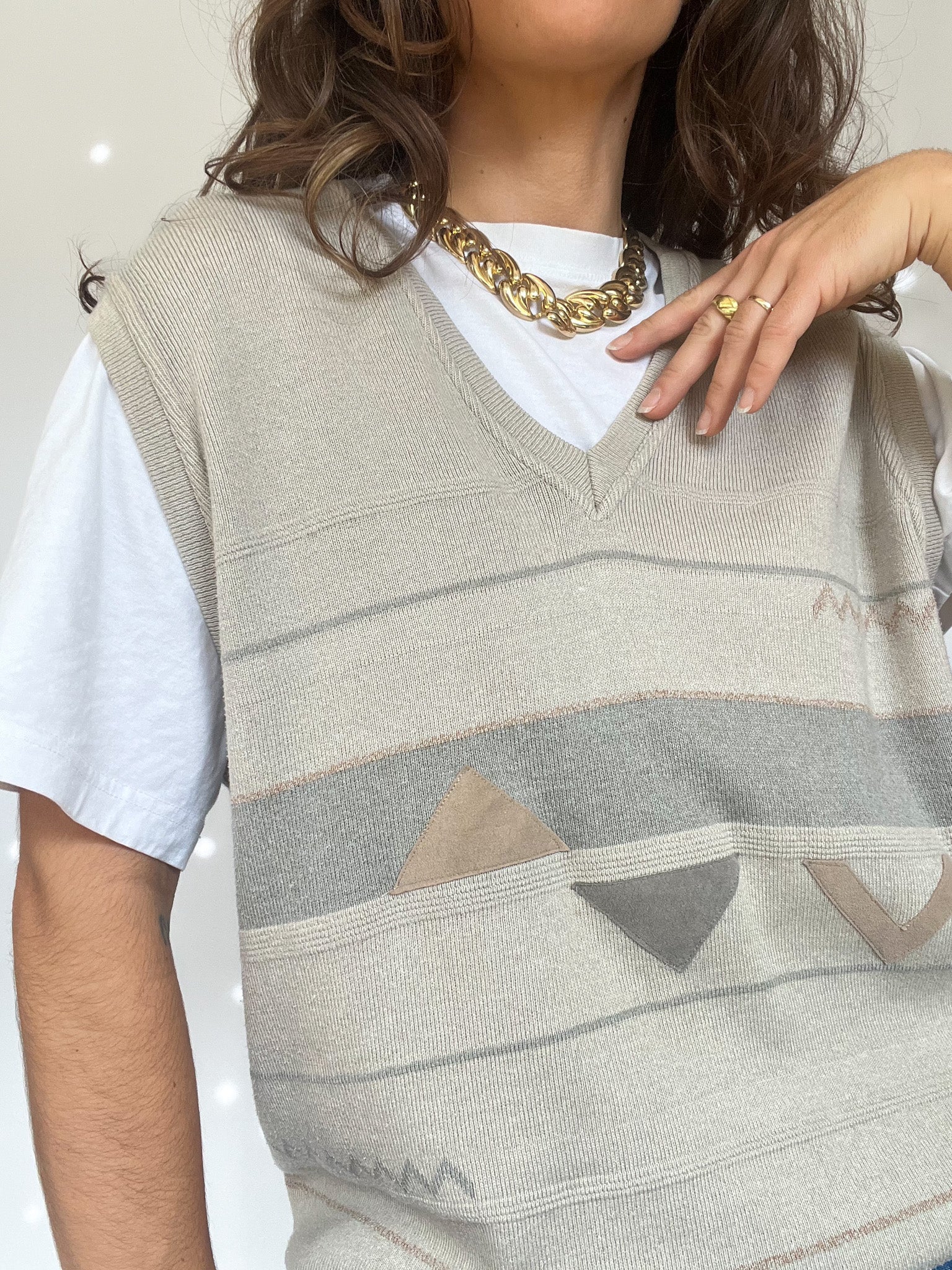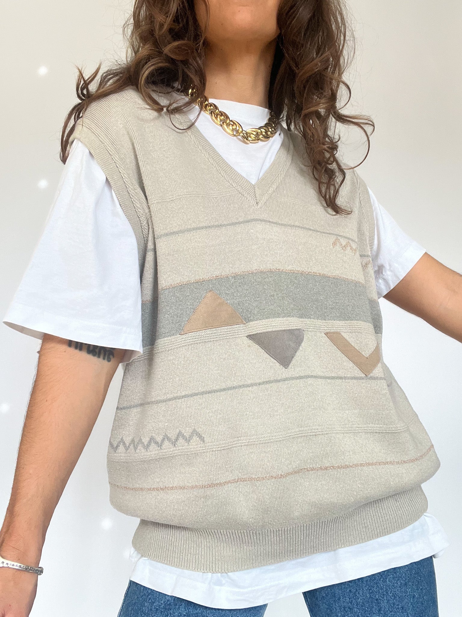 Vintage Beige Patterned Knit Vest