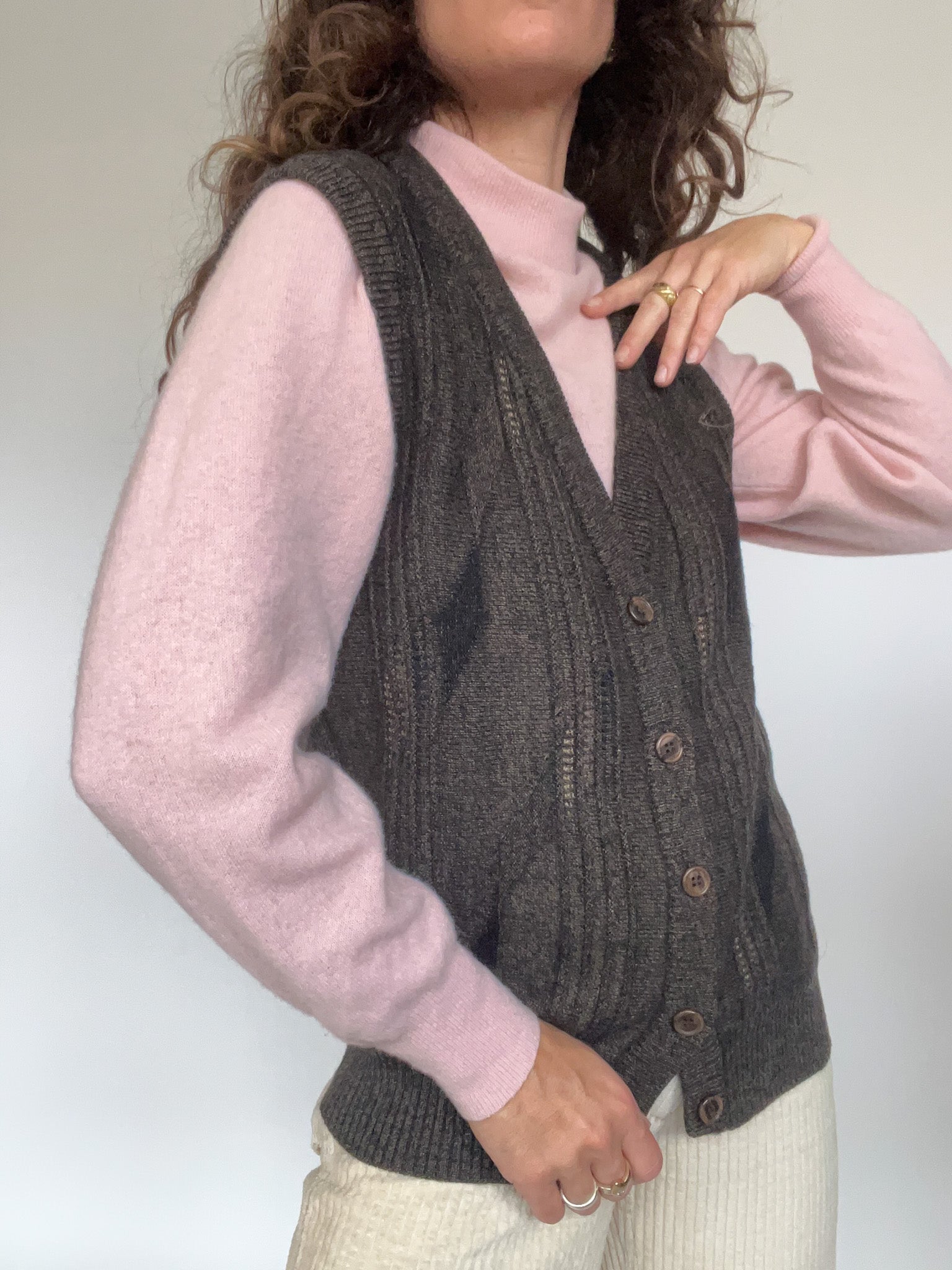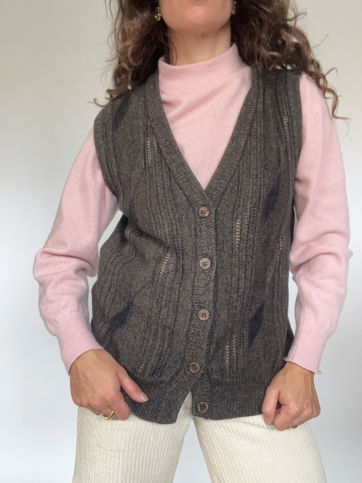 Vintage 80’s Grey Cable Knit Wool Vest