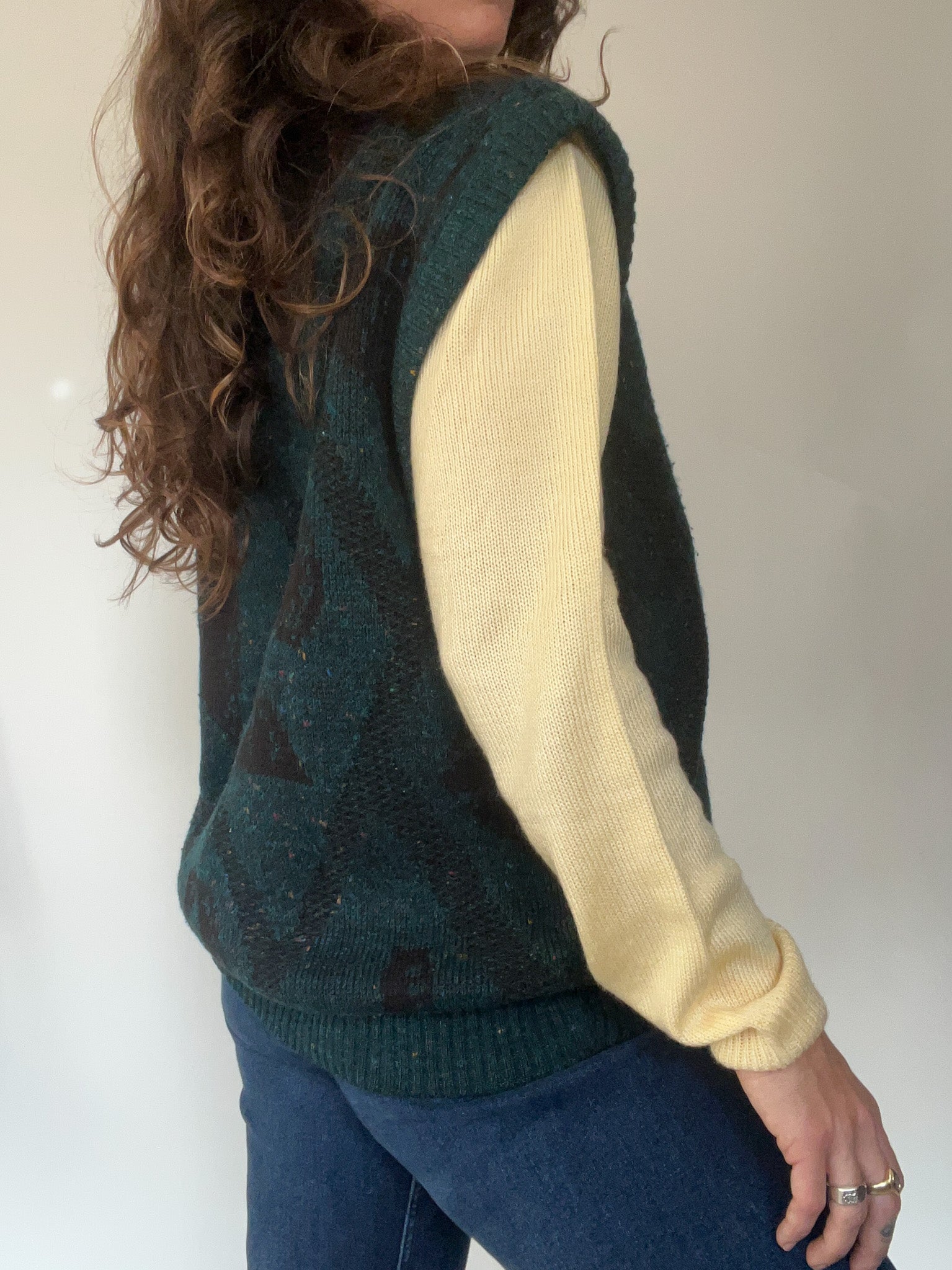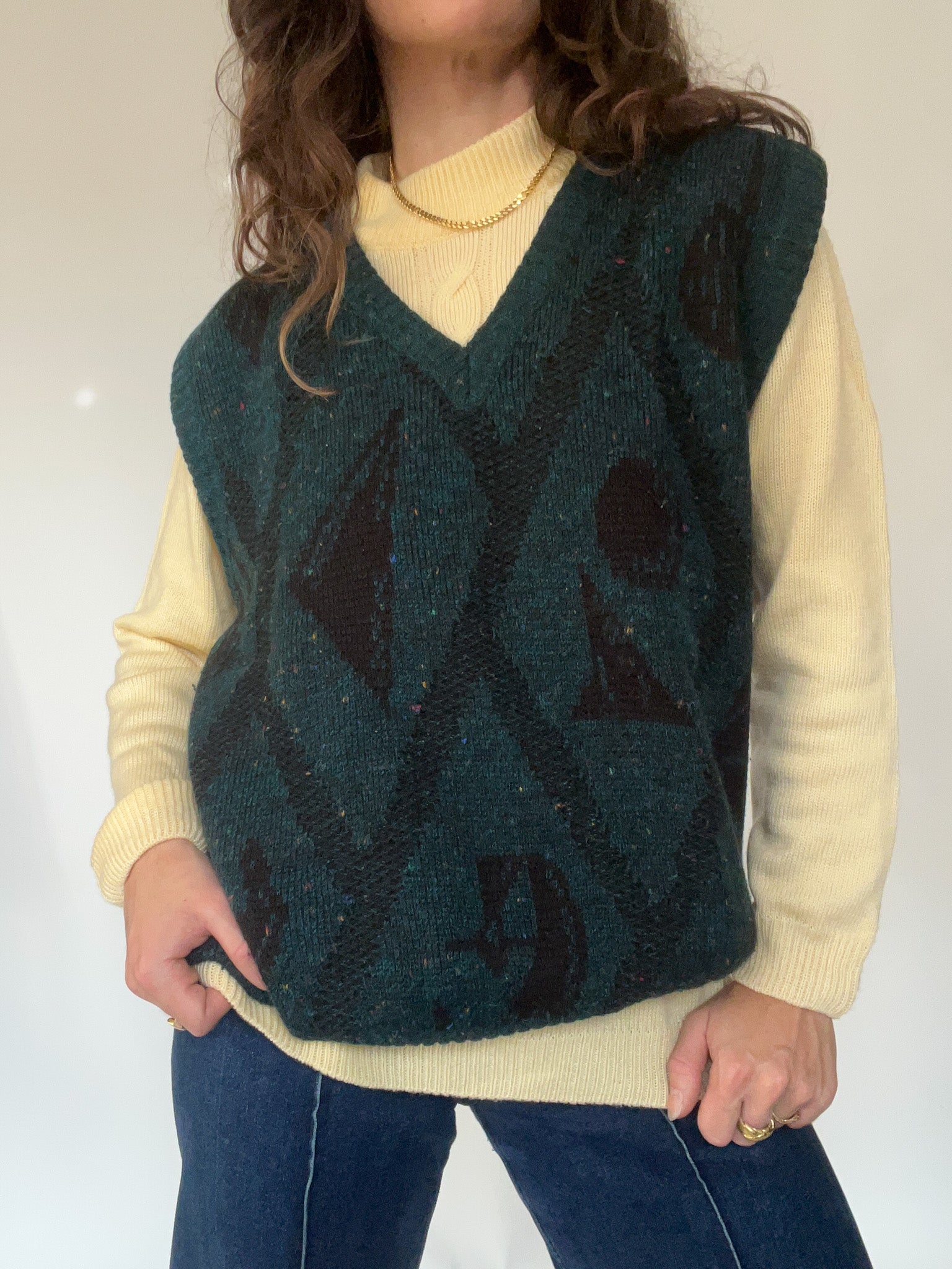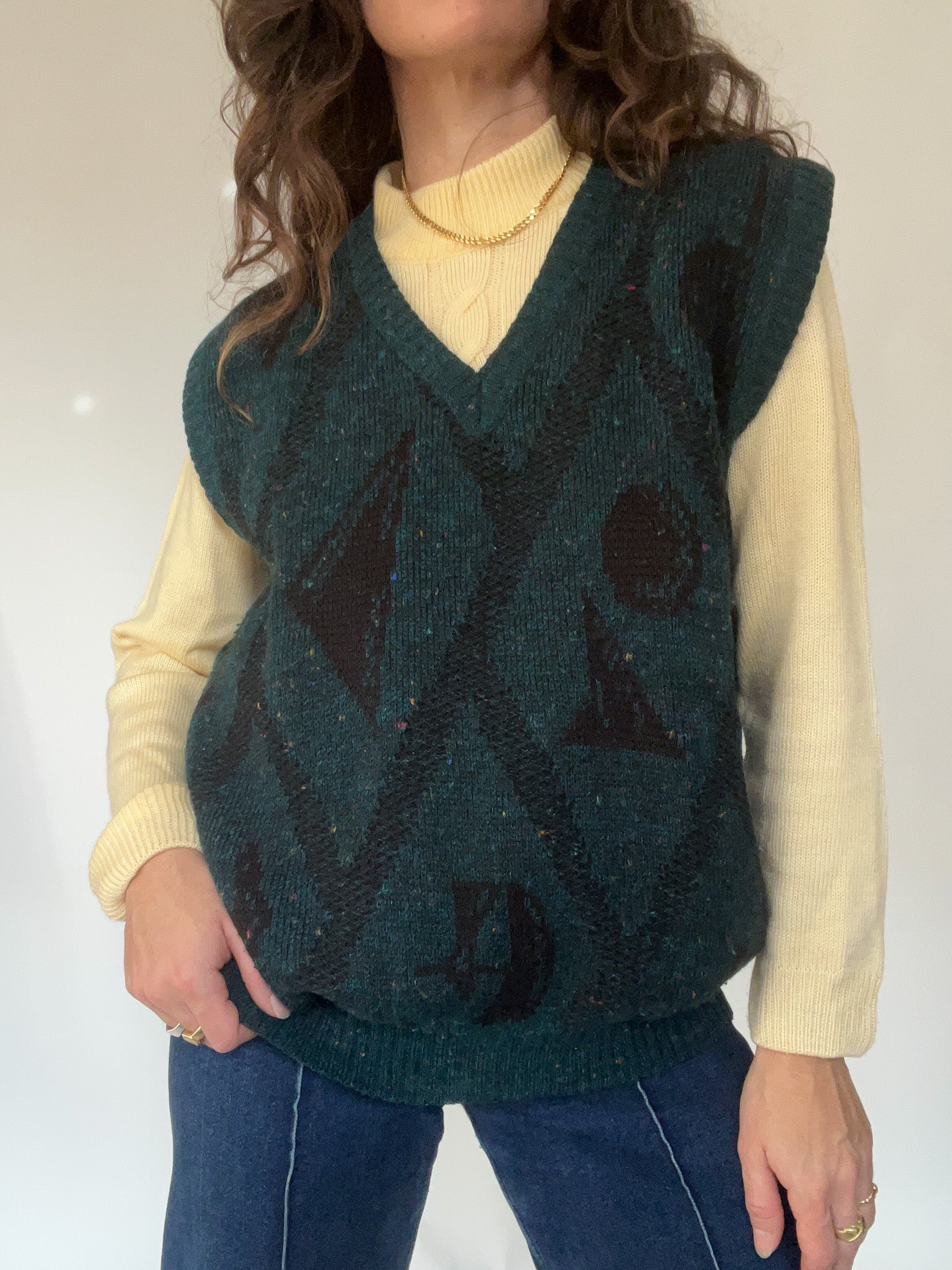 Vintage 90’s Geometric Forest Green Wool Blend Sweater Vest