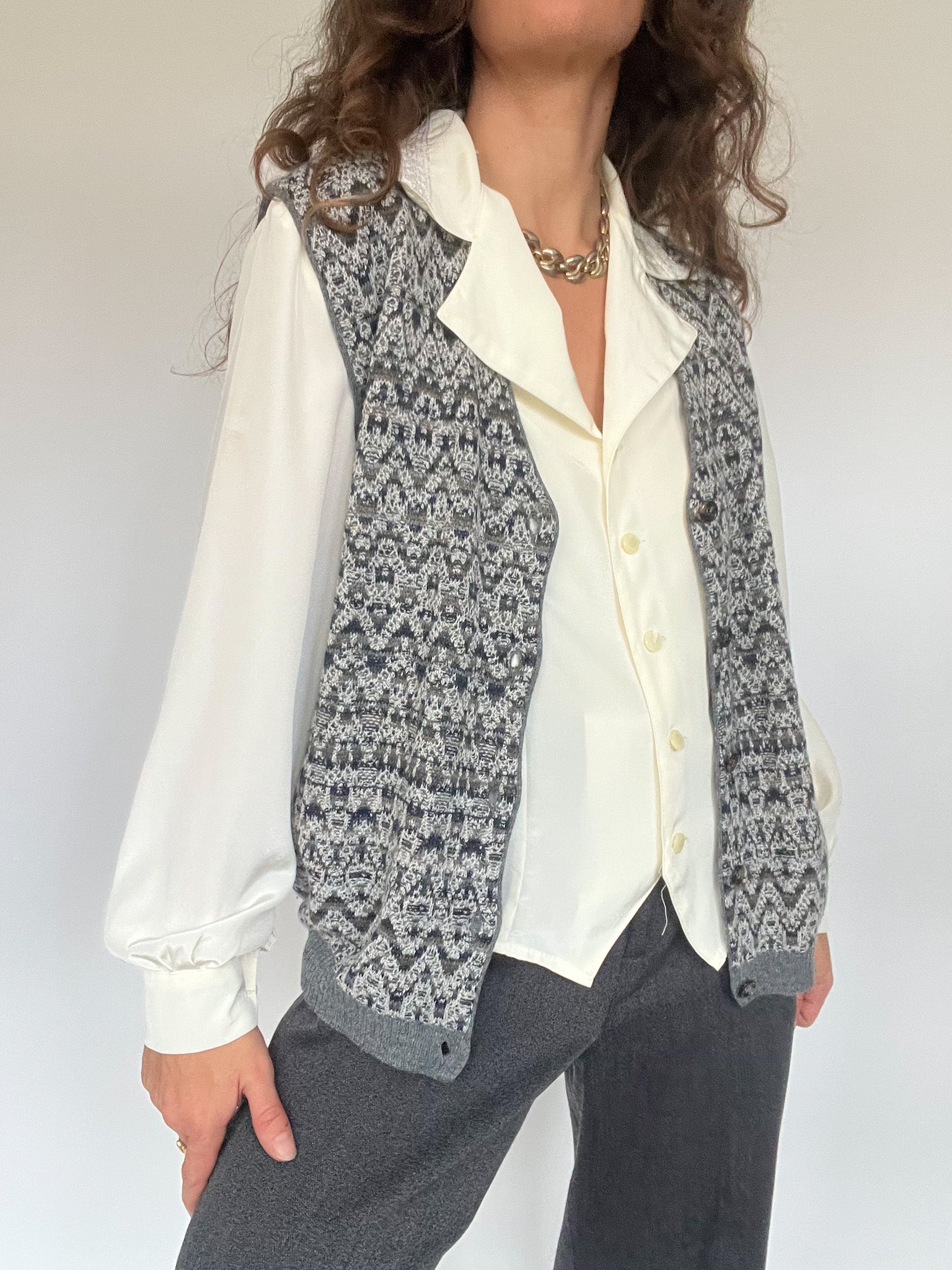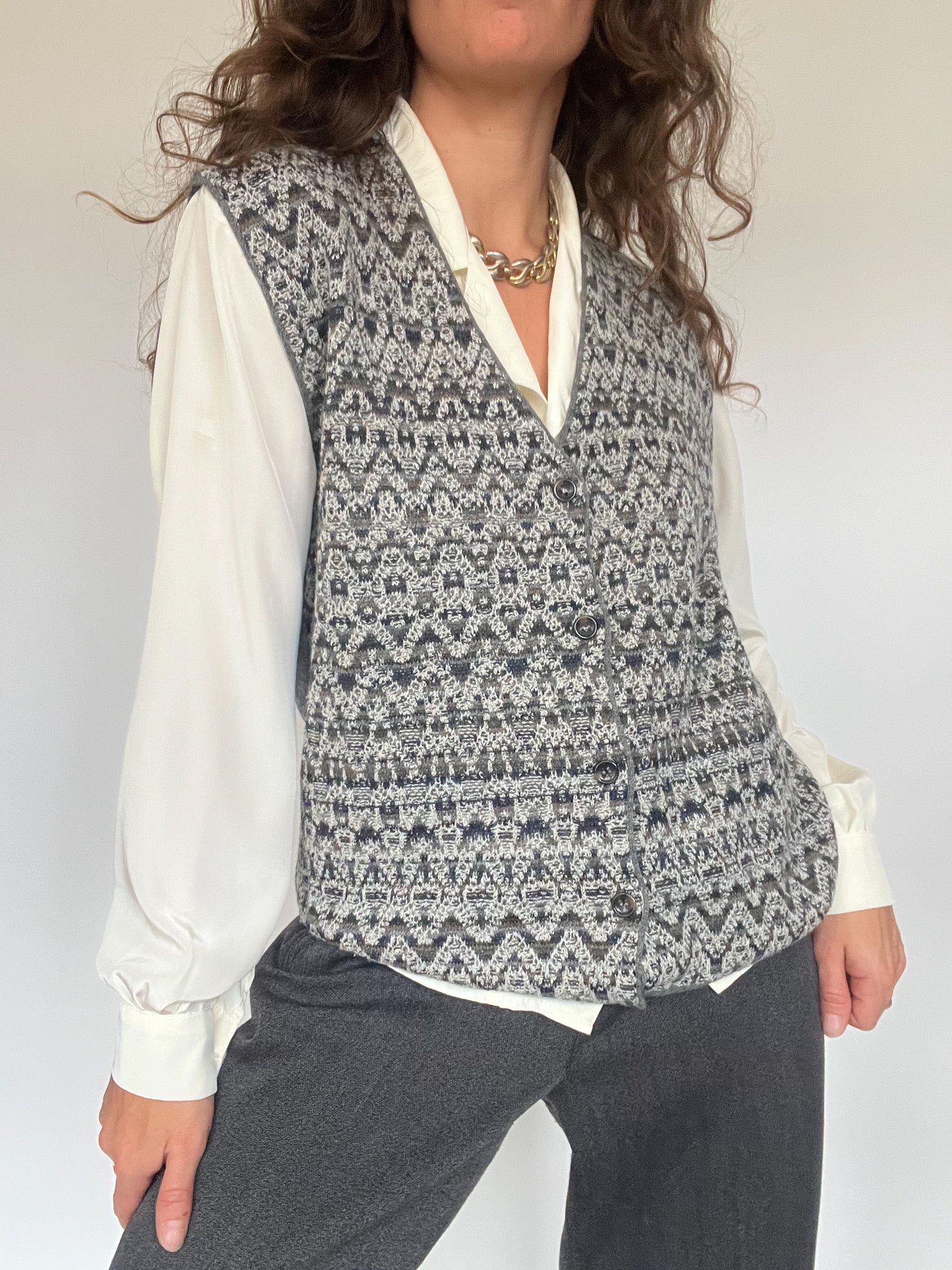 Vintage 80’s Grey Fair Isle Wool Knit Vest