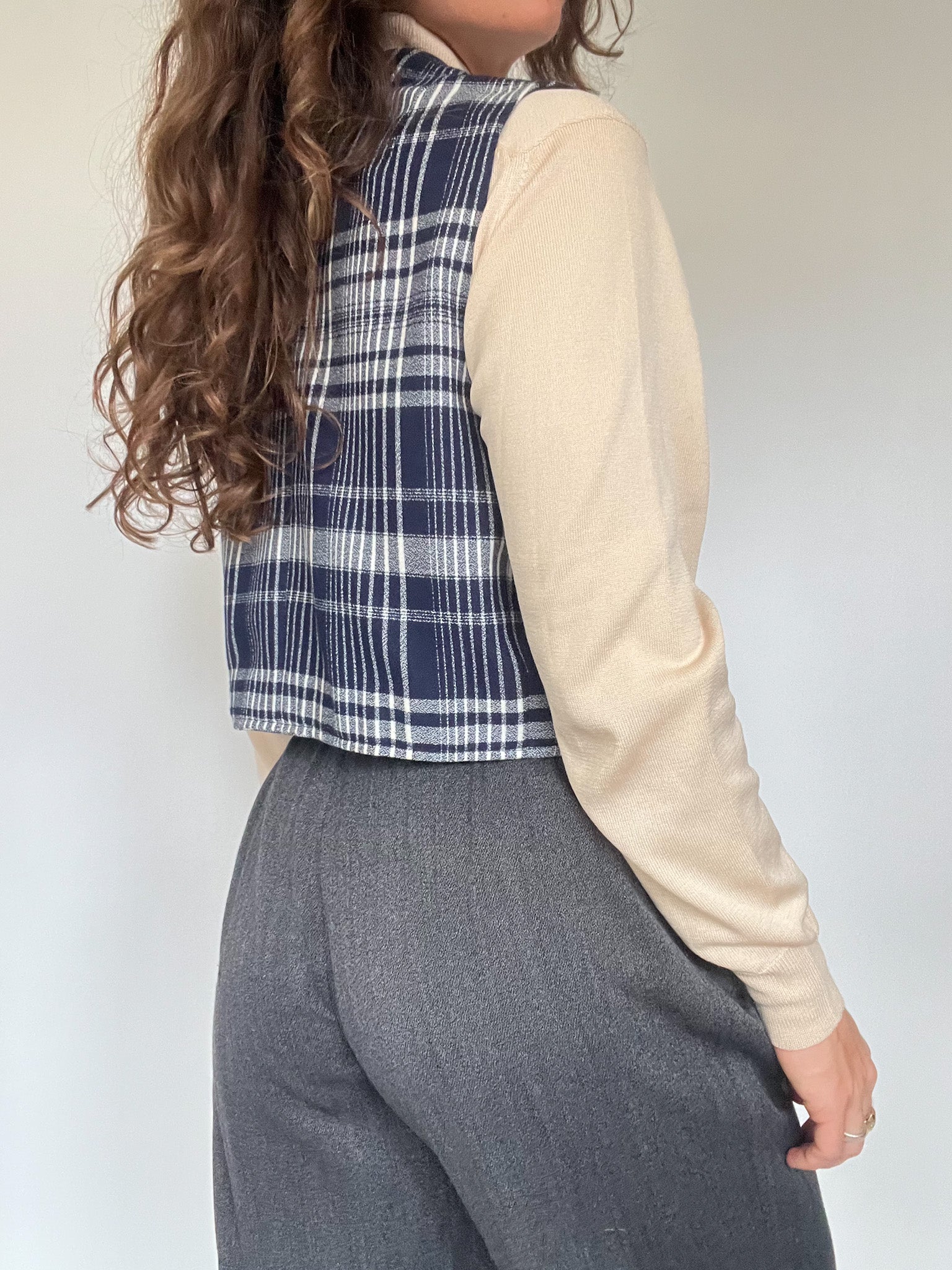 Vintage 80’s Navy & White Checkered Cropped Vest