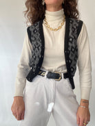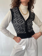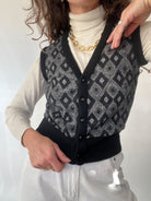 Vintage 80’s Black & Grey Diamond Knit Vest