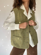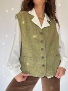 Vintage 80’s Light Olive Wool Tweed Vest