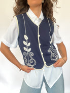Vintage 90’s Navy Embroidered Buttoned Vest