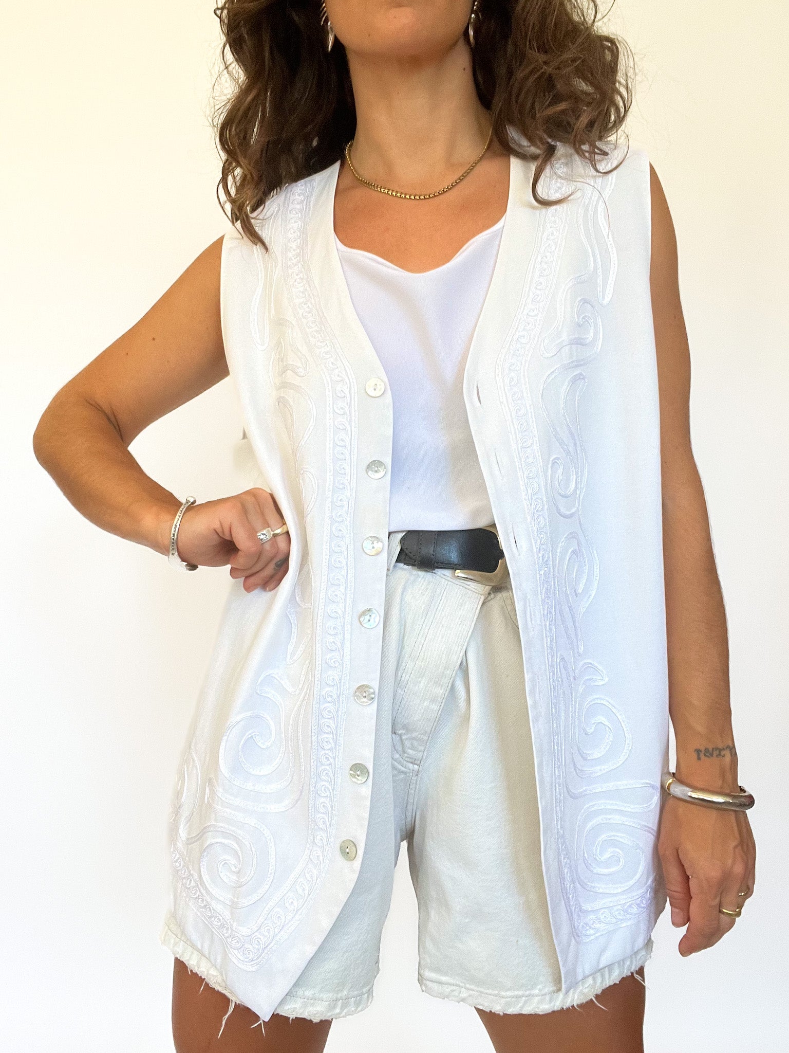 Vintage 90’s White Embroidered Sleeveless Shirt