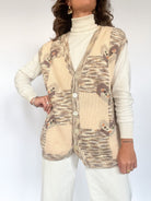 Add a touch of warmth and personality to your wardrobe with this vintage knit vest made in Italy. Featuring an earthy-toned pattern with nature-inspired detailing, this piece is perfect for layering over turtlenecks or blouses. Its soft texture and relaxed fit make it both stylish and comfortable, a versatile addition to your collection.