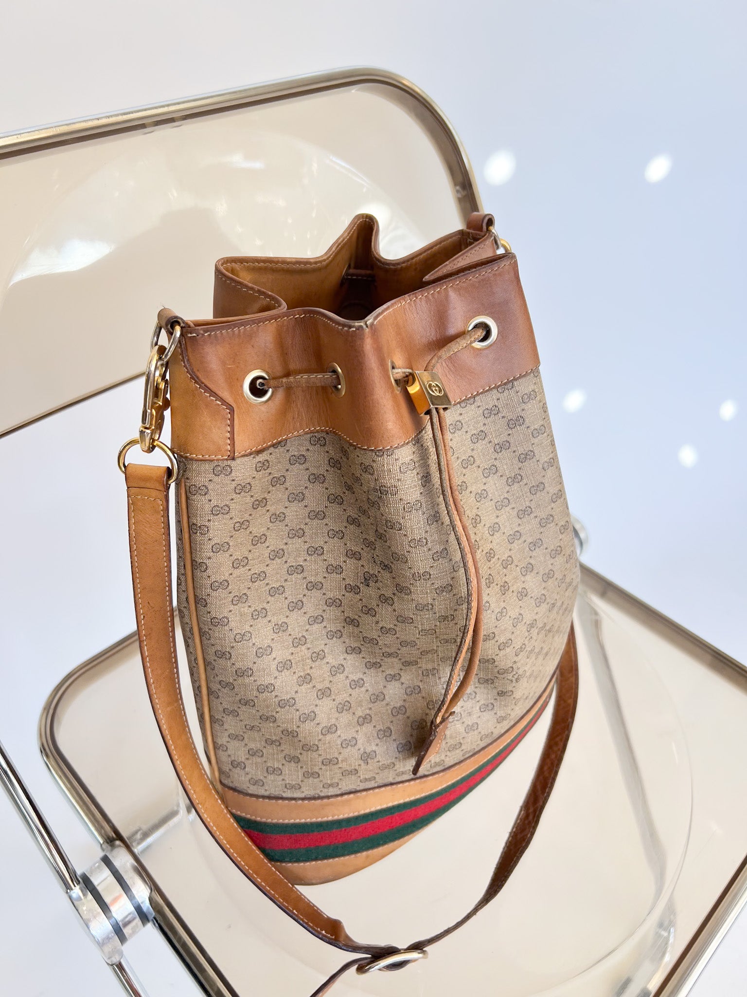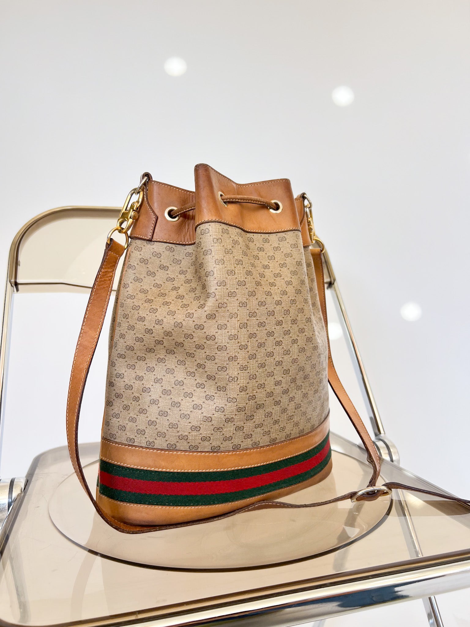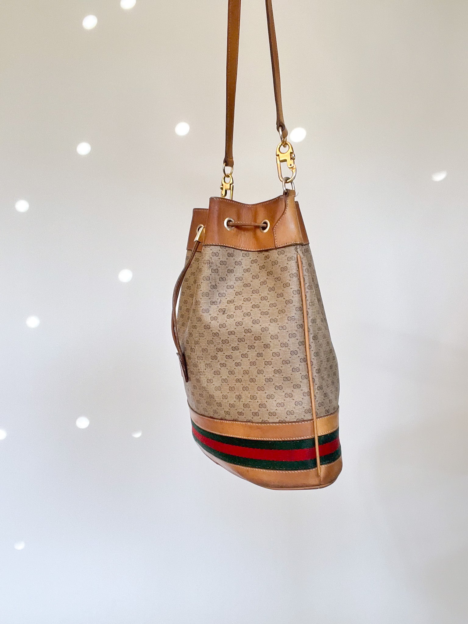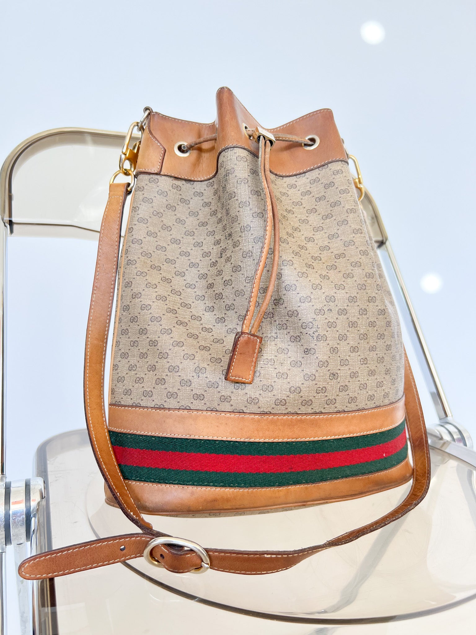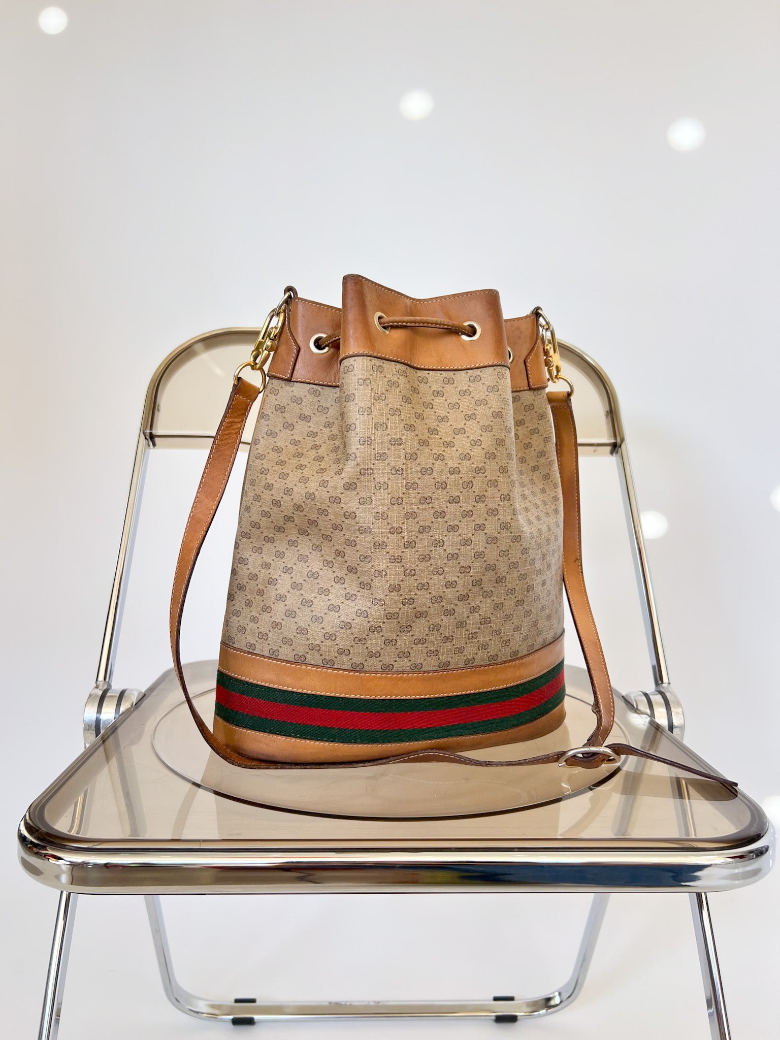 Vintage 80’s Gucci GG Supreme Bucket Bag – Web Stripe
