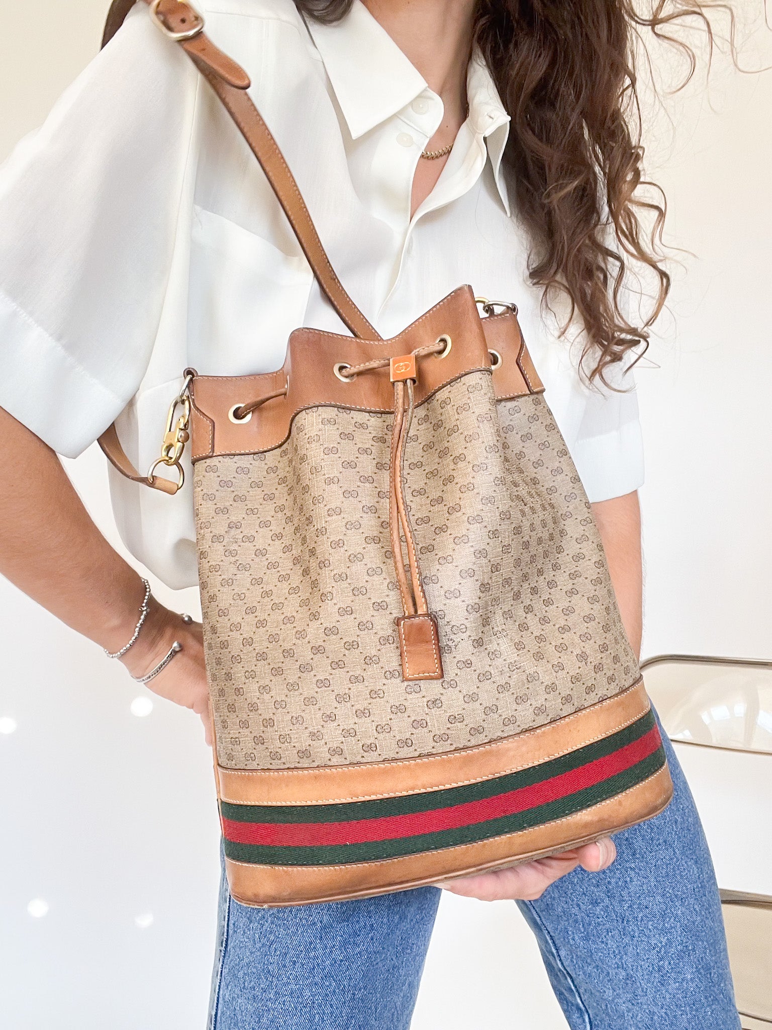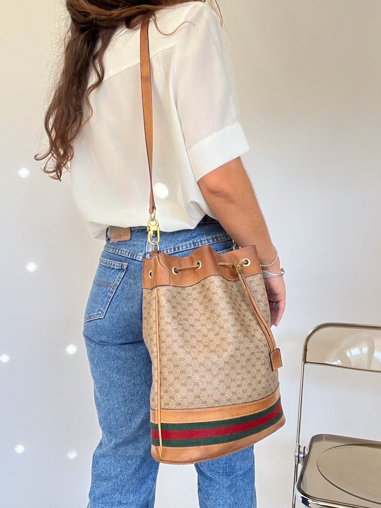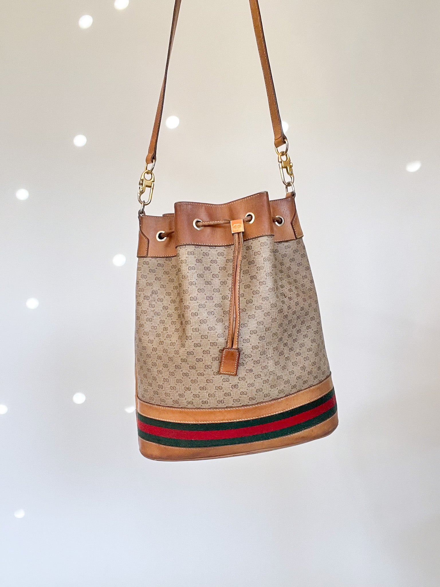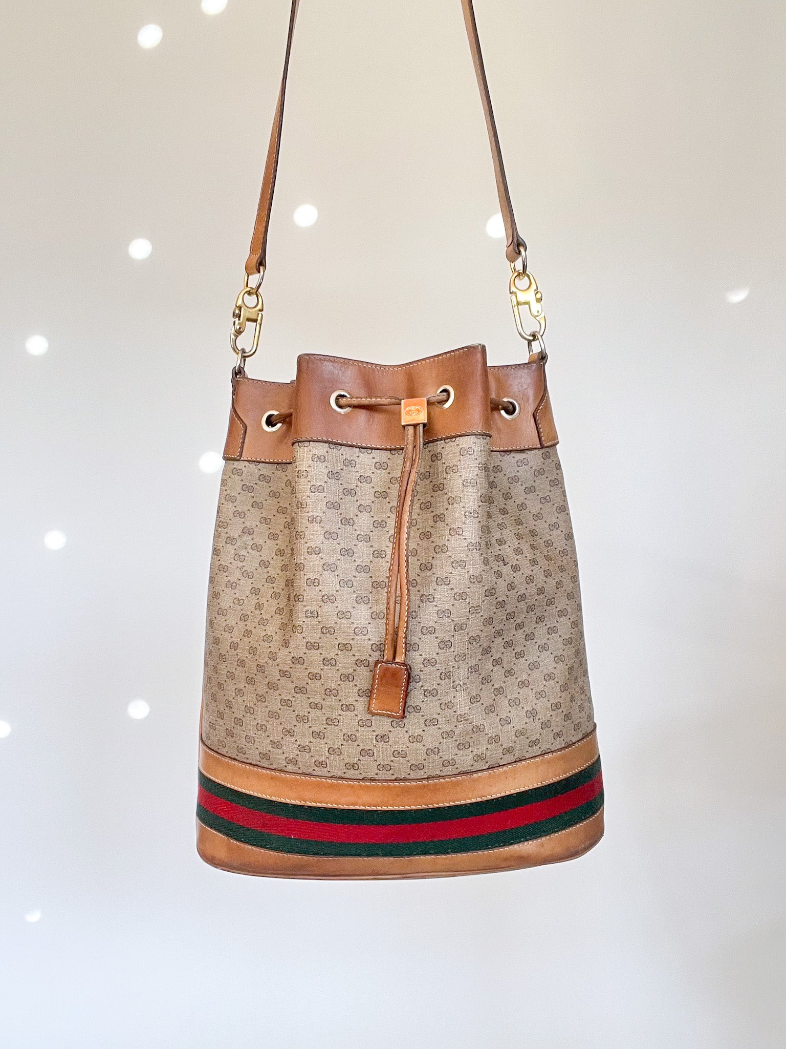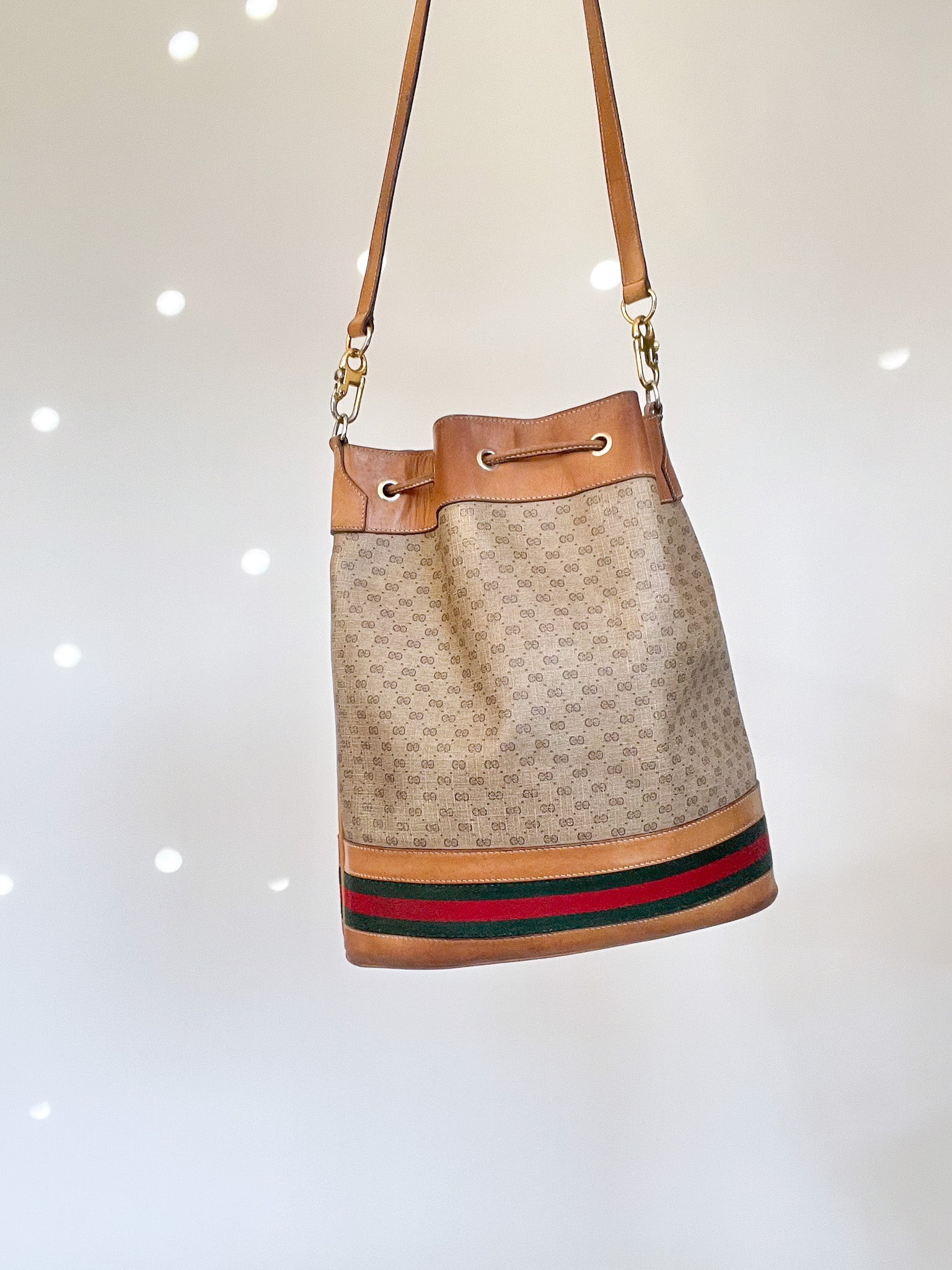 Vintage 80’s Gucci GG Supreme Bucket Bag – Web Stripe
