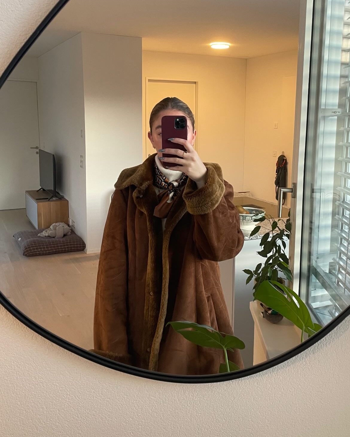 This coat si an absolute favorite of mine, with its perfect fit and exceptionnel quality. The rich brown color and velvet texture add a cozy yet chic vibe, making it an ideal pièce for staying stylish and warm in the coller months. Thanks!!