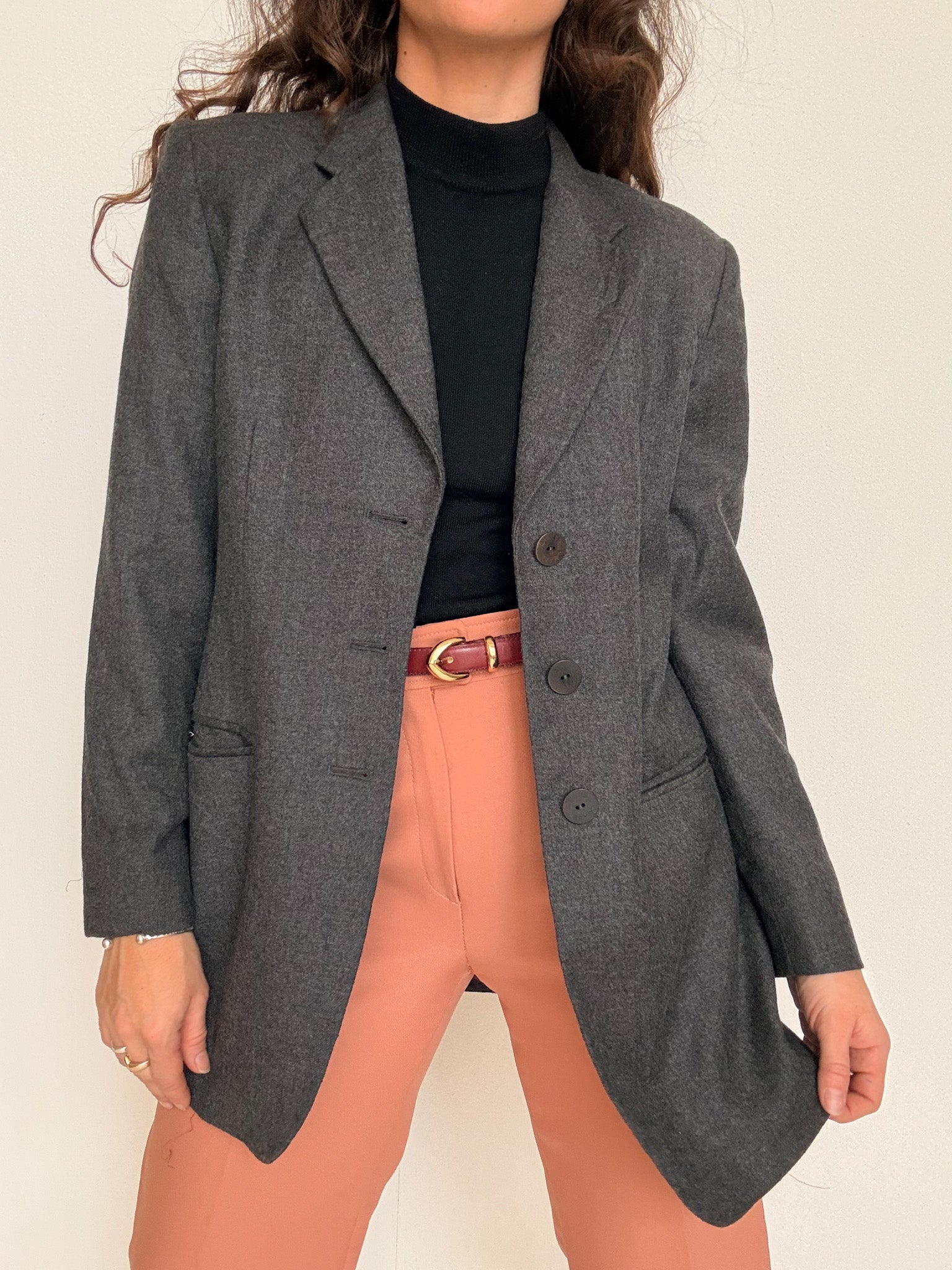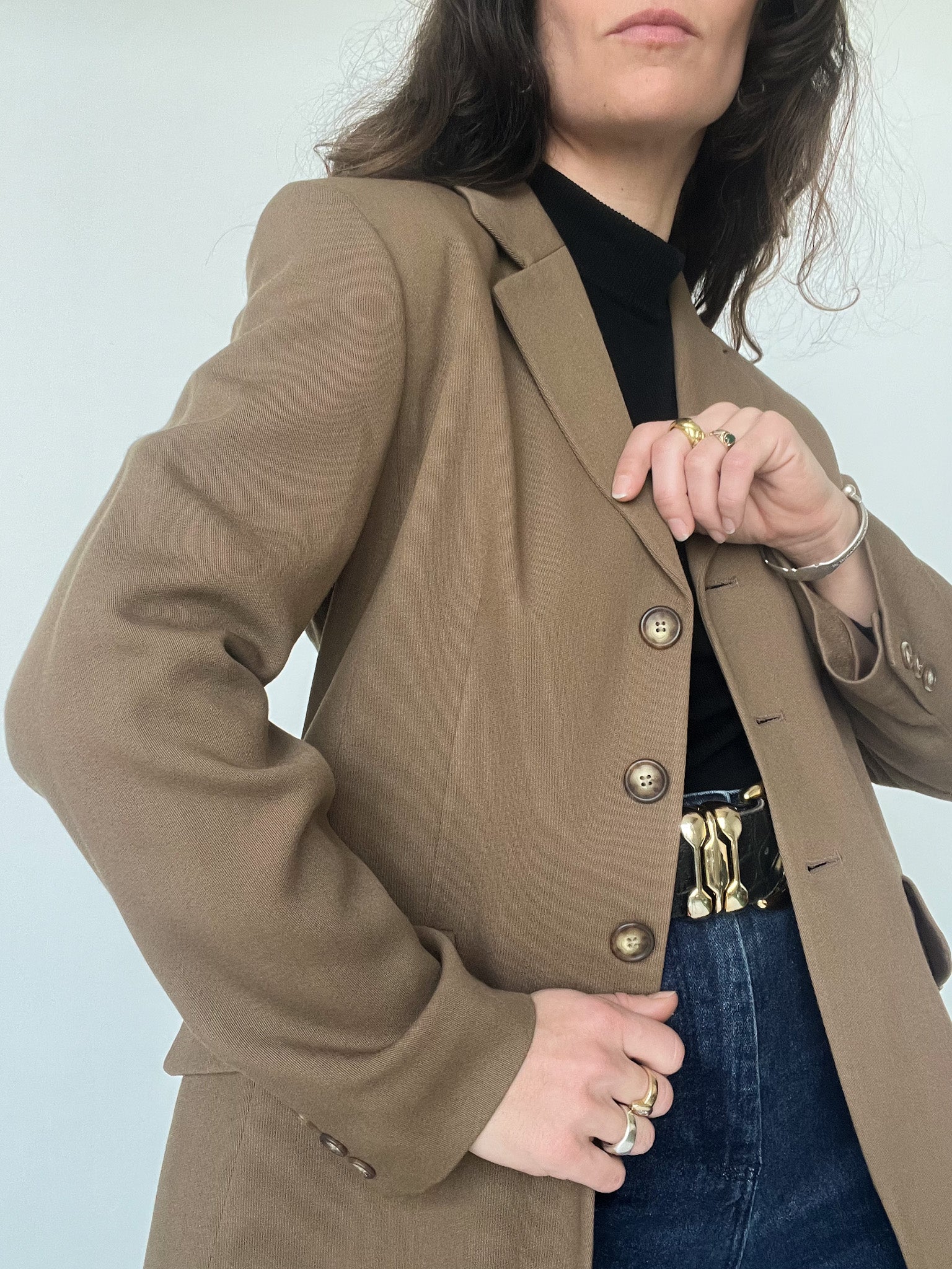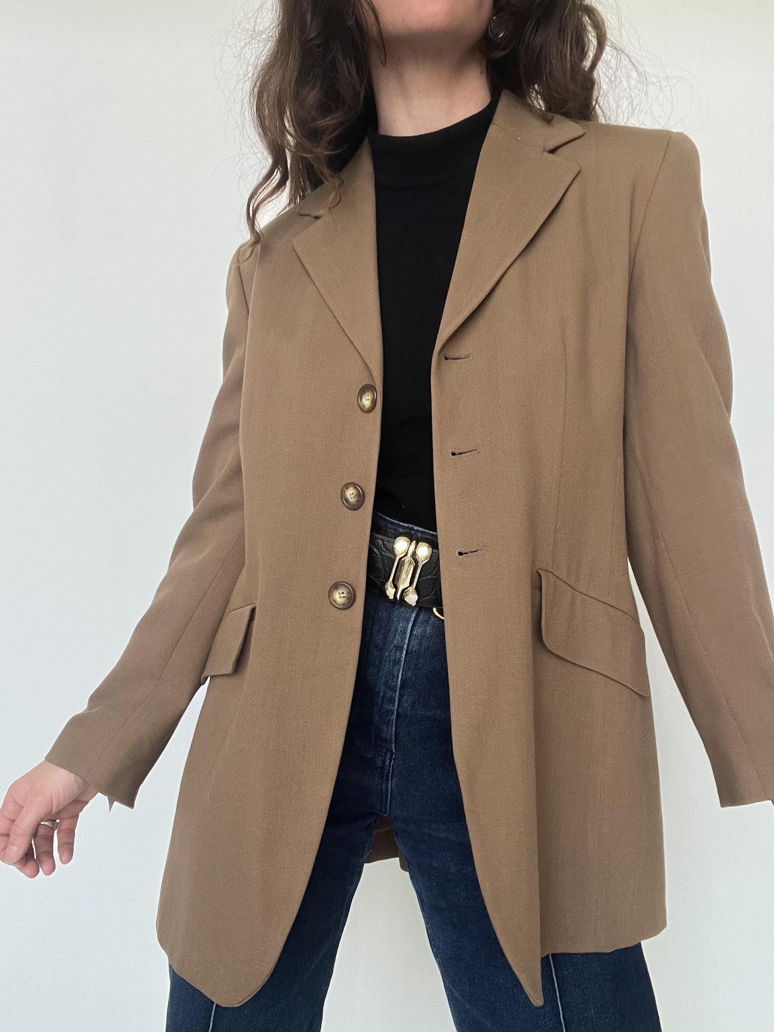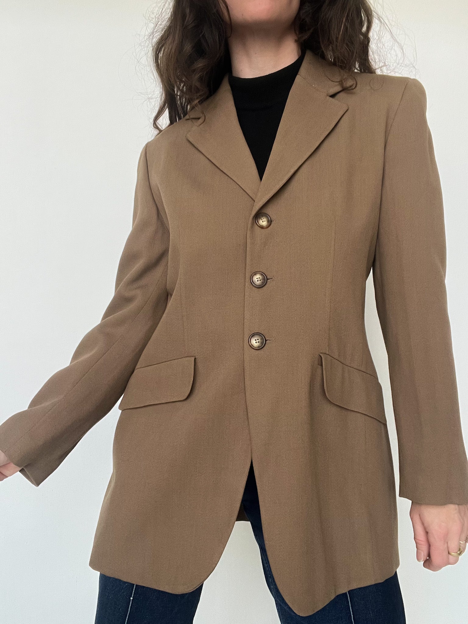 Vintage 90’s Chocolate Virgin Wool Structured Blazer