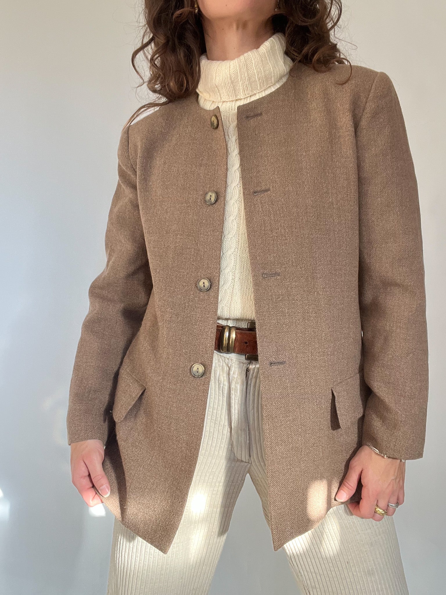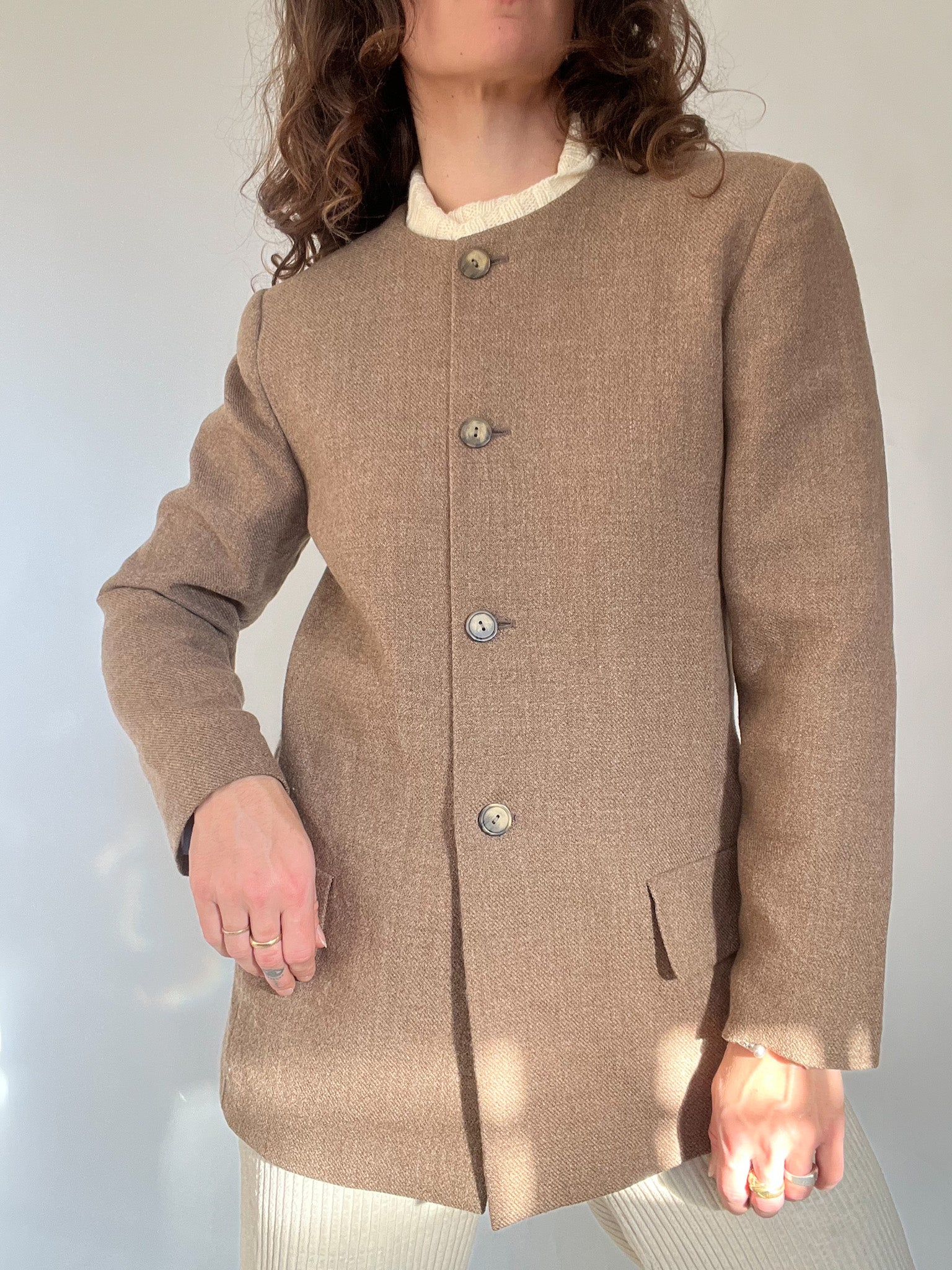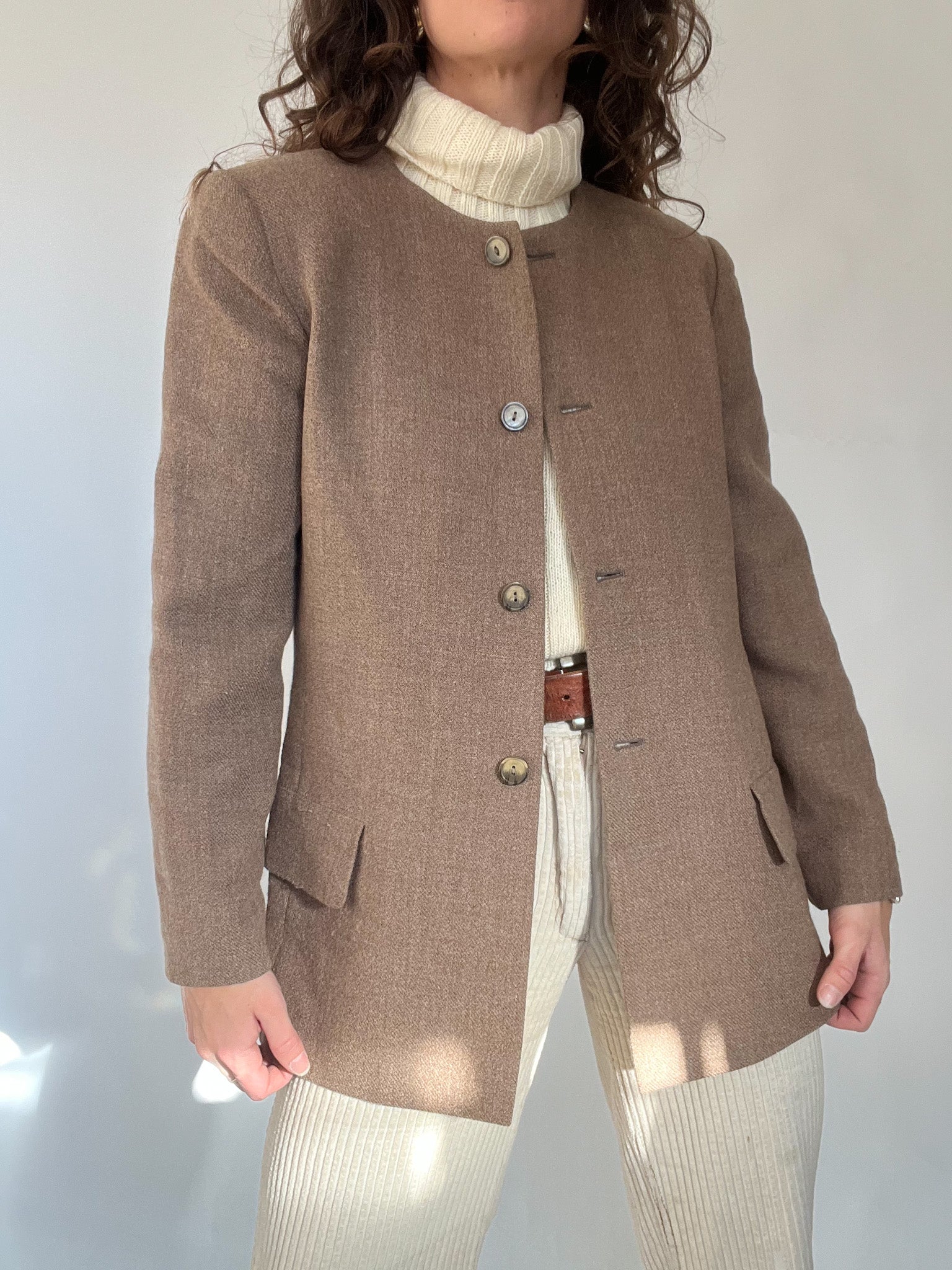 Vintage 80’s Taupe Wool Blend Collarless Blazer