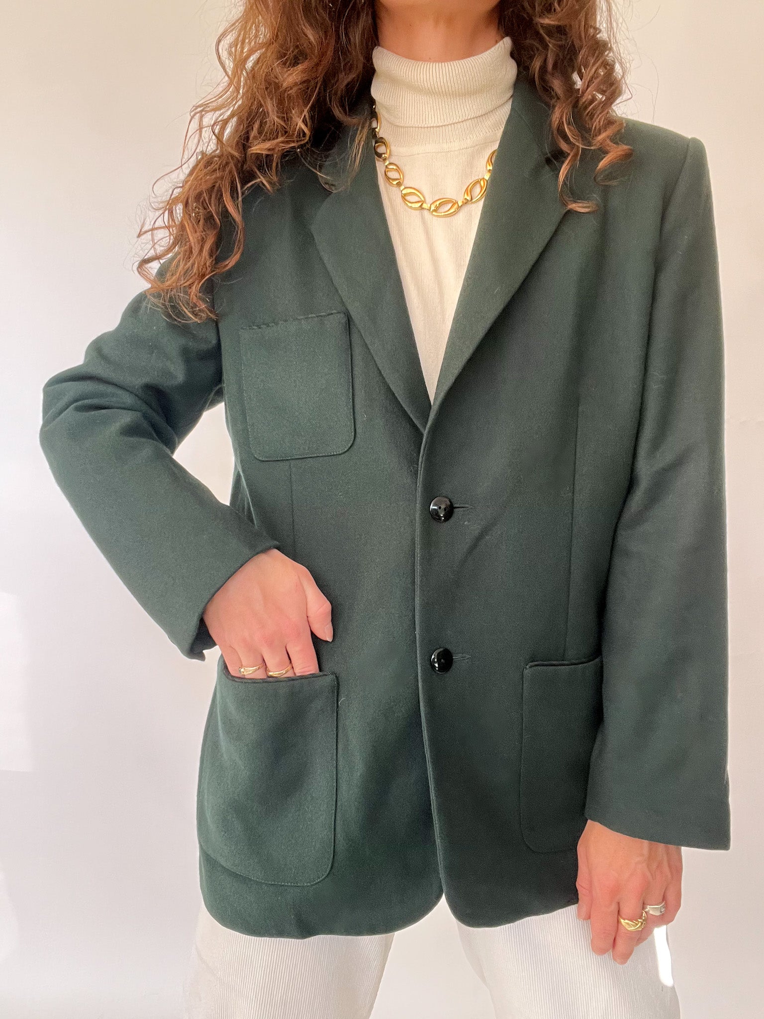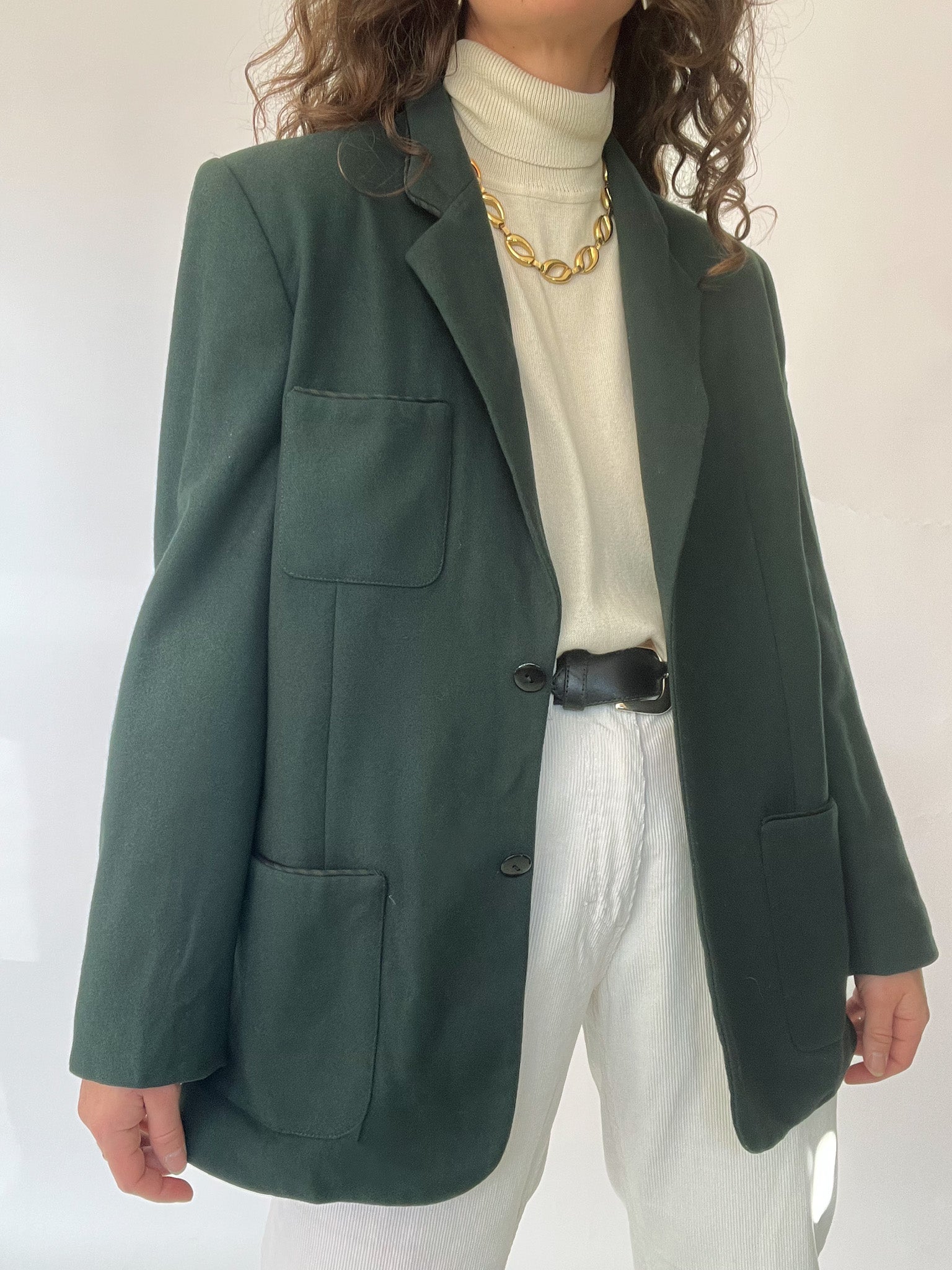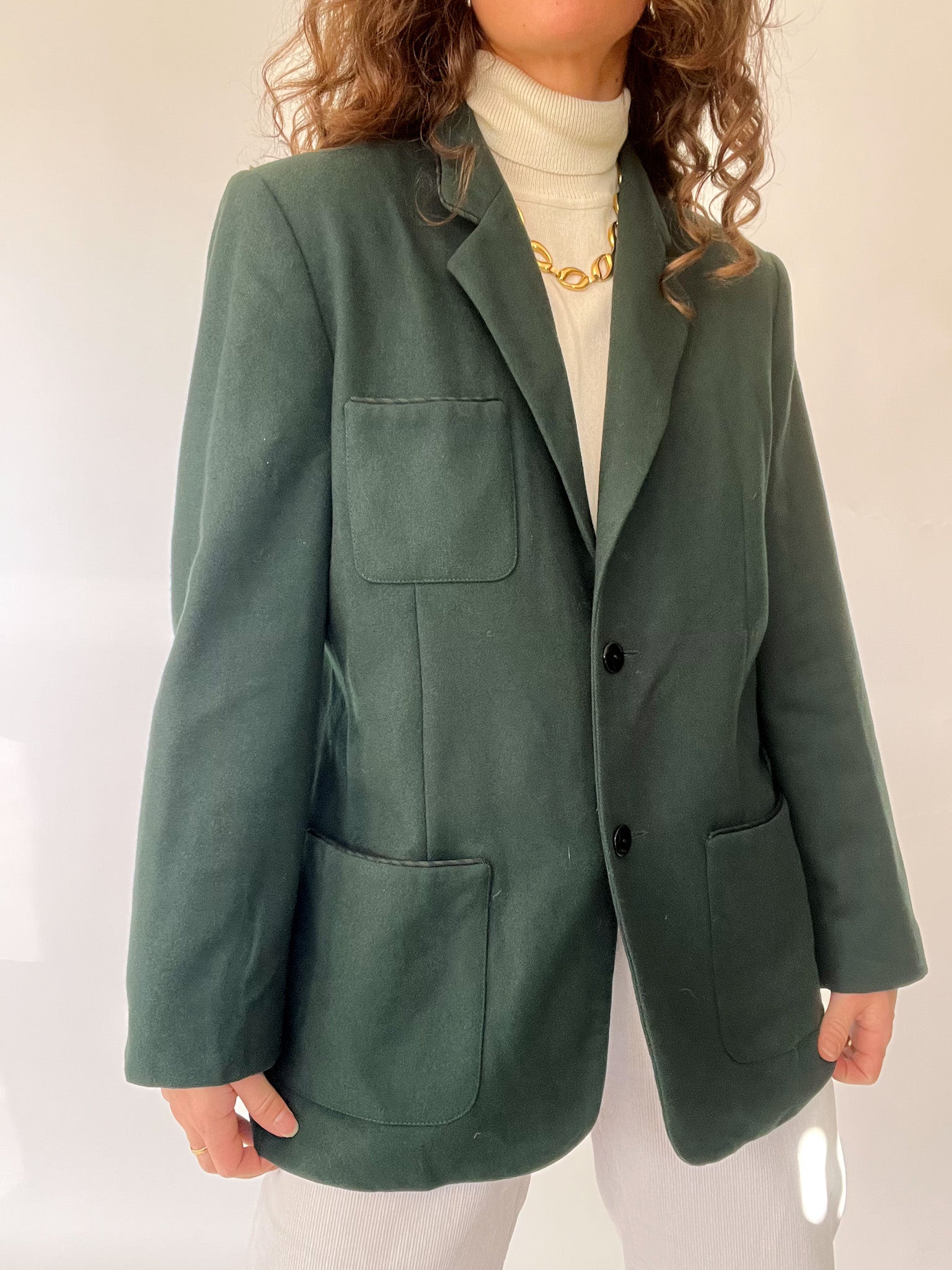 Vintage 90’s Deep Forest Wool Blazer with Statement Pockets