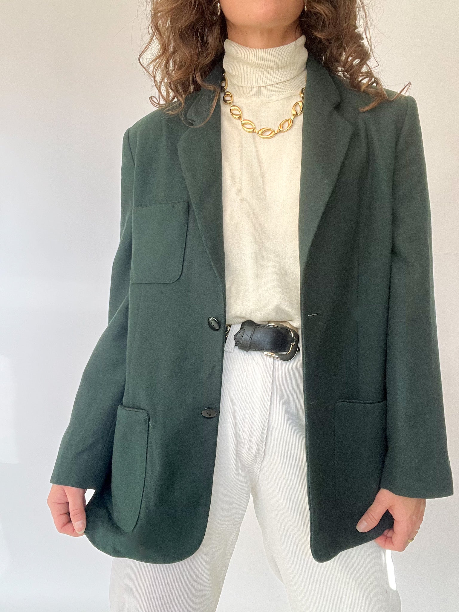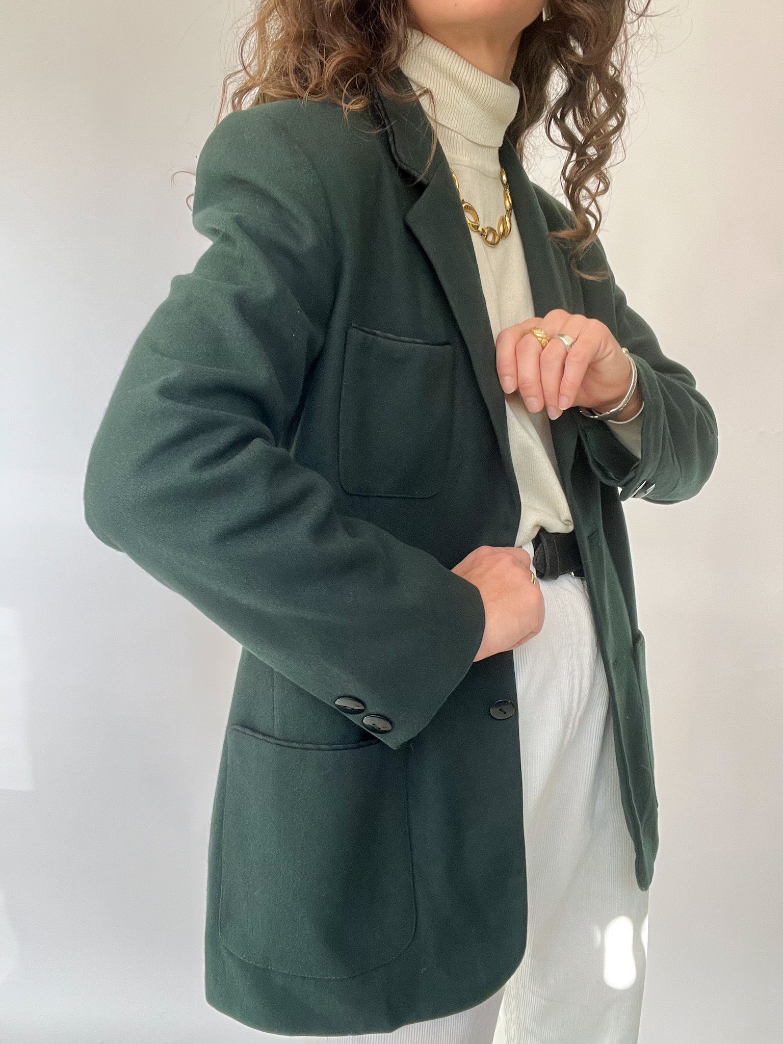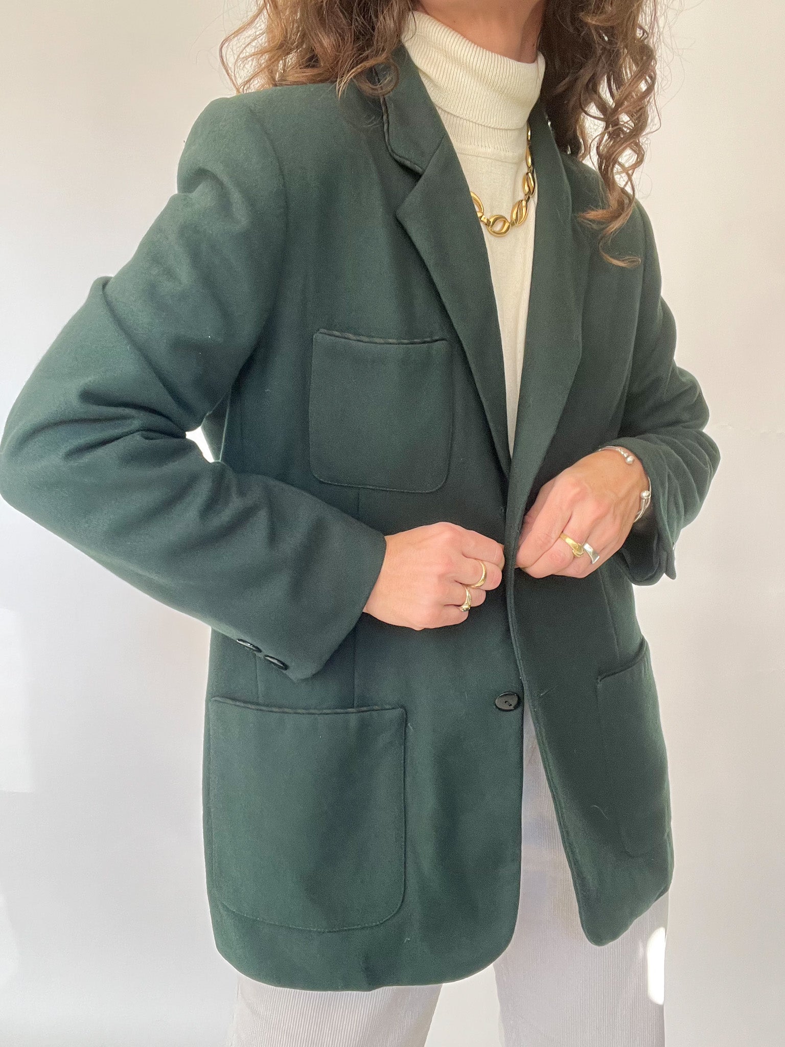 Vintage 90’s Deep Forest Wool Blazer with Statement Pockets