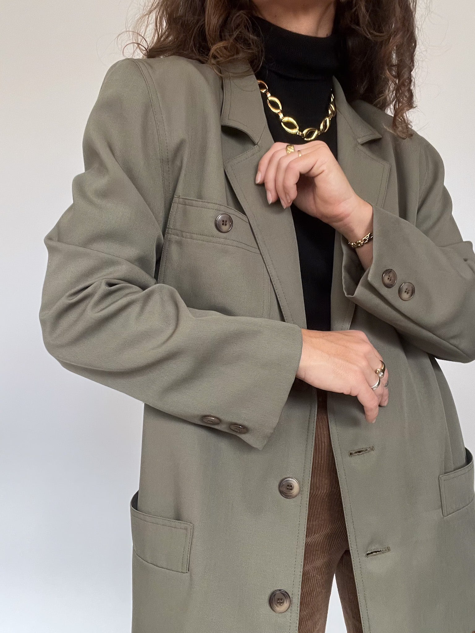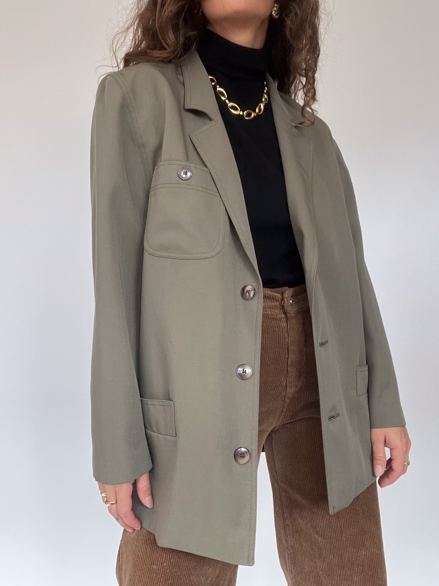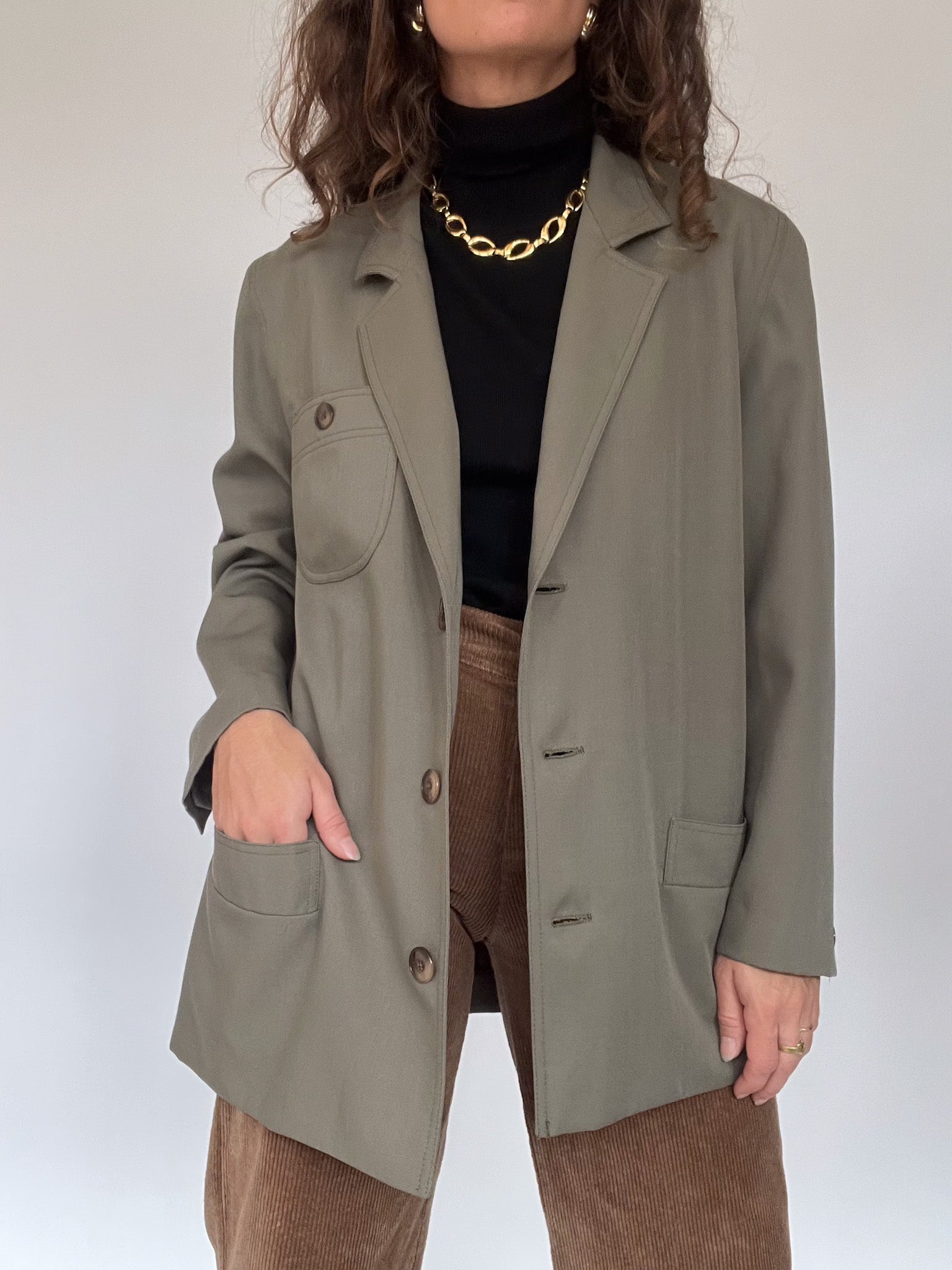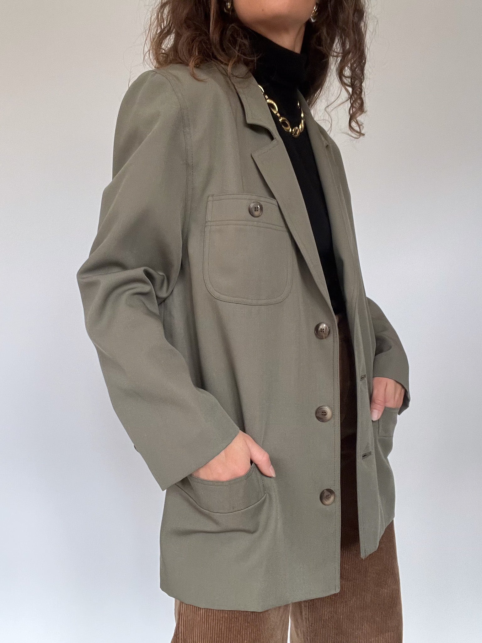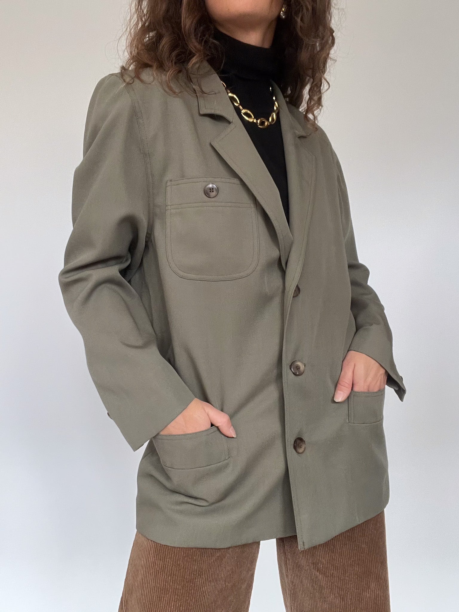 Vintage 80’s Olive Wool-Blend Tailored Blazer