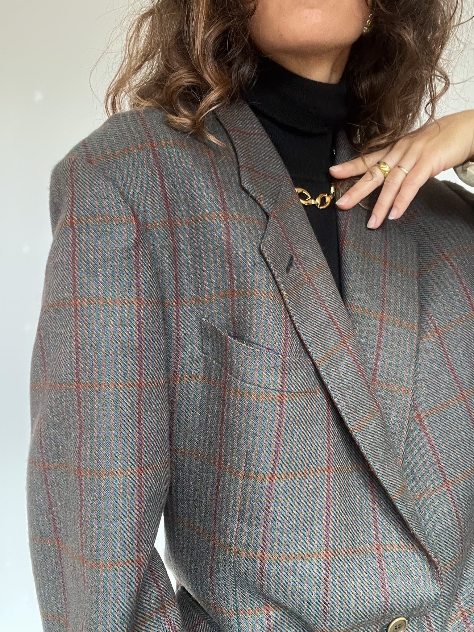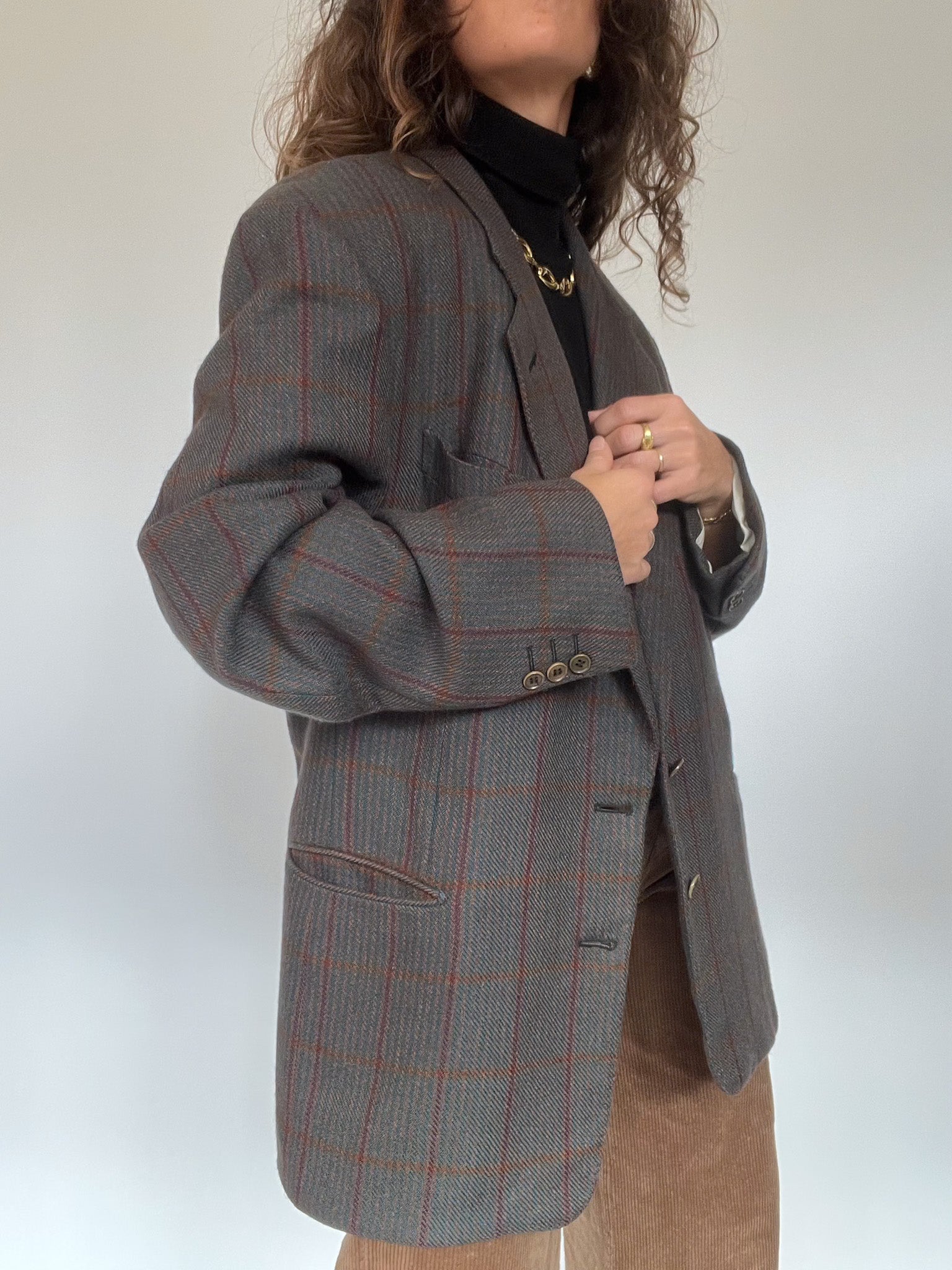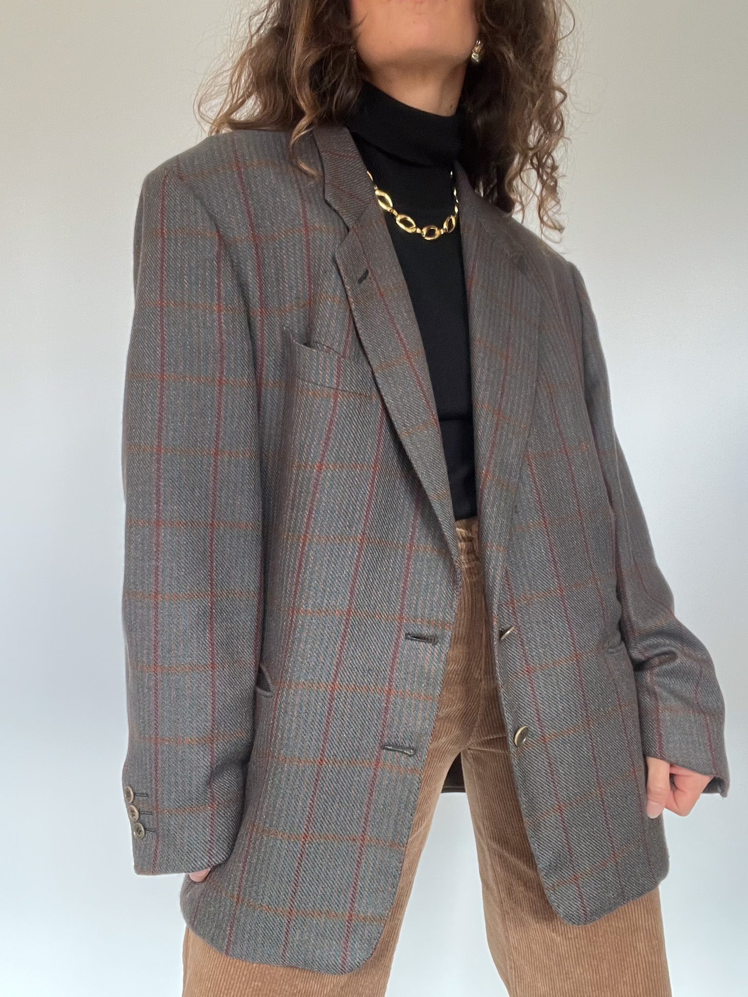 Vintage 80’s Grey Checked Wool Blazer