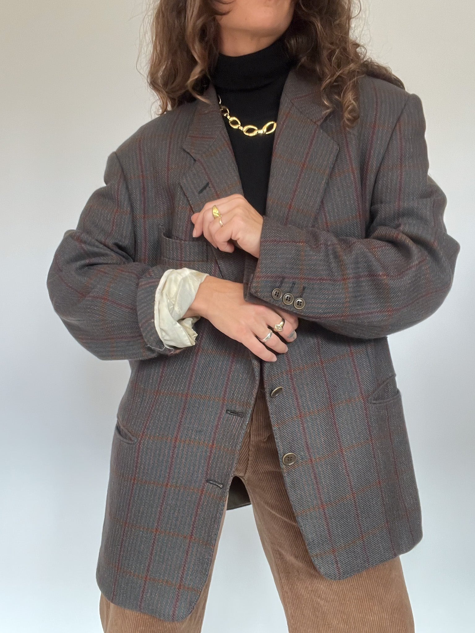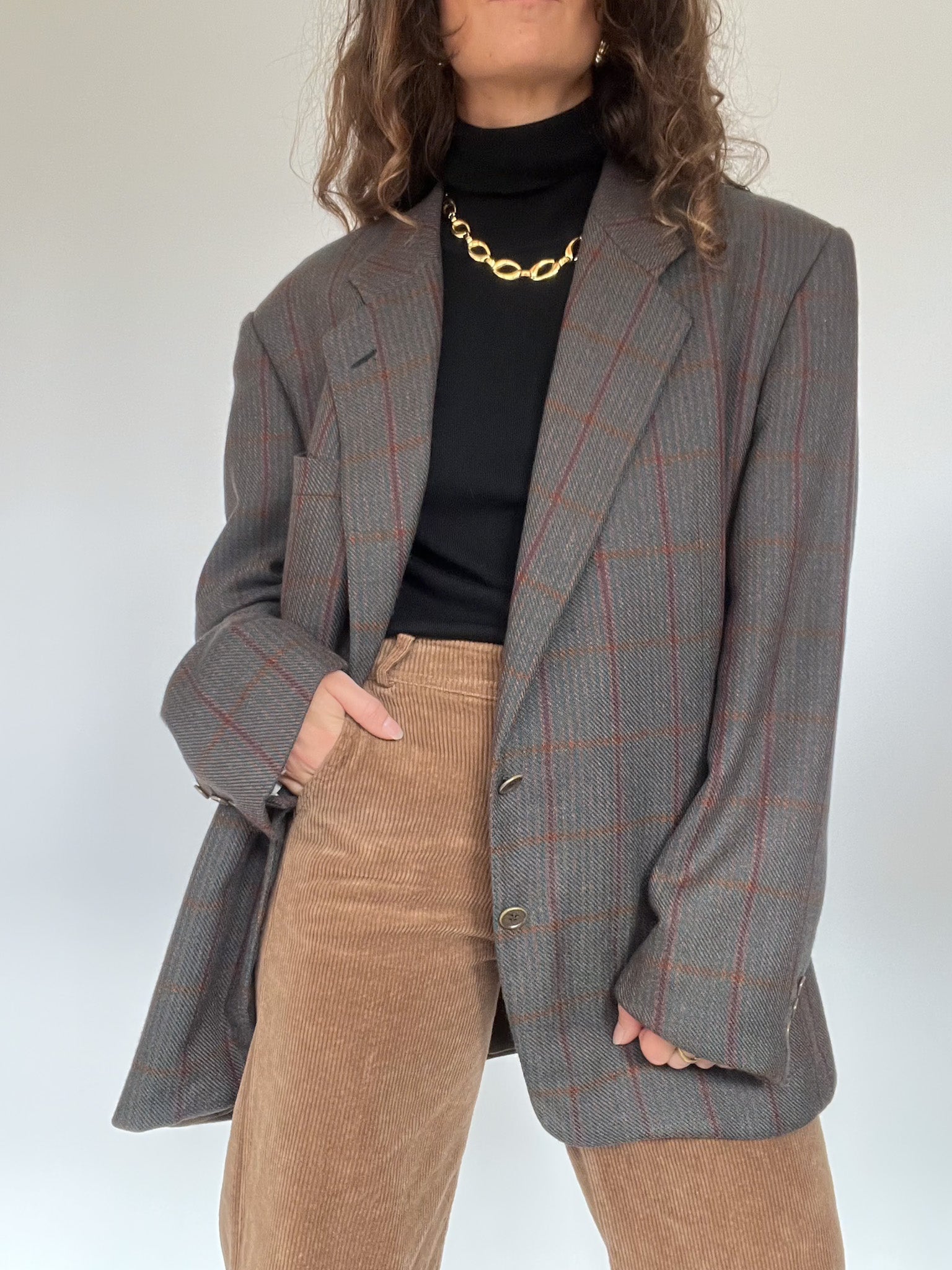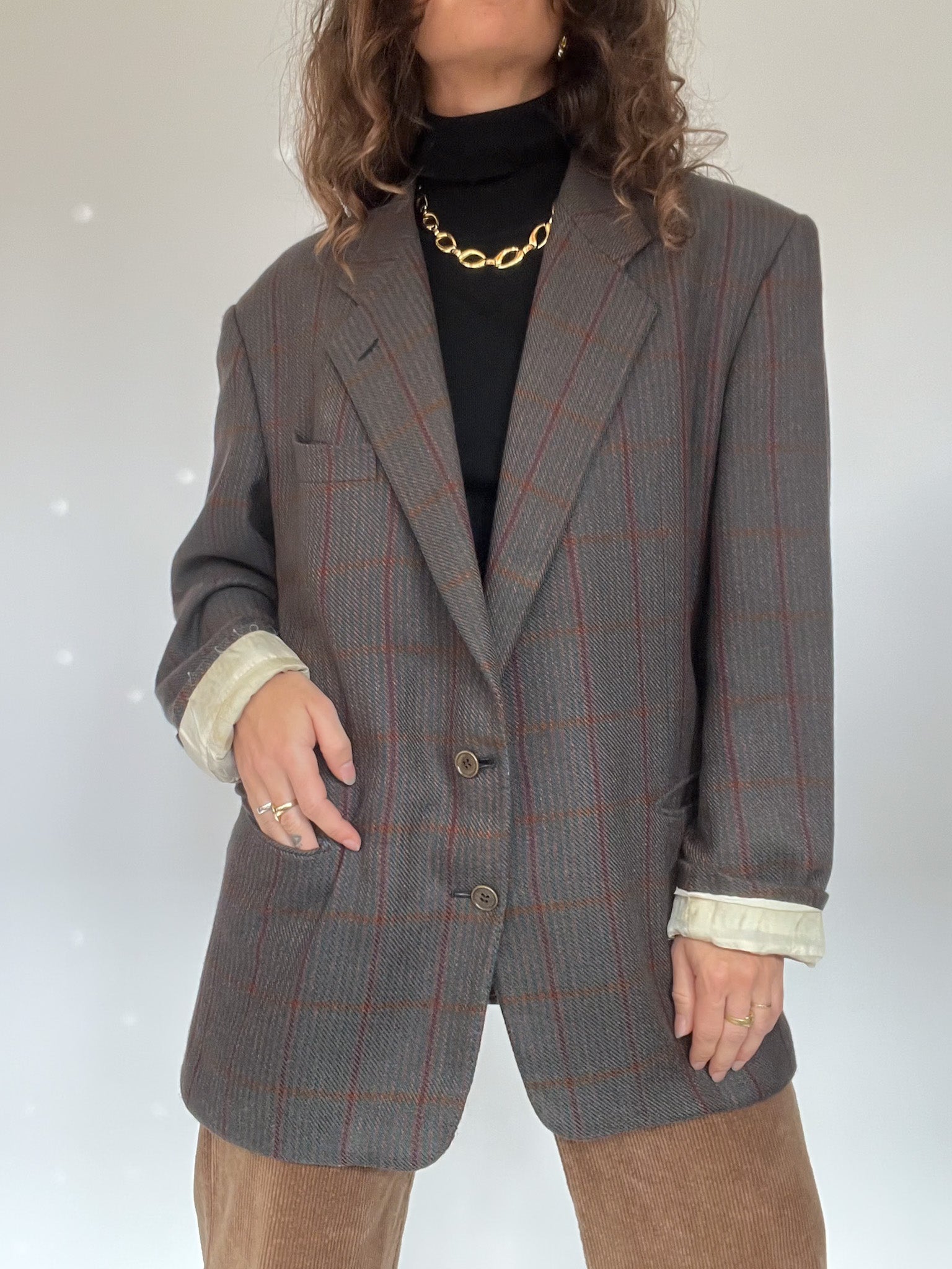 Vintage 80’s Grey Checked Wool Blazer
