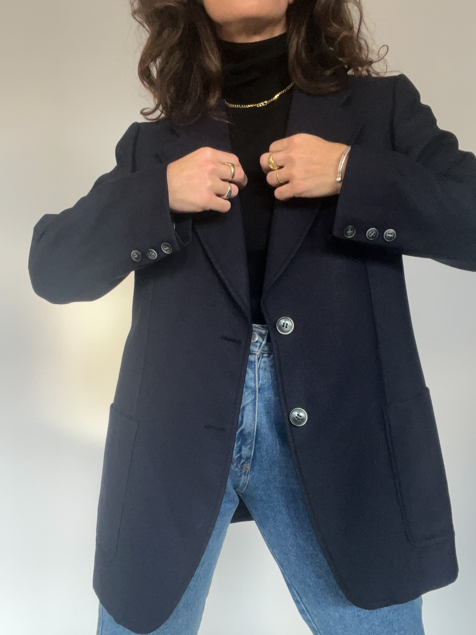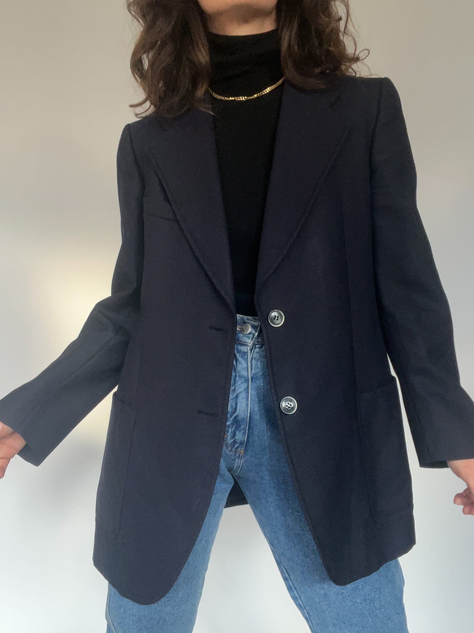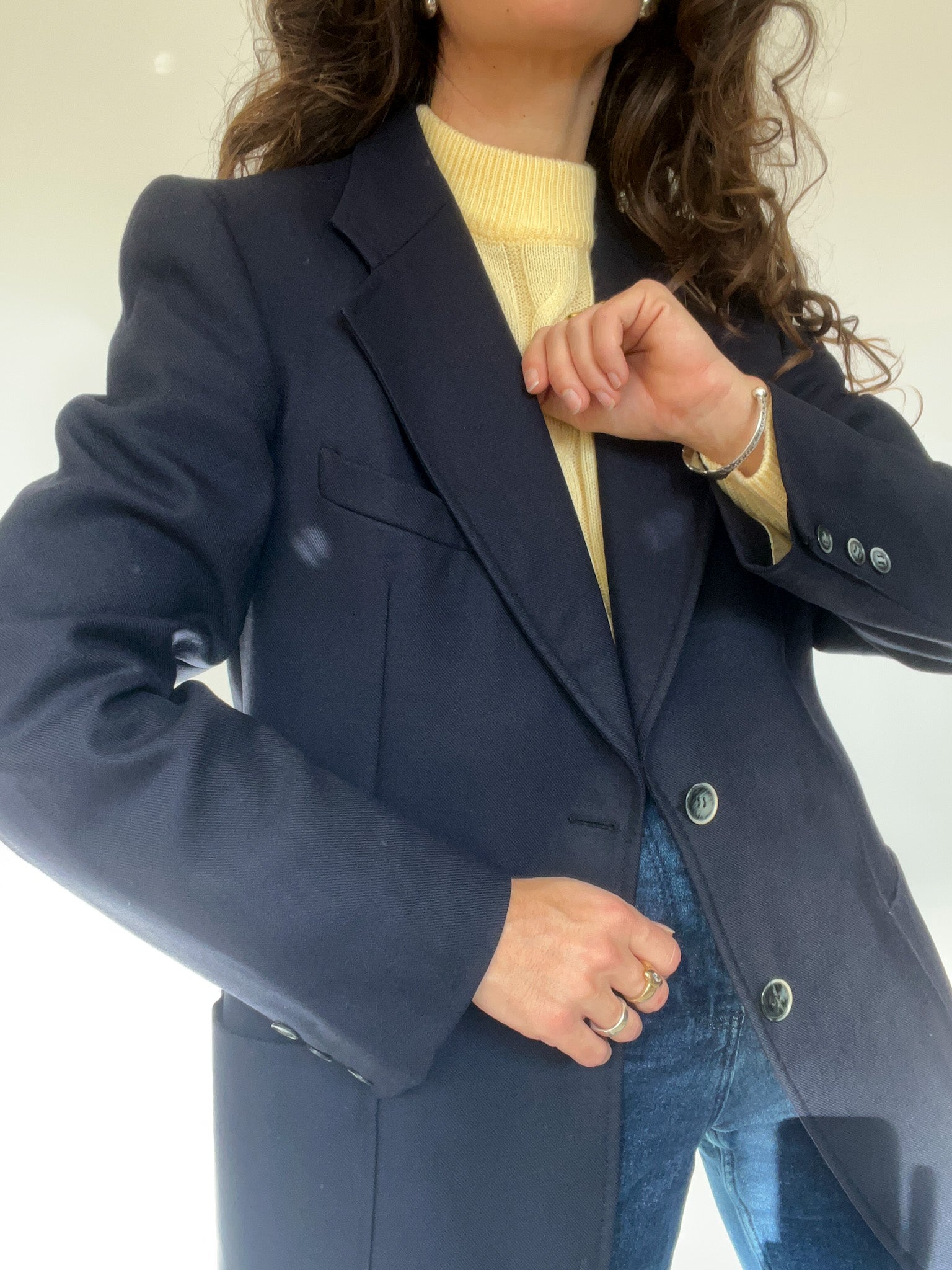 Vintage 90’s Navy Virgin Wool Tailored Blazer