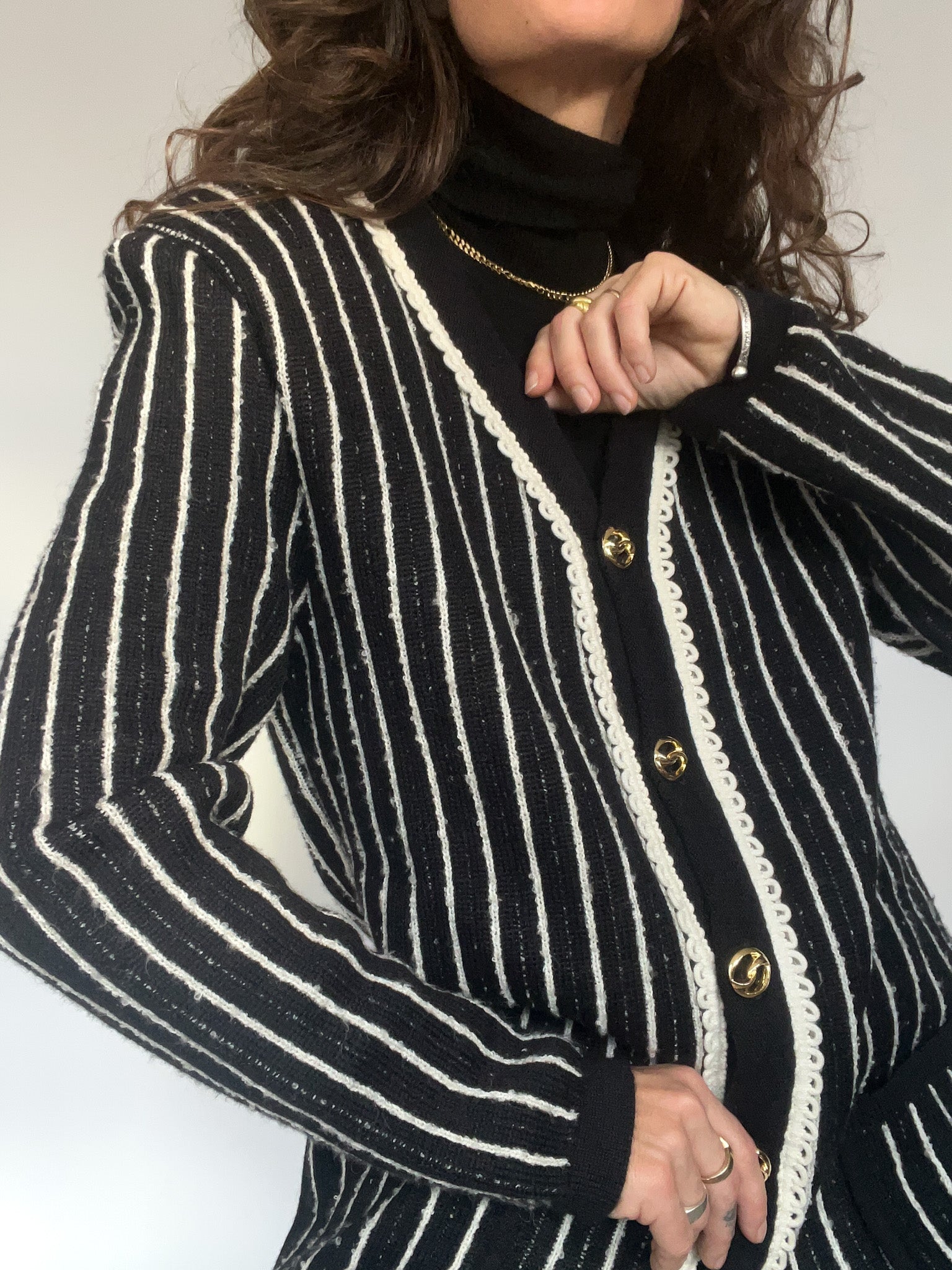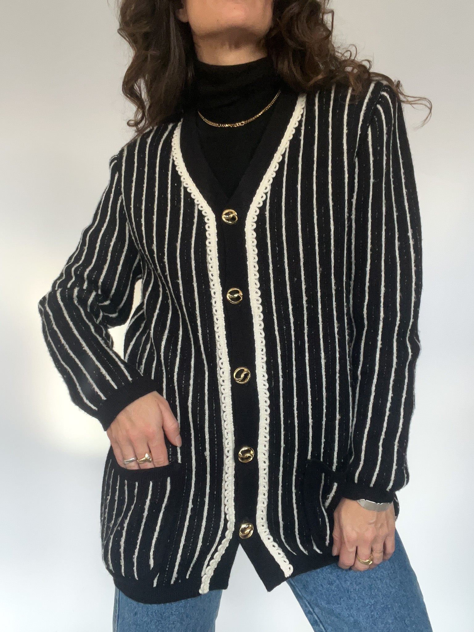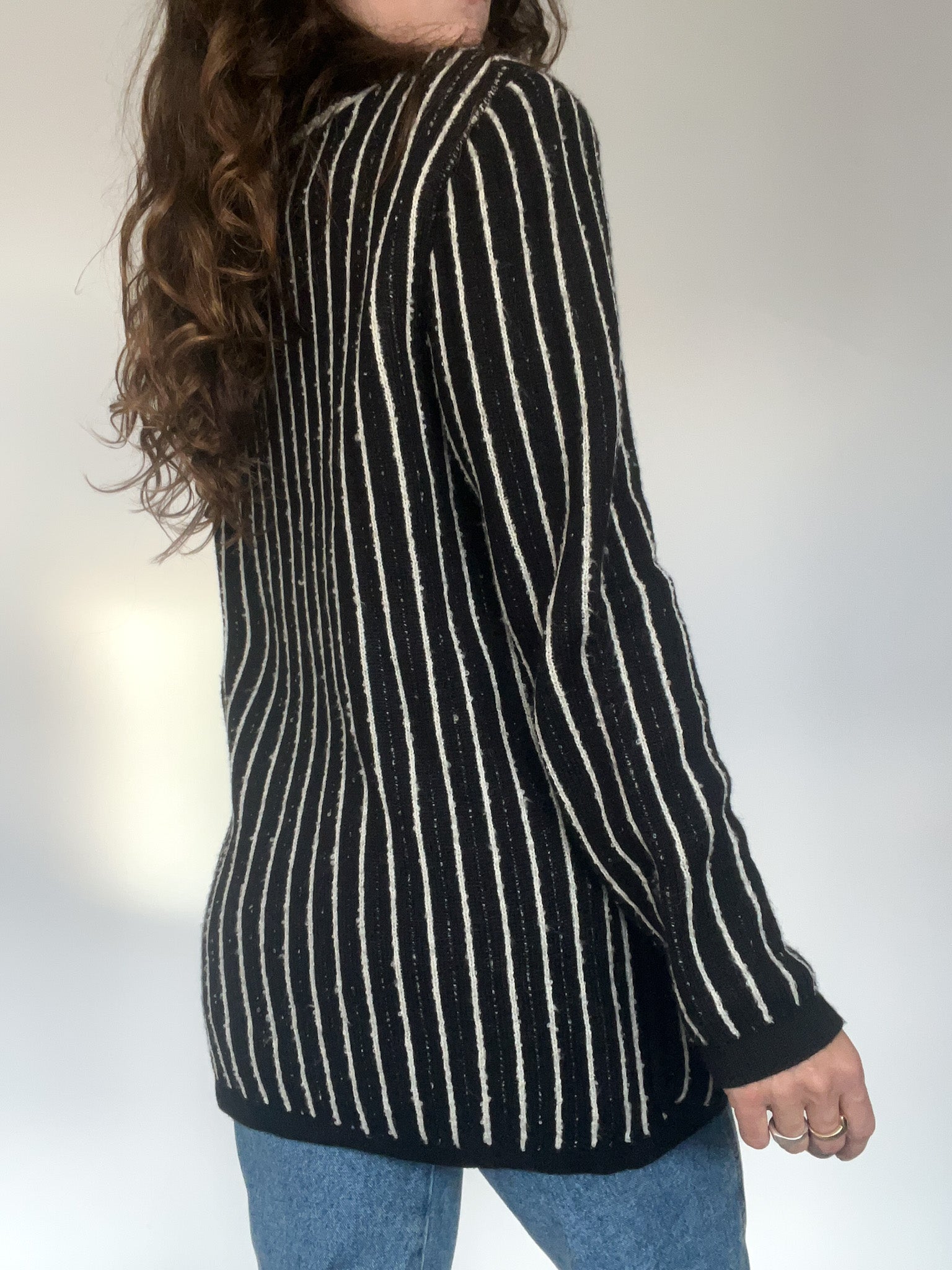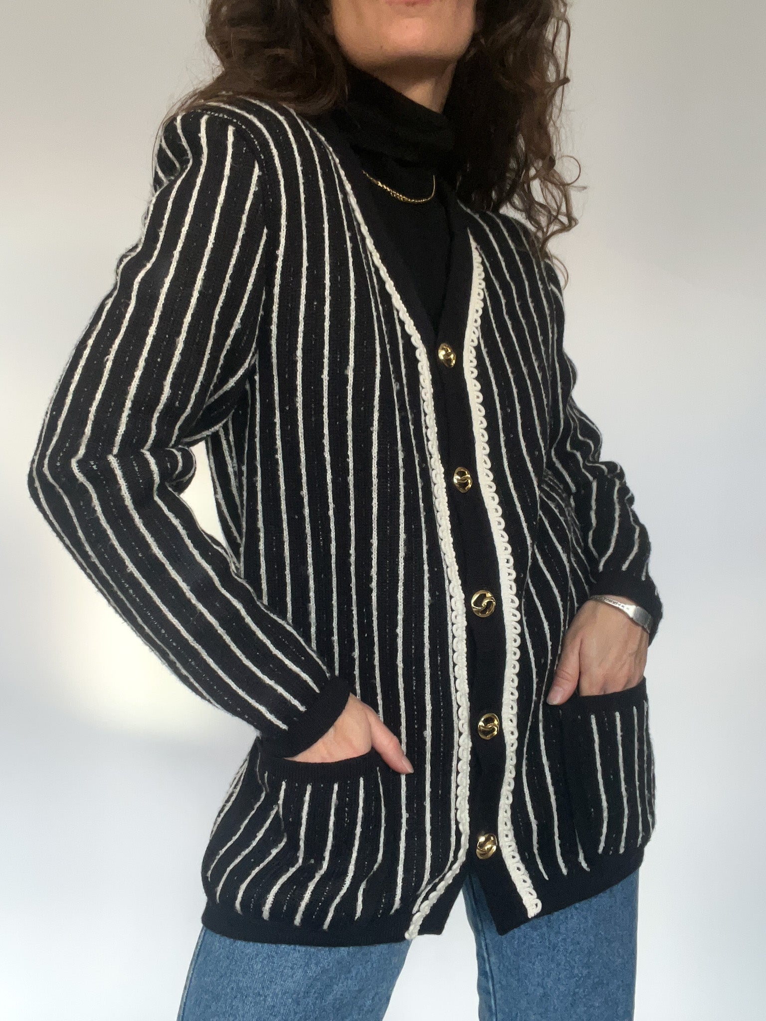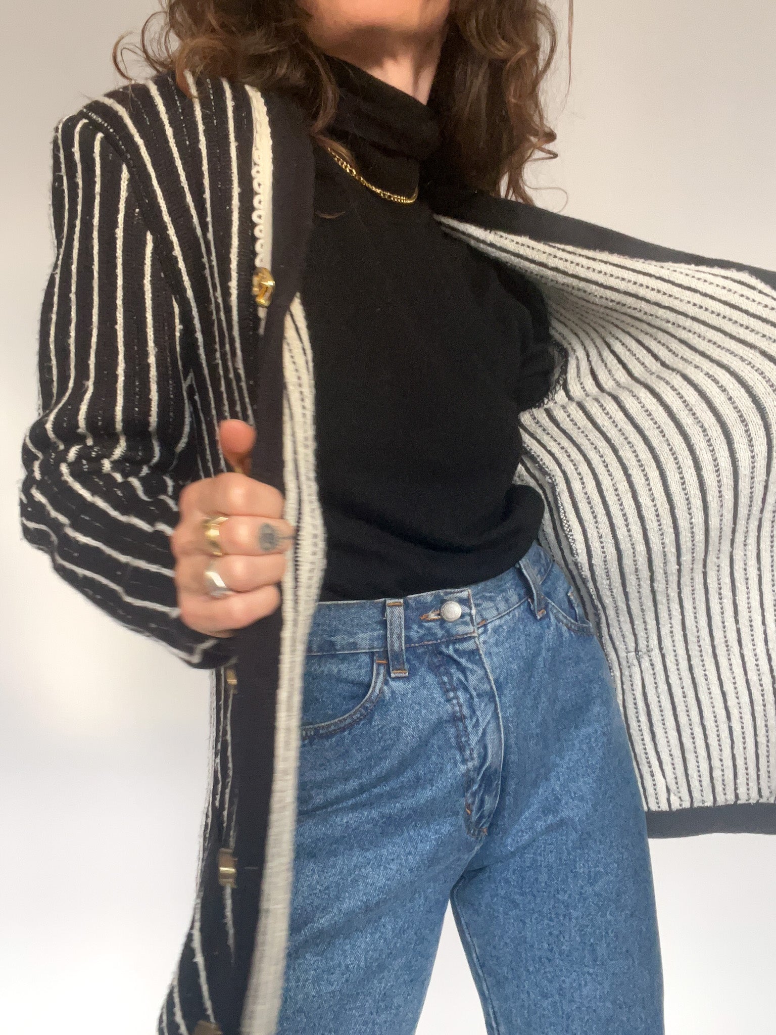 Vintage 80’s Black & Cream Striped Italian Knit Cardigan